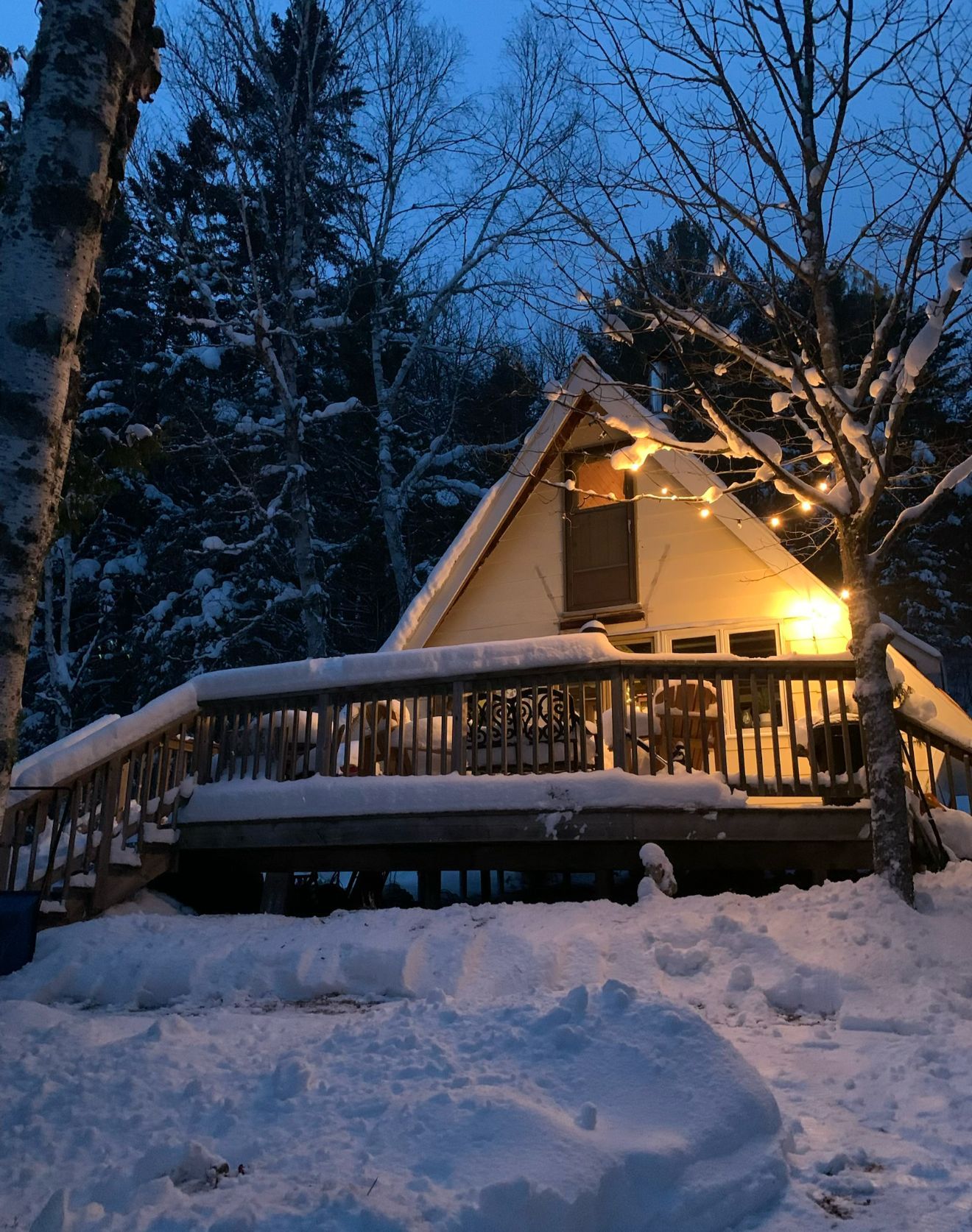 • Lovingly restored A-frame retreat set along a tranquil waterfront.
