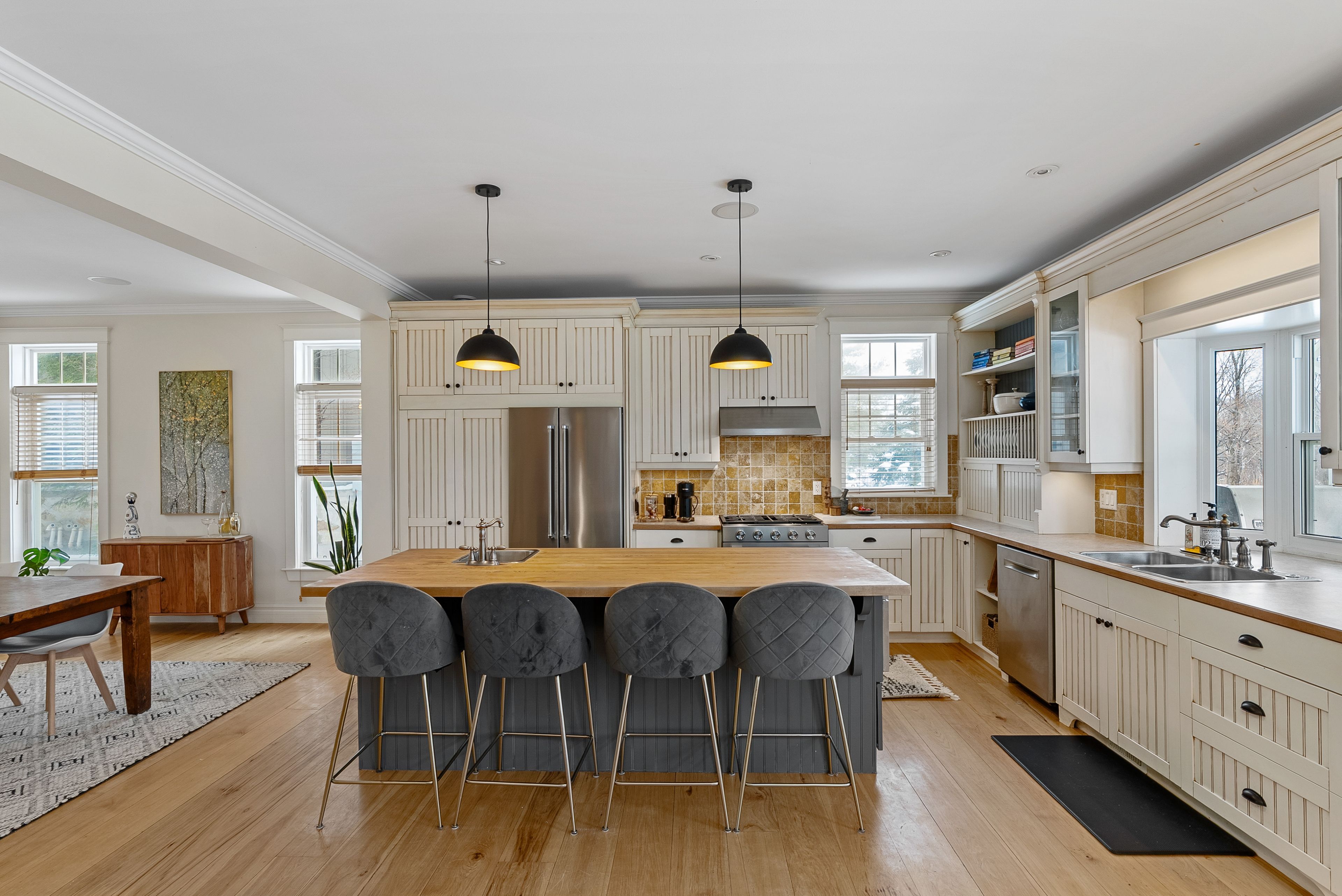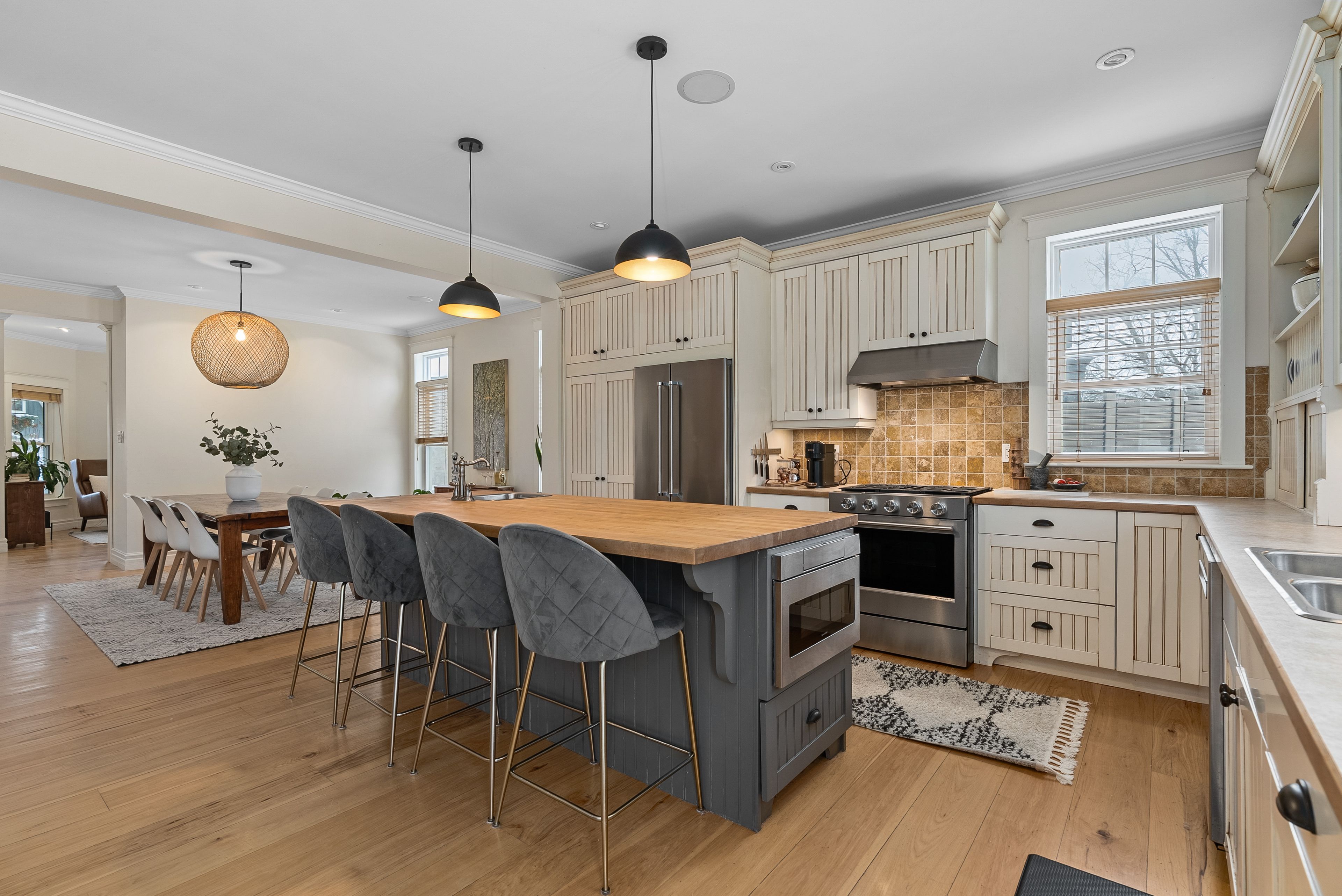 • Gourmet kitchen with new appliances and oversized island for cooking and gatherings.