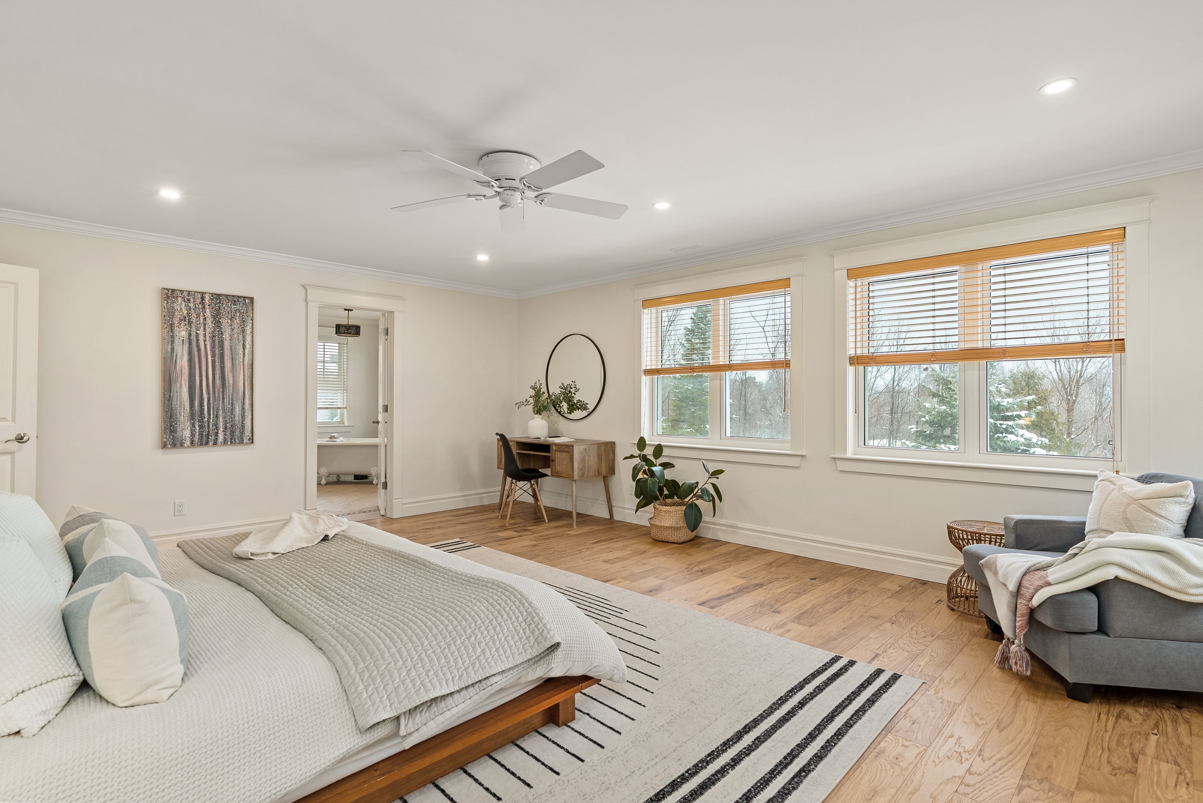 Welcome to this exceptional 4+1 bedroom home backing onto the prestigious monterra golf course, perfectly positioned between the 3rd hole and 4th tee. Enjoy four-season living in the heart of blue mountain, just a short walk or shuttle to blue mountain village, with access to the amenities of historic snowbridge. Filled with natural light from new 2024 windows, this spacious home offers well-designed living areas ideal for both entertaining and everyday living. The main level features a gourmet kitchen with appliances: new (2026), bosch dishwasher, microwave drawer, and oversized island with bar seating. Walkout to a covered bbq area and expansive back deck with outdoor dining and hot tub, overlooking golf course and ski hill views. The family room is anchored by a stone gas fireplace, and a front office with bay window overlooks the covered porch. The second level offers a private primary suite with golf course views, walk-in closet, and spa-inspired ensuite with glass shower and claw-foot tub. Three additional bedrooms, a full bathroom, and a laundry room complete this level. The finished lower level is designed for wellness and entertaining, featuring a steam room, large media/lounge area, bar, guest bedroom, gym space, and ample storage. Additional highlights include a spacious mudroom with garage and backyard access. Located minutes from downtown collingwood, thornbury, private ski clubs, golf, hiking, and year-round recreation, this home offers the perfect balance of luxury, comfort, and convenience. Enjoy perks of bmva designation. Book your showing today!