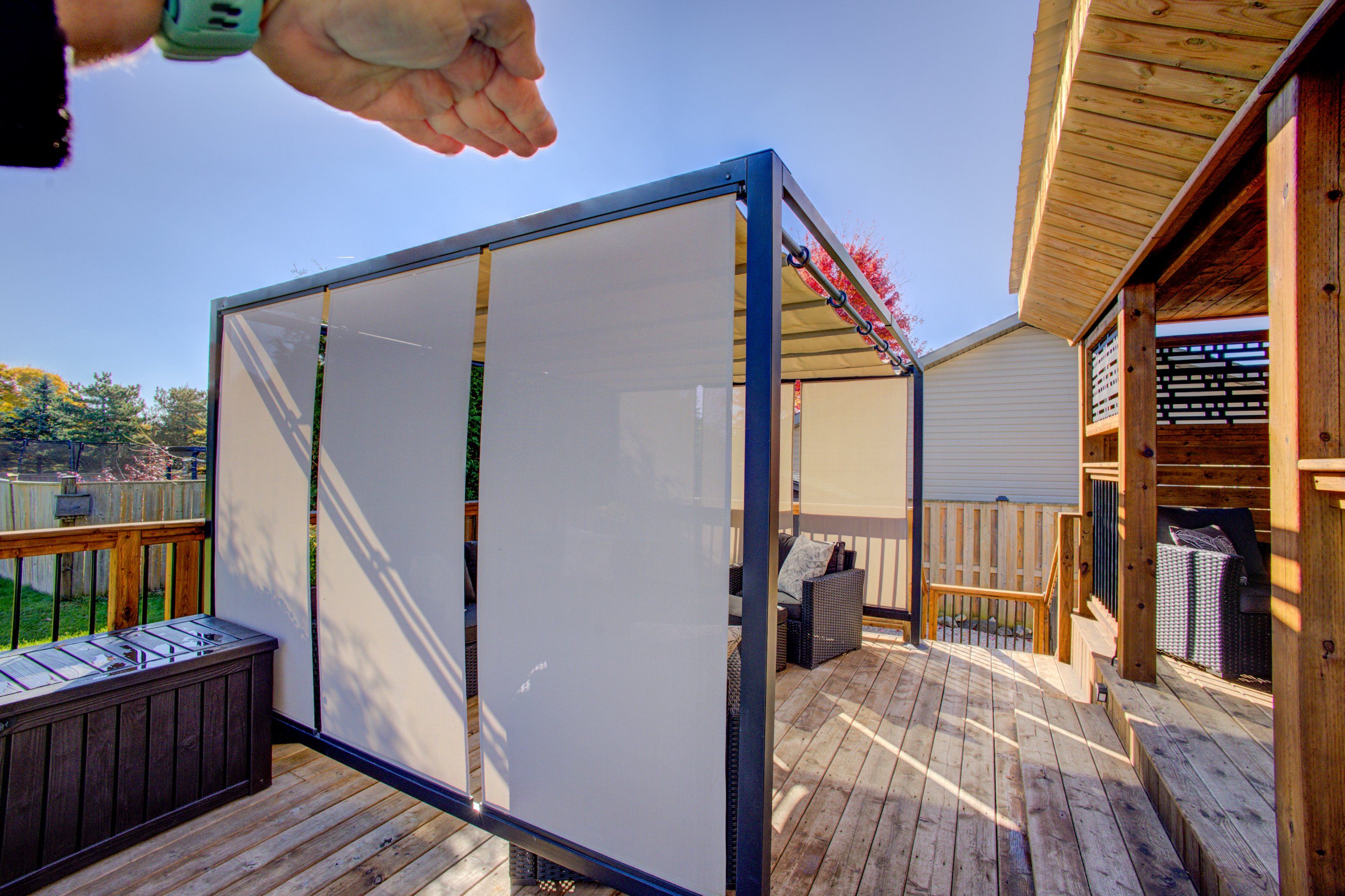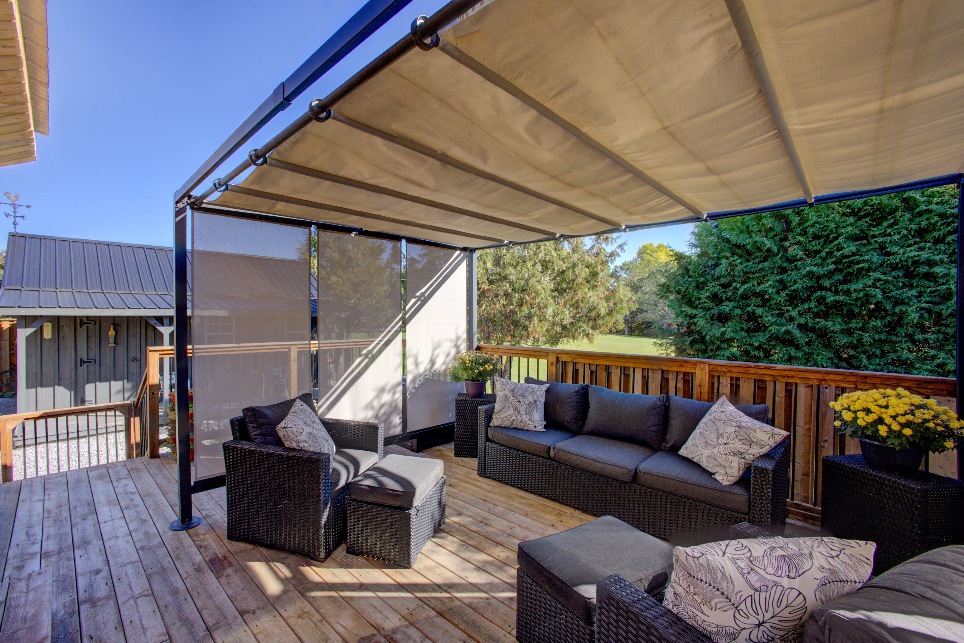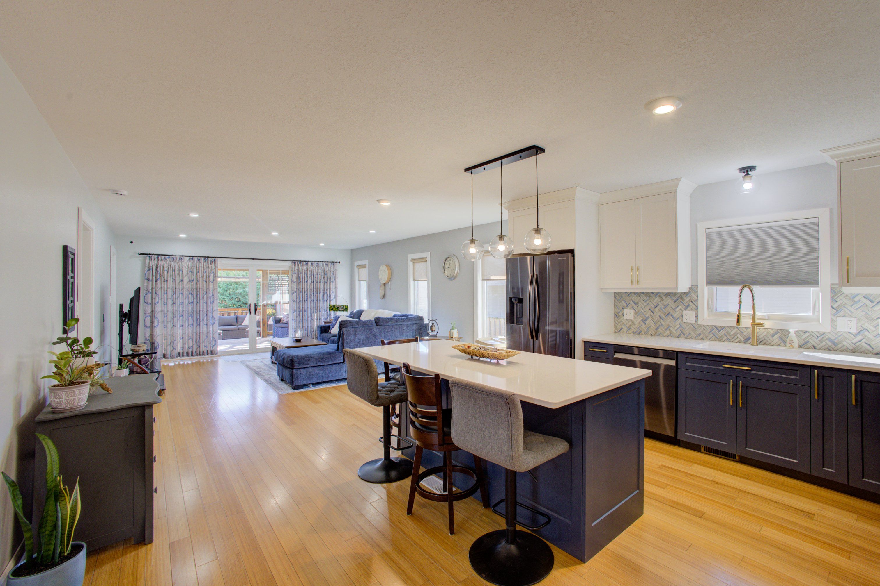 • Bright open-concept design with sliding doors to a private backyard.