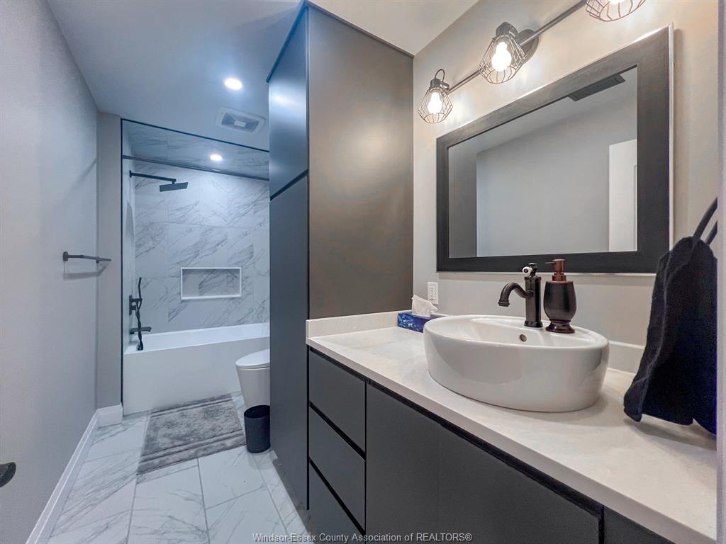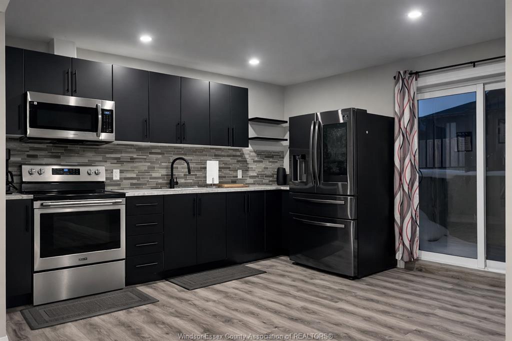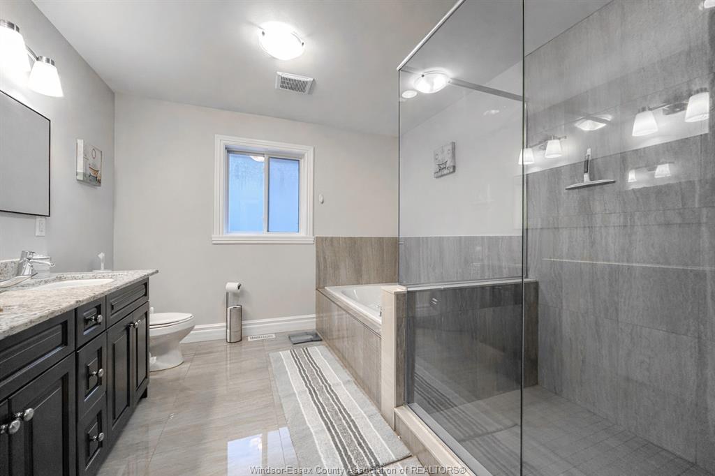 This impressive and beautifully maintained raised ranch with a bonus room offers an ideal layout for modern family living. Featuring a rare three car garage three plus two spacious bedrooms and three full bathrooms including a private ensuite the home is both functional and inviting. The open concept main level is filled with natural light showcasing a bright family room and a sleek contemporary kitchen that flows seamlessly into a generous dining area with patio doors leading to a sun filled deck perfect for entertaining. Quality finishes are evident throughout including well proportioned bedrooms highlighted by a private primary suite complete with a walk in closet double vanity and glass enclosed shower. The fully finished basement adds exceptional versatility with a large family room second kitchen two grade level entrances from both the garage and backyard two additional good sized bedrooms and a spacious bathroom with a walk in shower. The fully fenced yard and meticulous upkeep complete this move in ready home.