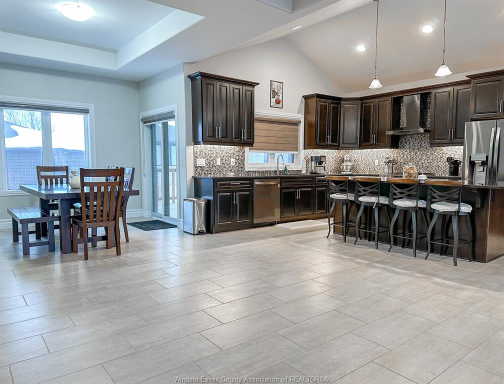• Bright open concept main level with a contemporary kitchen and dining area.