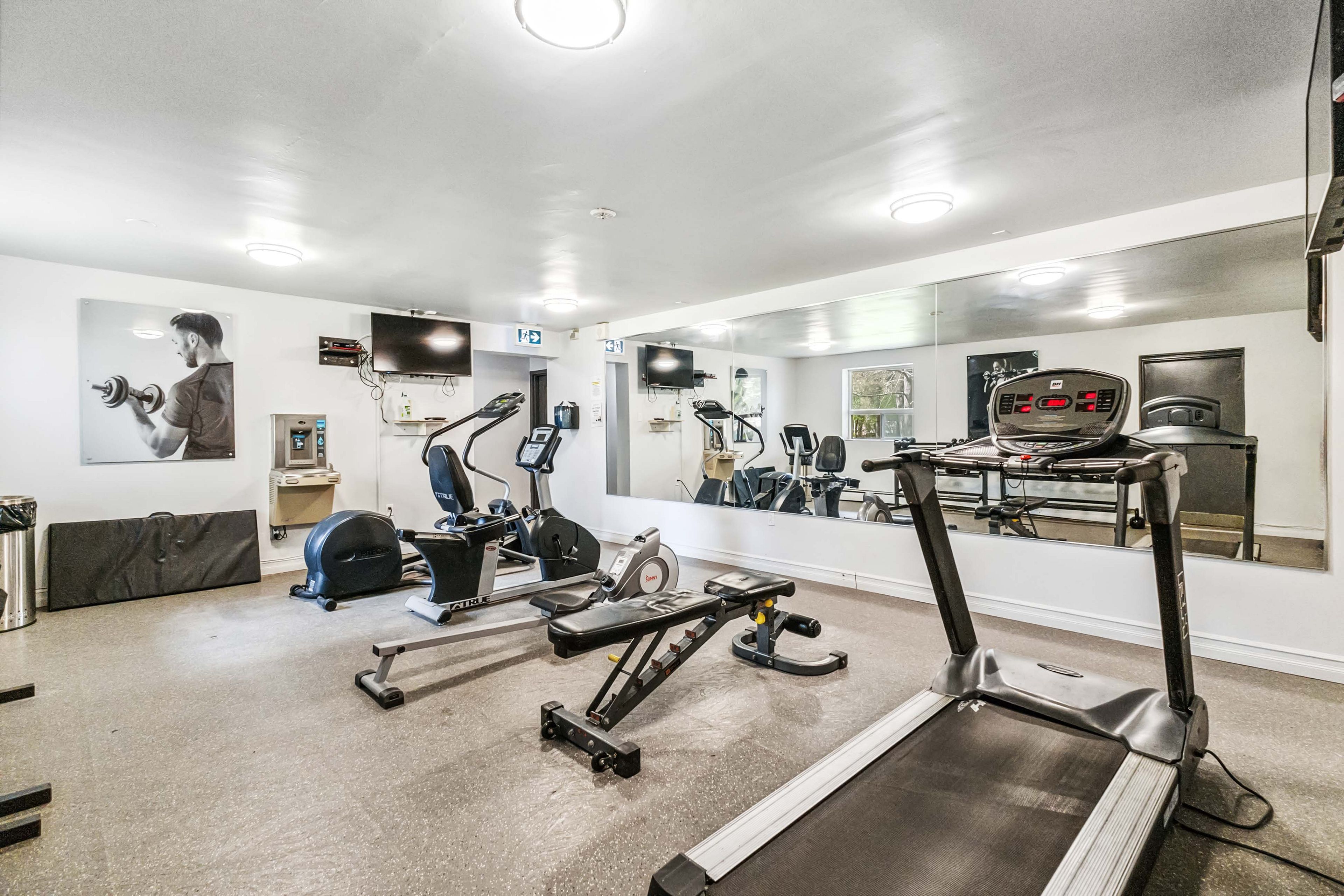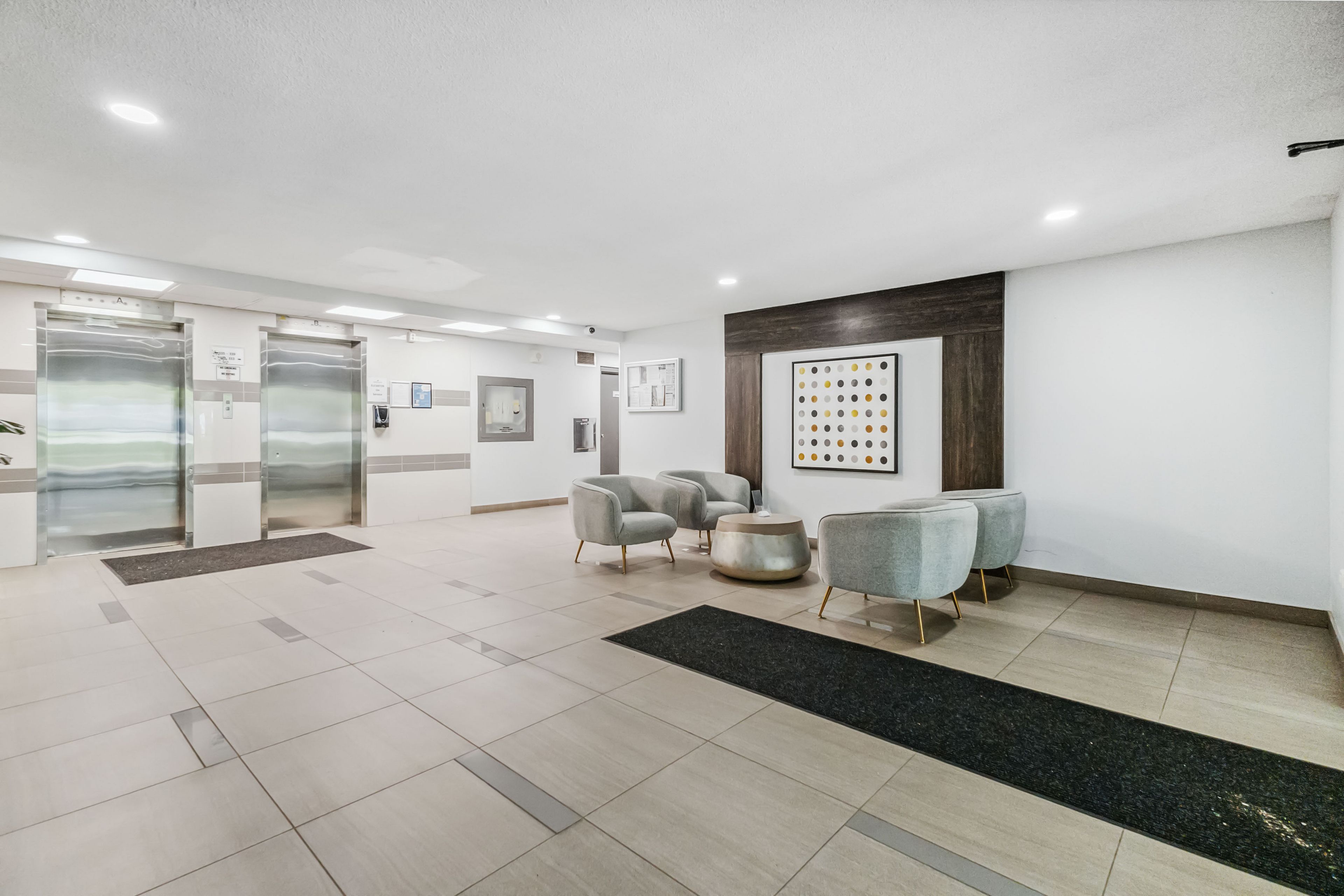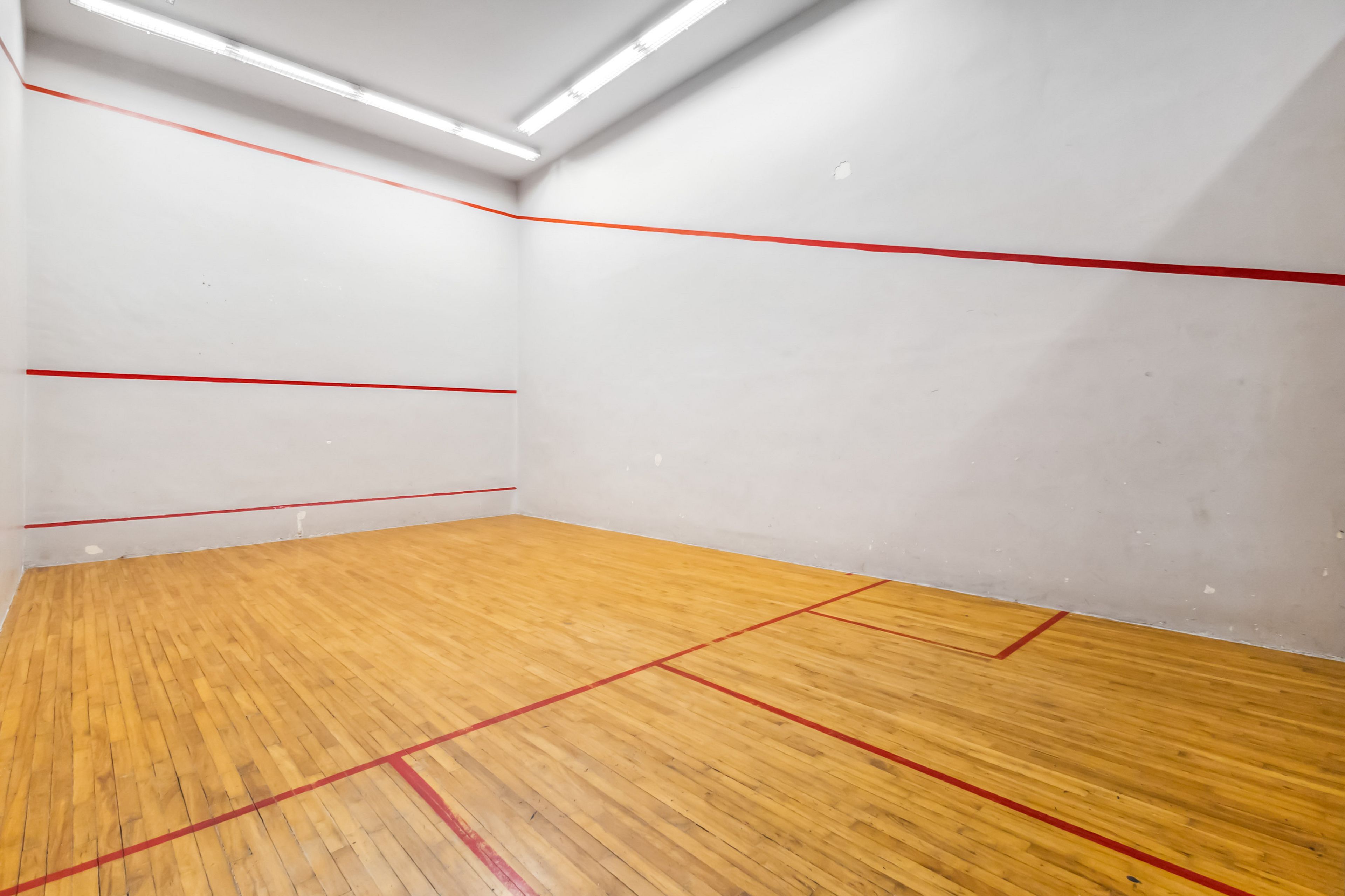 • On-site amenities include a fitness centre, squash court, and pool.