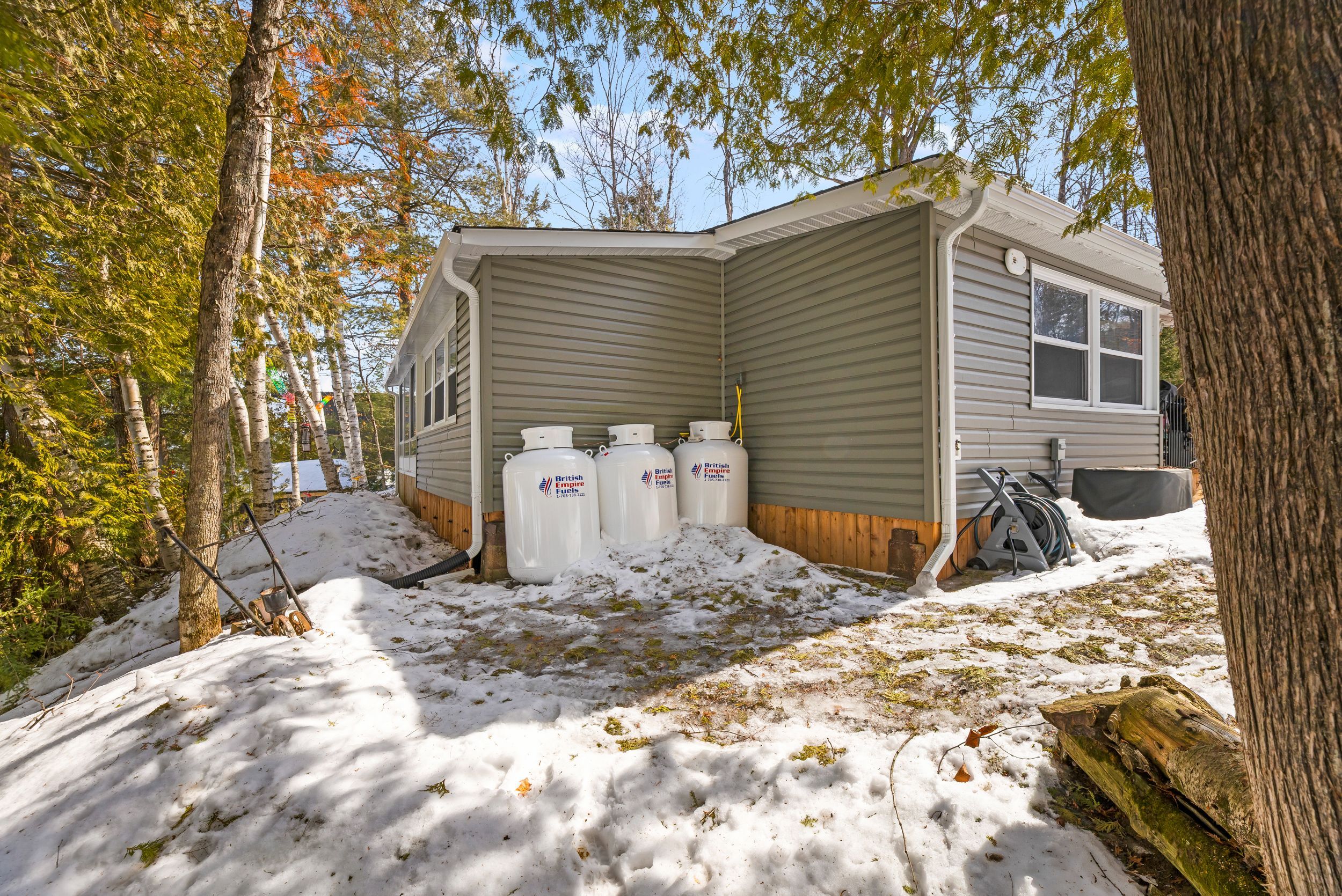 Subtype DetachedIndoor Features Carpet Free, Primary Bedroom - Main Floor, Water HeaterOutdoor Features Patio, DeckAmenities Beach, Lake Access, Marina, Sloping, WaterfrontOwnership FreeholdViews Trees/WoodsWaterfront DirectBasement NoneFoundation PiersHeating / Cooling Forced AirHeating Fuel PropaneSewer Septic