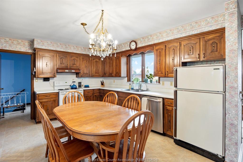 Welcome home to 1565 roxborough, nestled in the heart of south windsor! This charming 3+1 bdrm, 2 bath home is filled w/space & character. Enjoy gleaming hardwood & ceramic floors, a formal dining rm for special occasions, and a cozy sunken family rm w/fireplace (gas)—perfect for unwinding. The kitchen is fully equipped w/appliances, making your move easy. The lower level adds flexibility w/a 4th bdrm, additional living area & second fireplace (wood). Step outside to a generous, partially fenced yard featuring sprinklers & a patio—ideal for entertaining or relaxing outdoors—plus a large storage shed for added convenience. Roof approx under 10 years, furnace and air 2018, hot water tank purchased 2018, septic cleaned 2026. Complete w/an attached 2-car garage, this home is just minutes from schools, parks, churches, shopping, university of windsor & the us border. Immediate possession available—start your next chapter here!