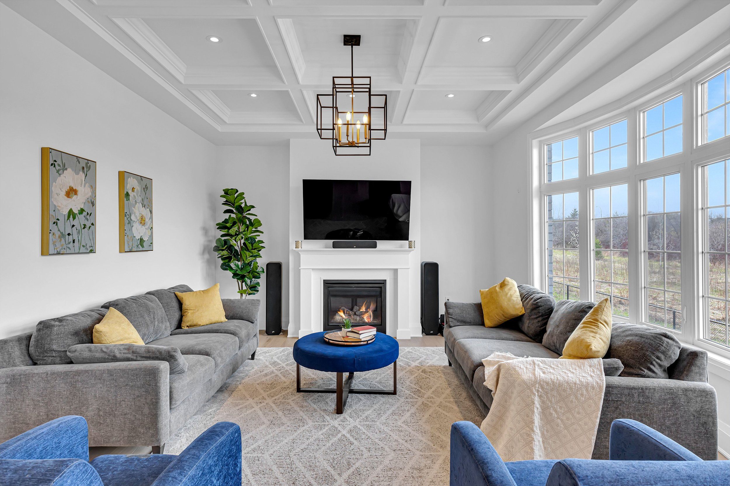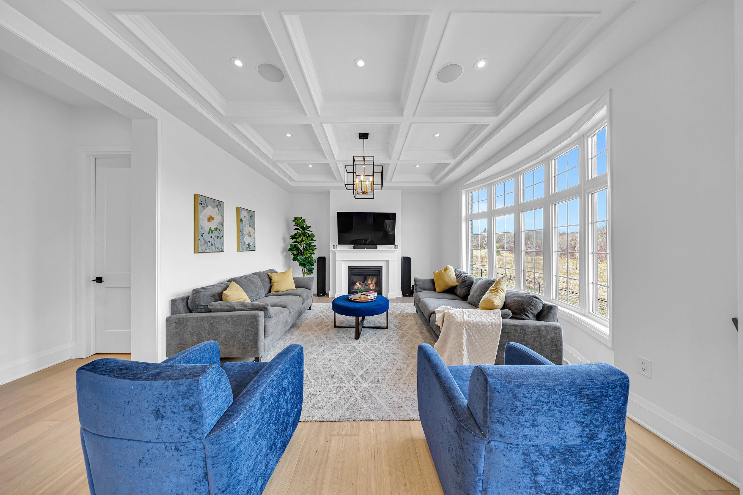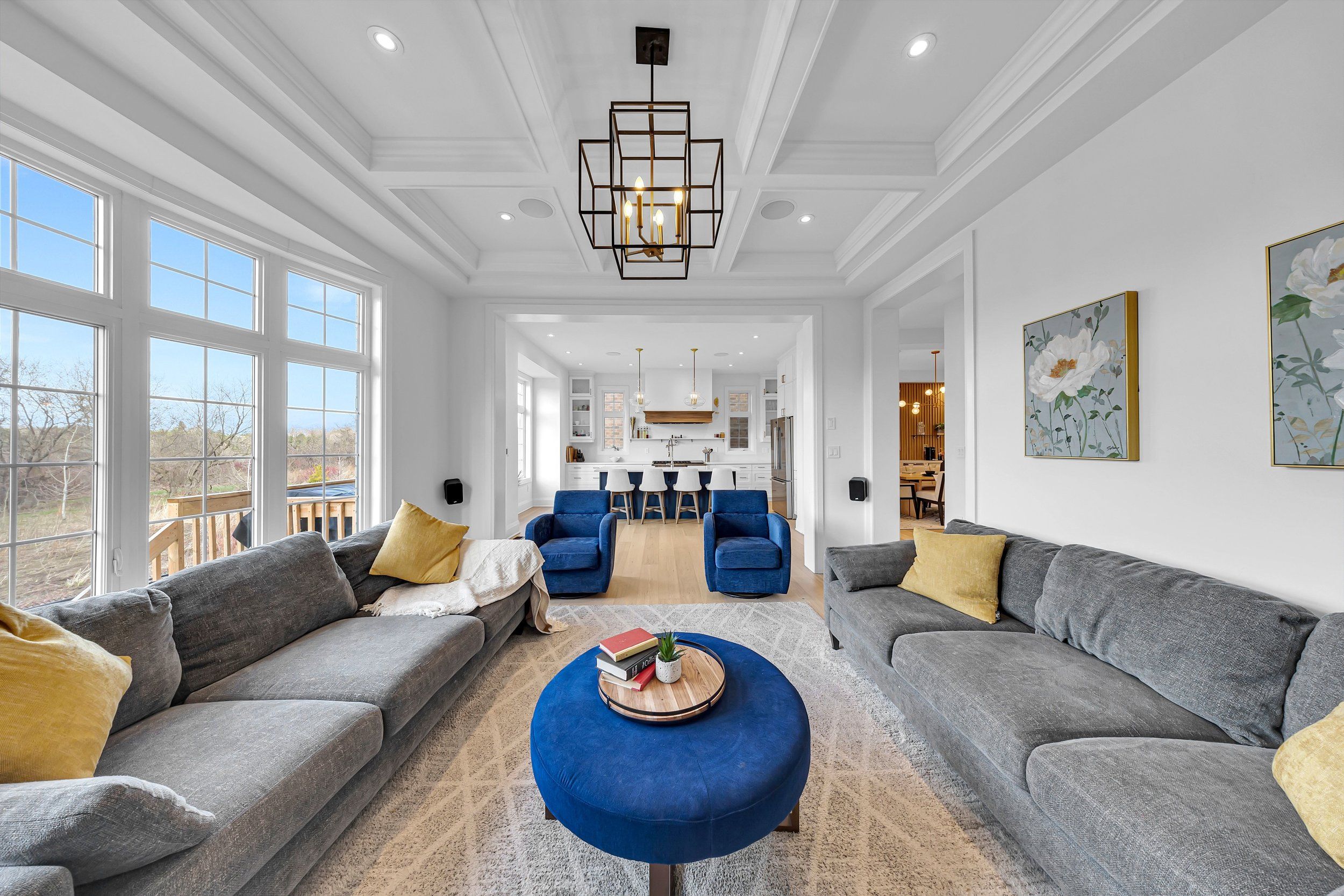 • Open-concept main floor with 10 ft ceilings and built-in ceiling speakers.
