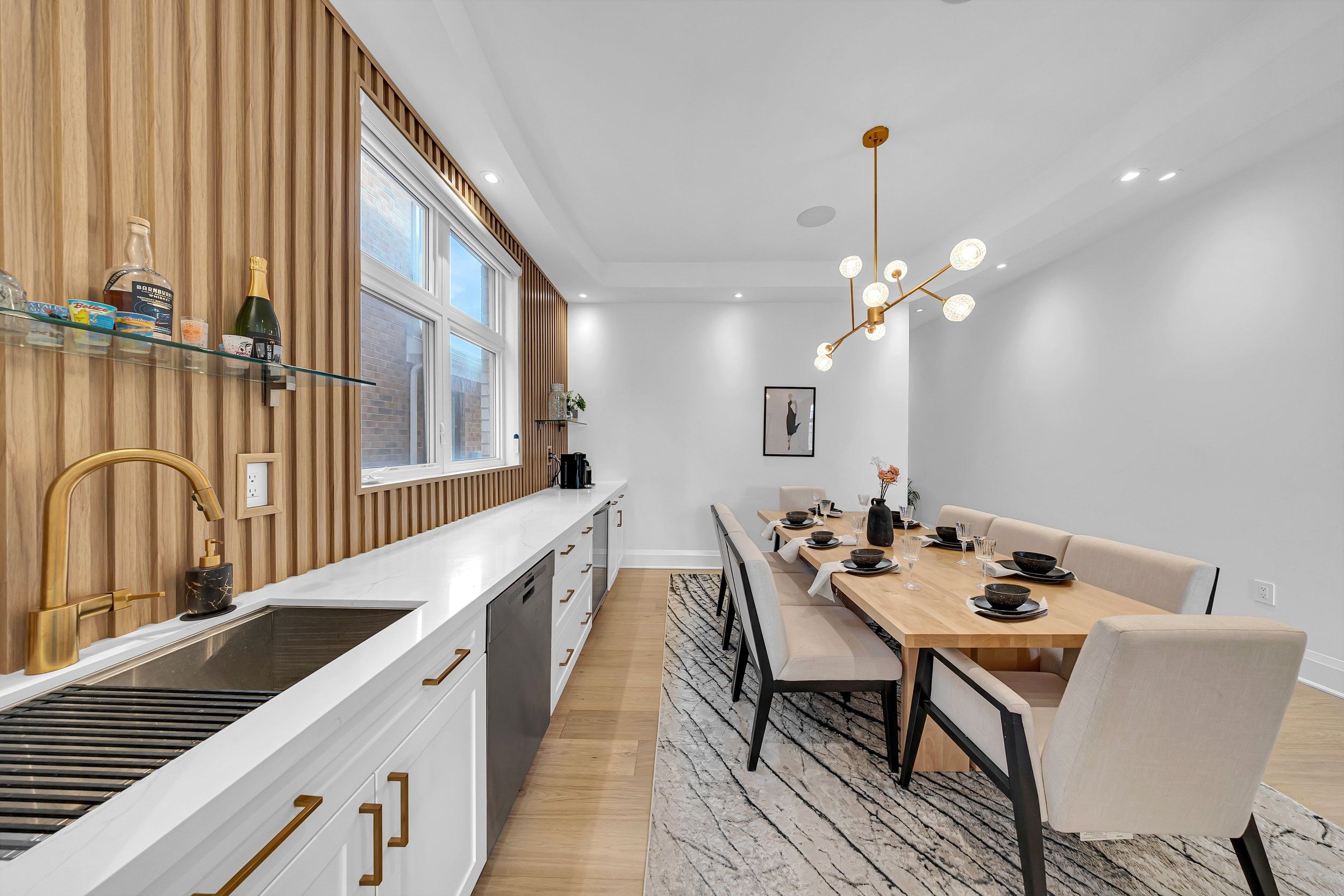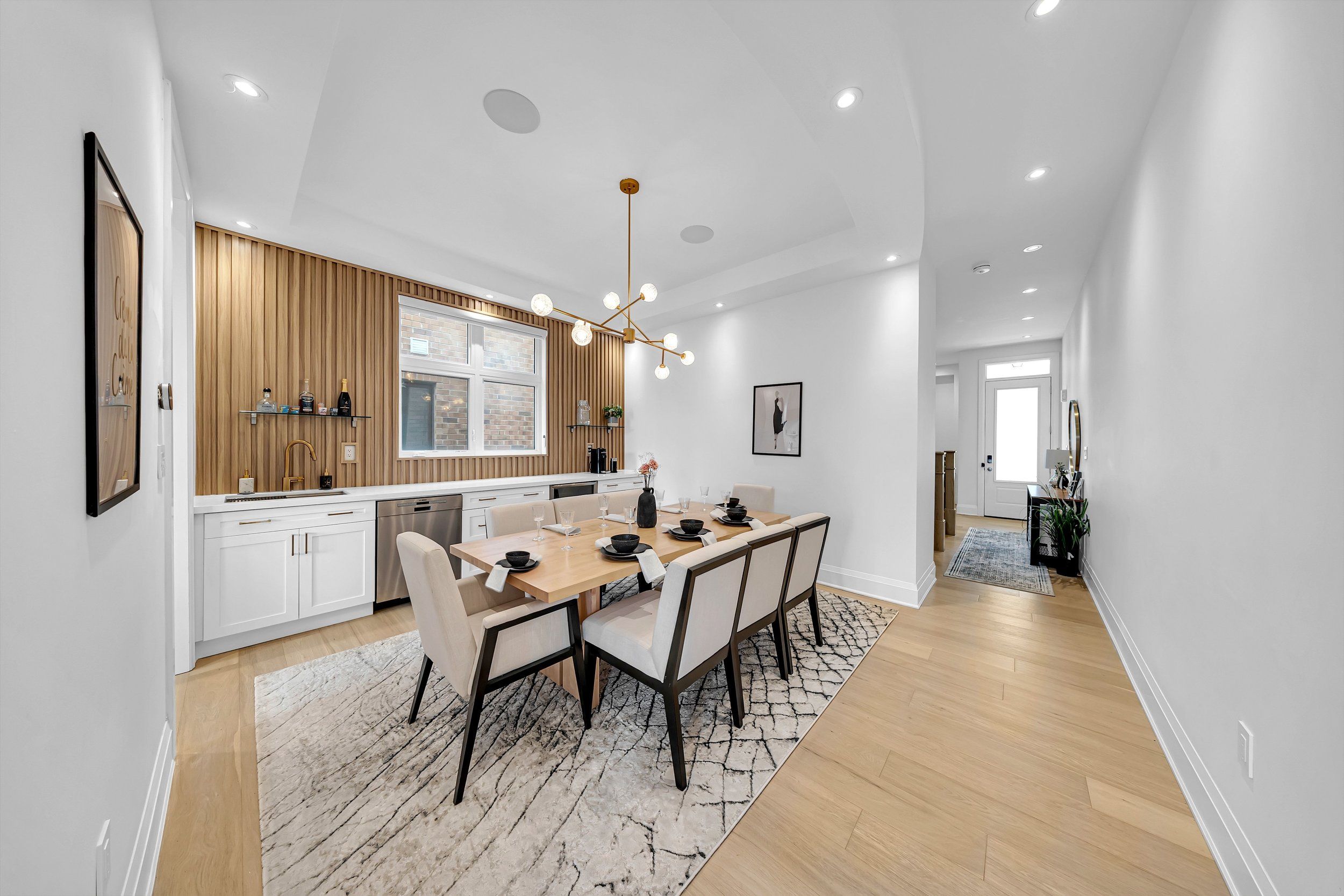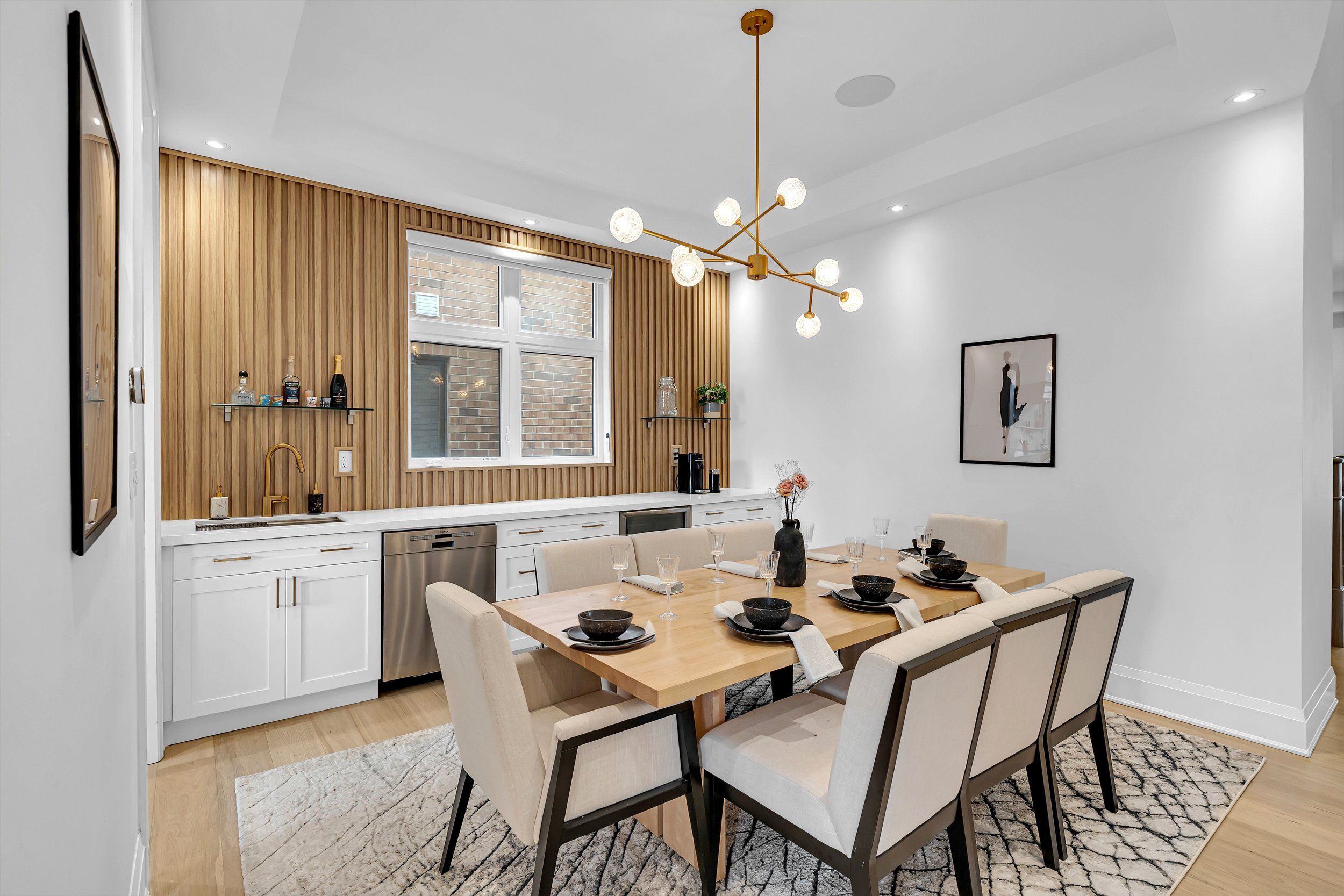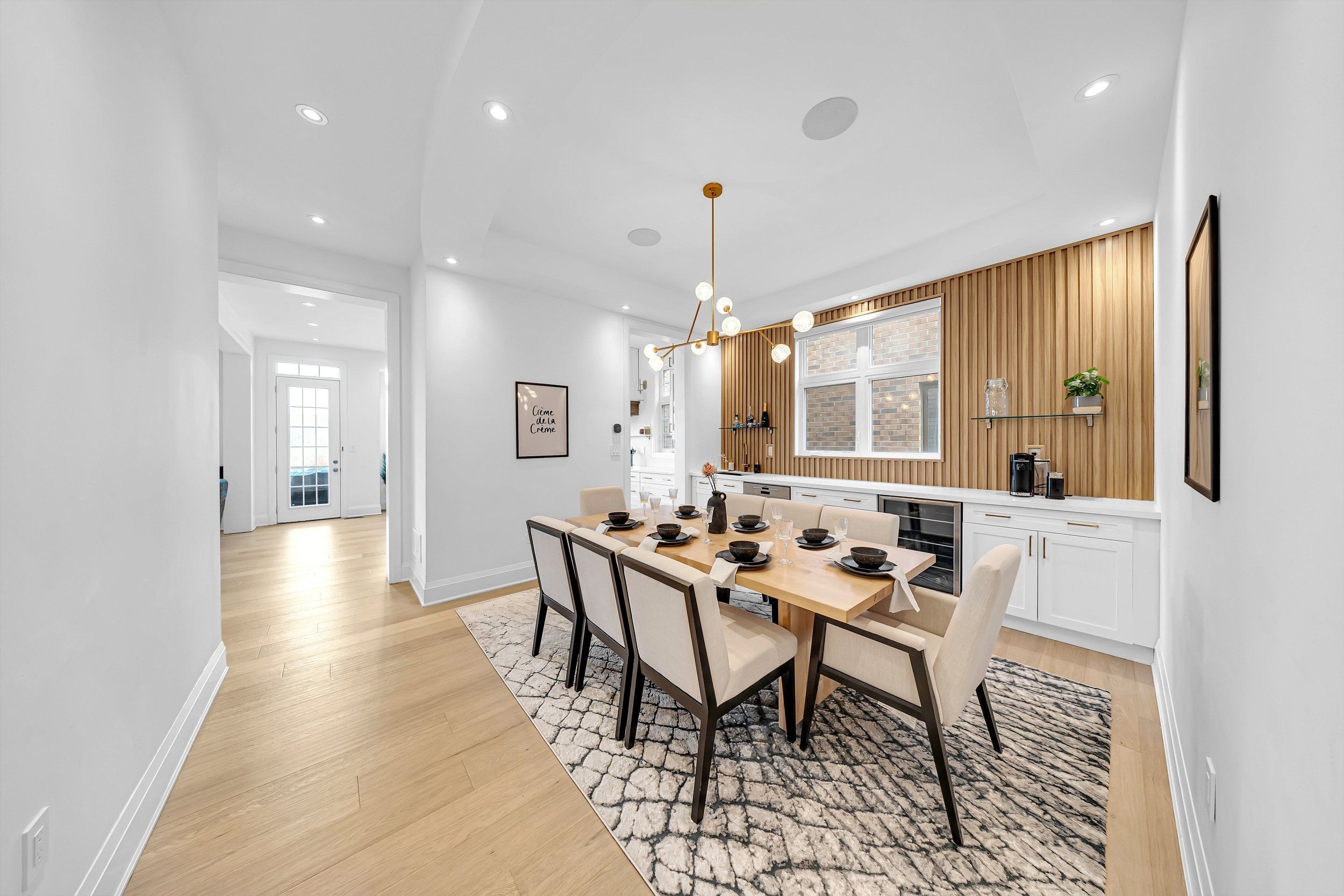 • Gourmet kitchen and formal dining room with a built-in bar for entertaining.