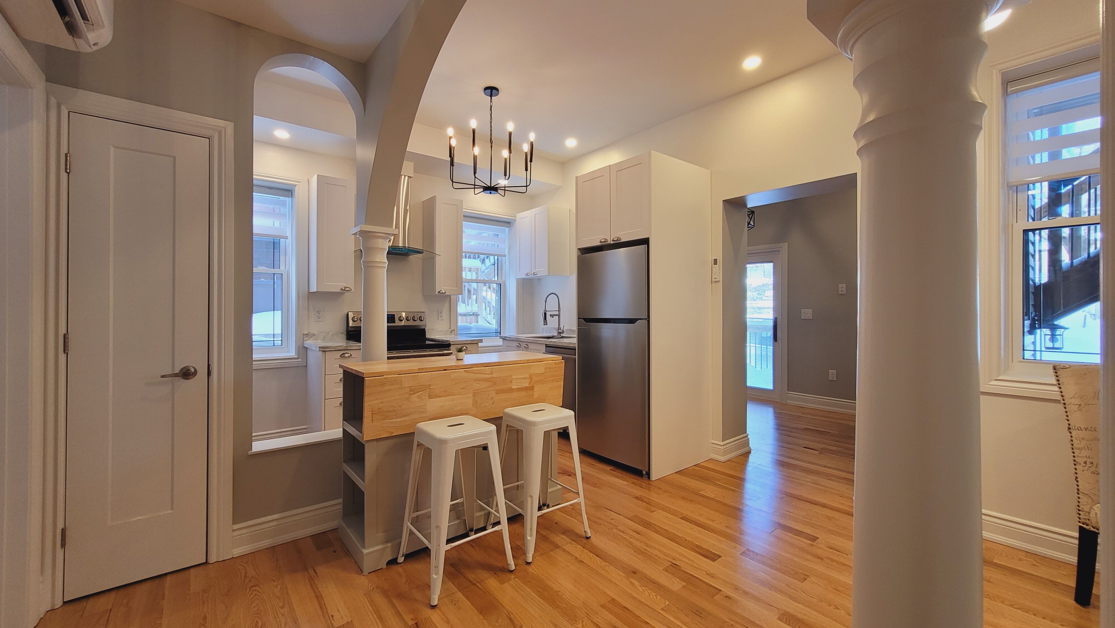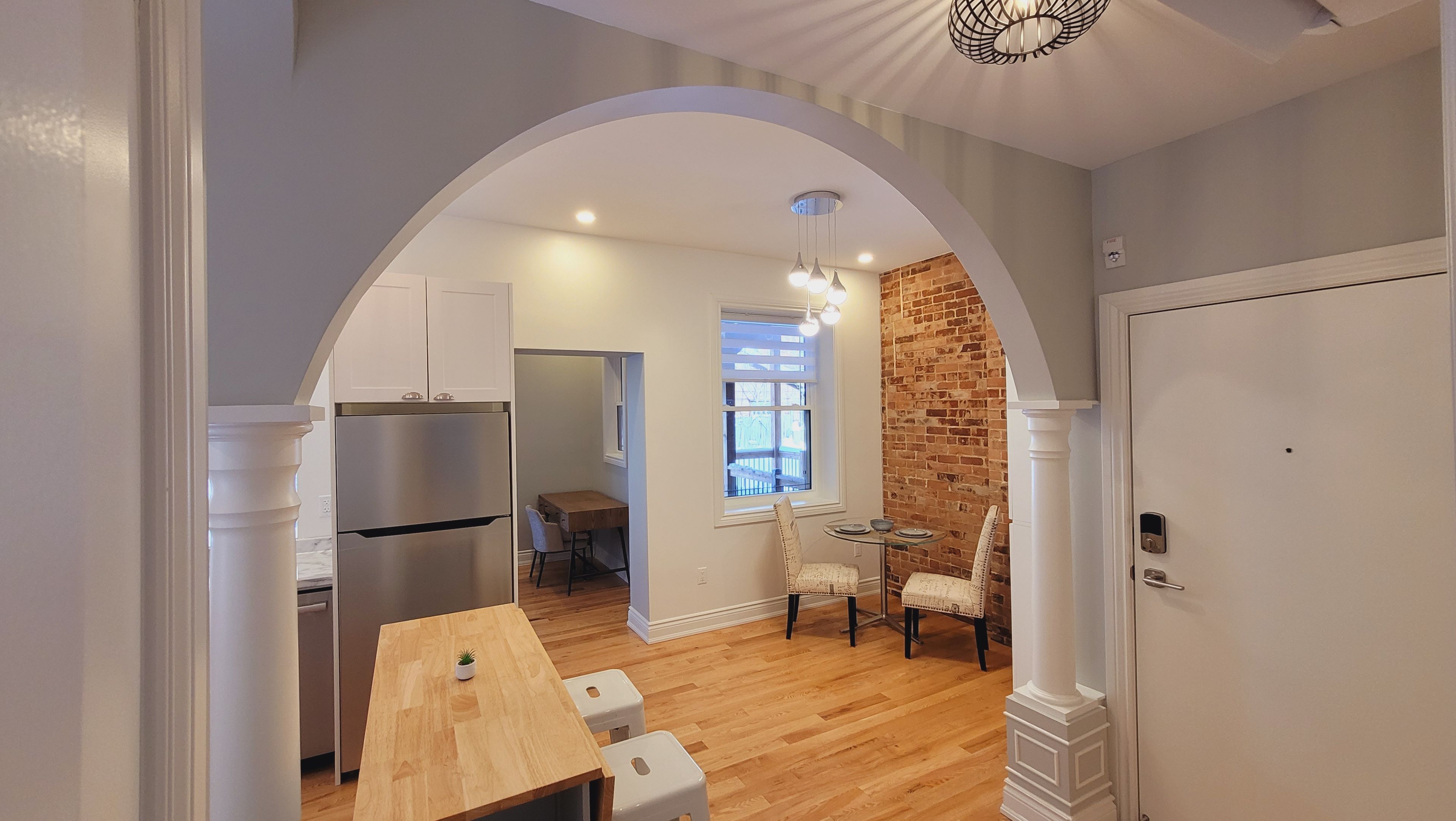 Unit 103 - 1 bedroom (+ den) 1 4-pc bathroom executive apartment with outdoor balcony at the back. The den is large enough to be a second bedroom. Built in 1901, this historic red brick building has been totally gutted, rebuilt, modernized from ceiling, to wall, to floor, to structure, to studs, to heating system, to plumbing, to electricity, to heating and cooling system, to roof, to front steps, to the garden, to anything you can think of, completely new. Building has a total of 12, one or two bedroom executive apartments. All equipped with in-suite laundries, air conditioning for the summer, heat pumps for the winter, some have private outdoor balconies, some have indoor sunrooms/offices /dens. Most units stillhave their original historic red brick inside the indoor living space. All oak hardwood floorings and tiles throughout. Parking with fee are available at building parking lot. In centertown, 157 james street is all about its location. Check out the walkers score 97/100, the transit score74/100, bikers score 92/100.