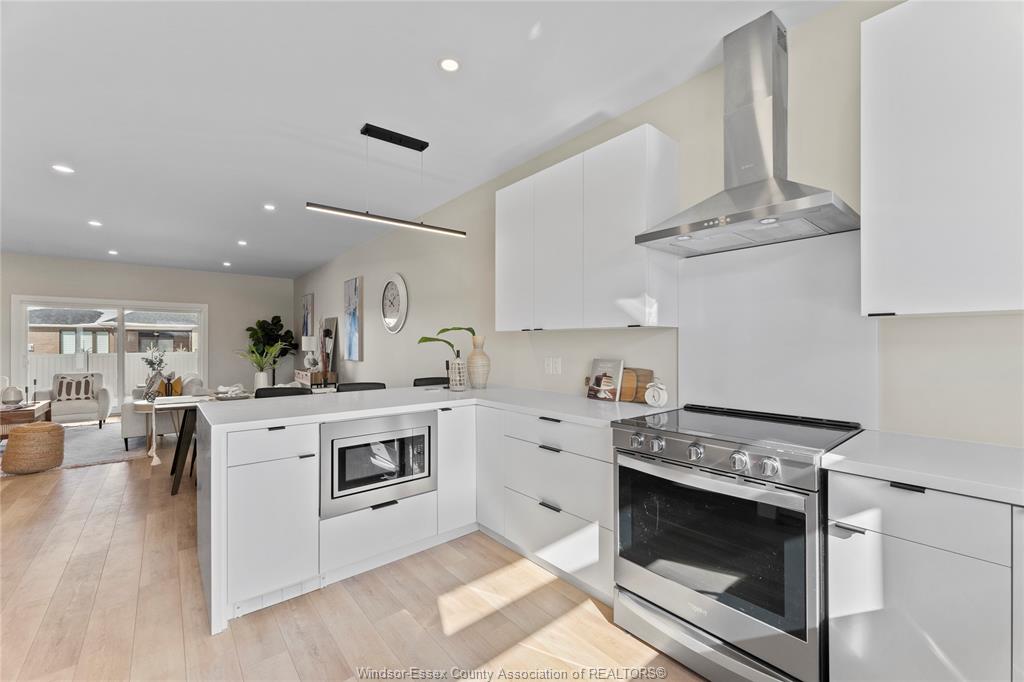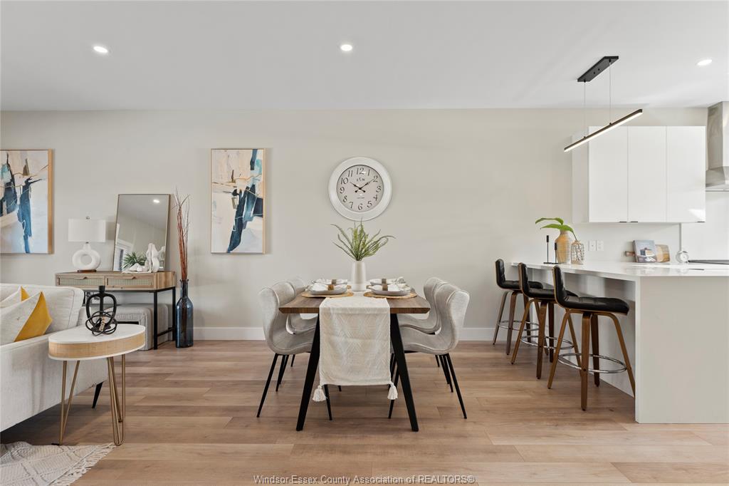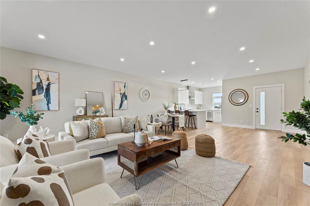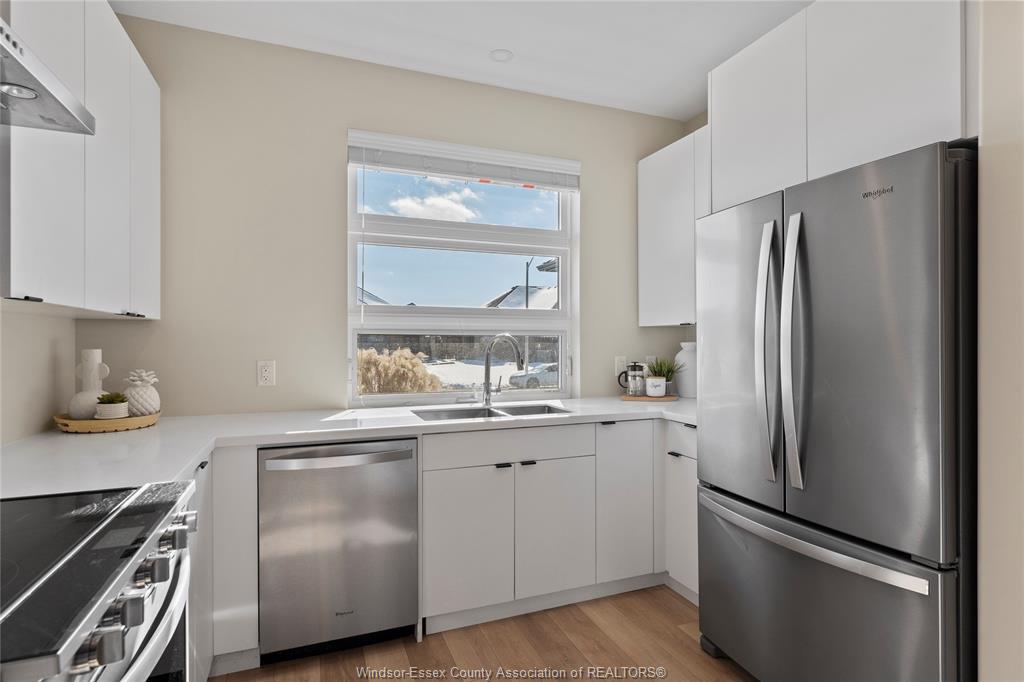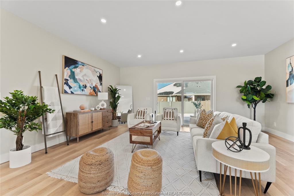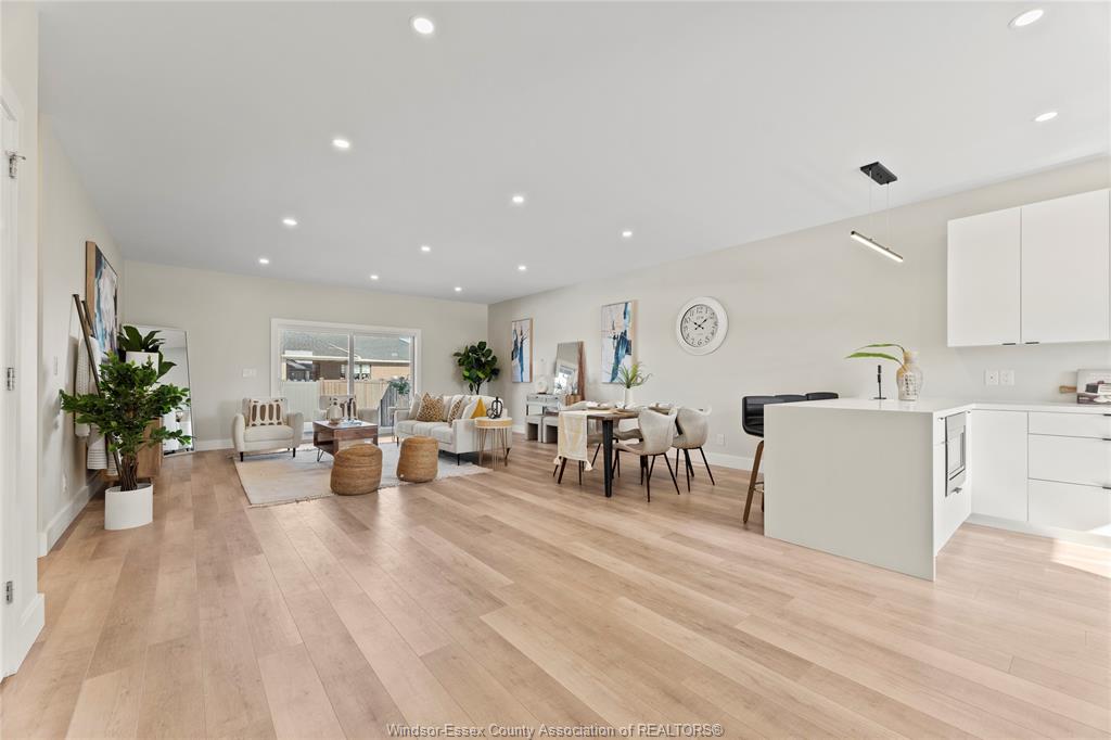 This oversized ranch style semi townhome rests in a prime kingsville location with upgraded finishes throughout! This 2+1 bedroom, 3 bath contemporary styled design spans approx. 1,550 sqft and is streamlined in a clean and functional retro look. Main floor finishes include porcelain tiles, upgraded wood flooring, curb less walk-in shower, riobel faucets, clerestory windows, and custom california closets throughout. Open concept kitchen, dining, and family room with warm neutral, nude coloured wood flooring. Fully finished basement with large family & recreation room, spacious bedroom with walk-in california closet, separate 3pc bath and utility. Double car garage leads to organized laundry/mud room. Expansive and fully covered rear patio with outdoor fan, clean modern looking front landscaping, and cement drive.