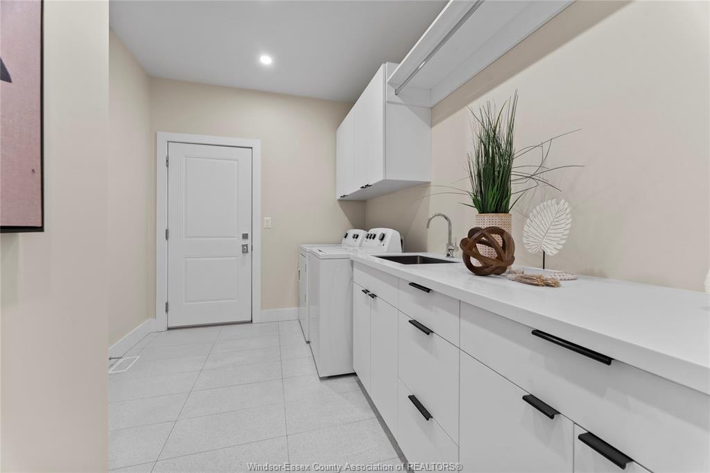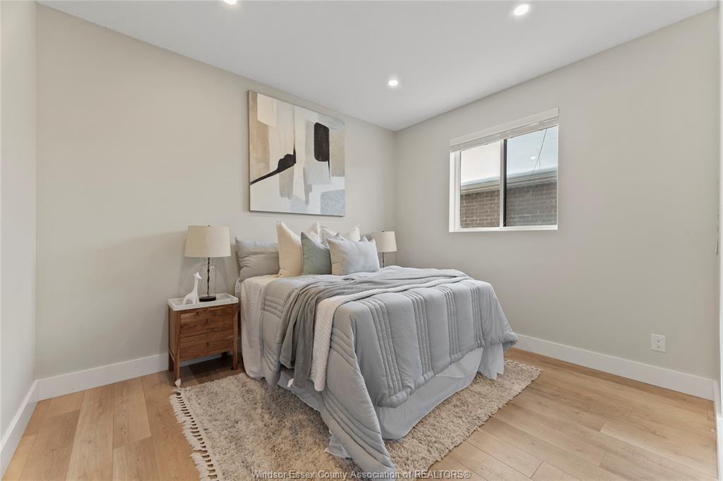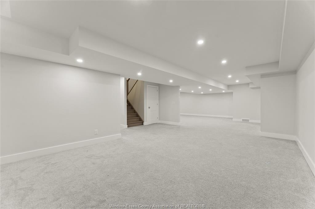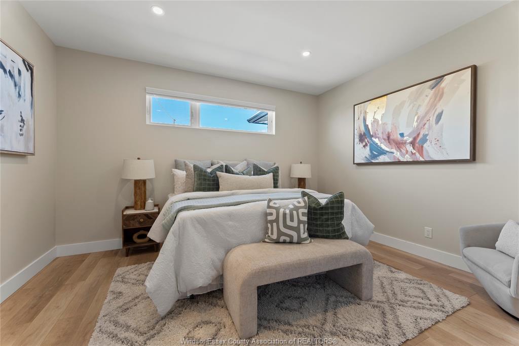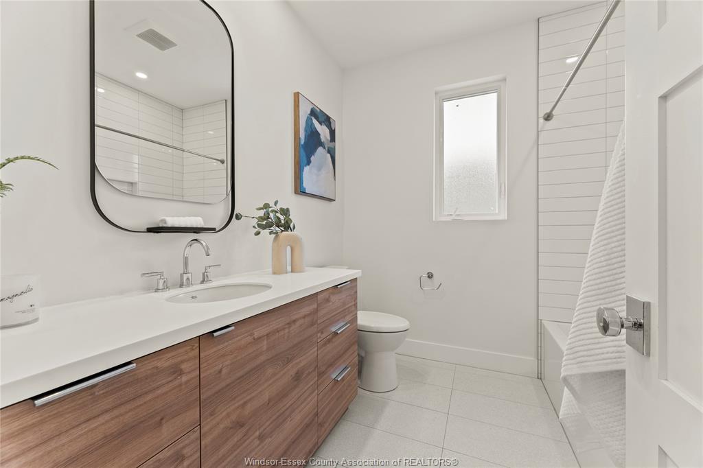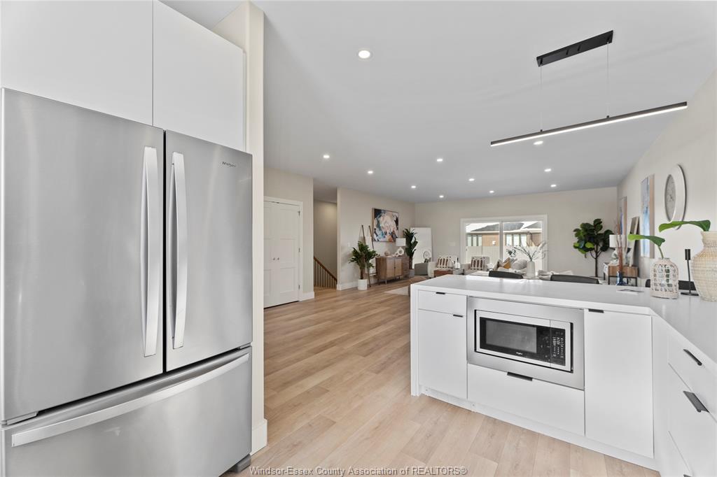 This oversized ranch style semi townhome rests in a prime kingsville location with upgraded finishes throughout! This 2+1 bedroom, 3 bath contemporary styled design spans approx. 1,550 sqft and is streamlined in a clean and functional retro look. Main floor finishes include porcelain tiles, upgraded wood flooring, curb less walk-in shower, riobel faucets, clerestory windows, and custom california closets throughout. Open concept kitchen, dining, and family room with warm neutral, nude coloured wood flooring. Fully finished basement with large family & recreation room, spacious bedroom with walk-in california closet, separate 3pc bath and utility. Double car garage leads to organized laundry/mud room. Expansive and fully covered rear patio with outdoor fan, clean modern looking front landscaping, and cement drive.