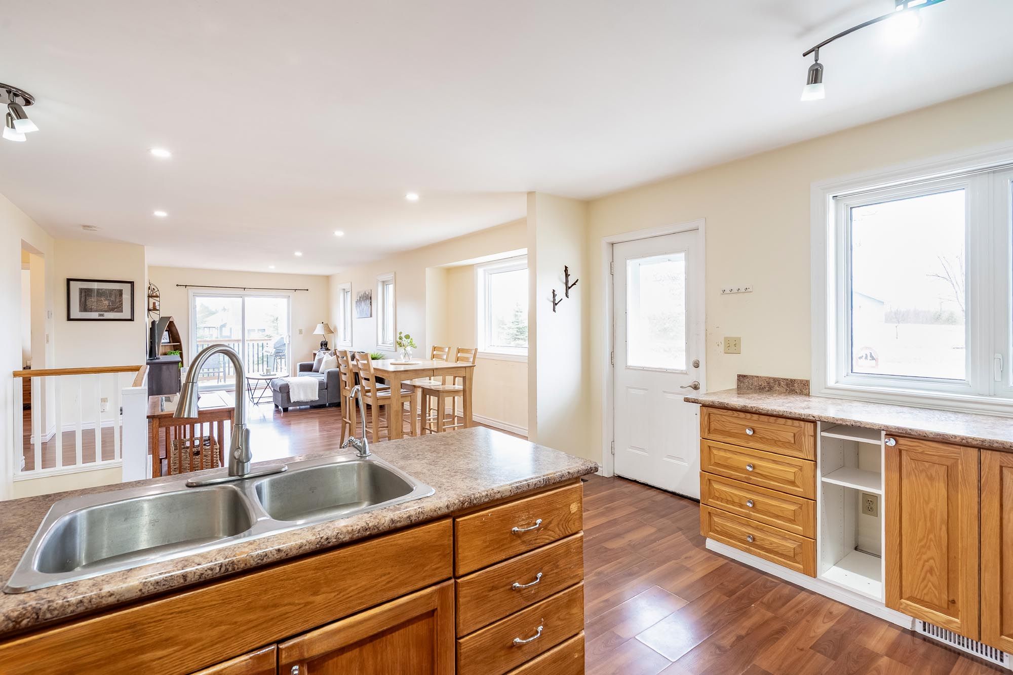 • Open-concept main level with a cozy family room and backyard access.