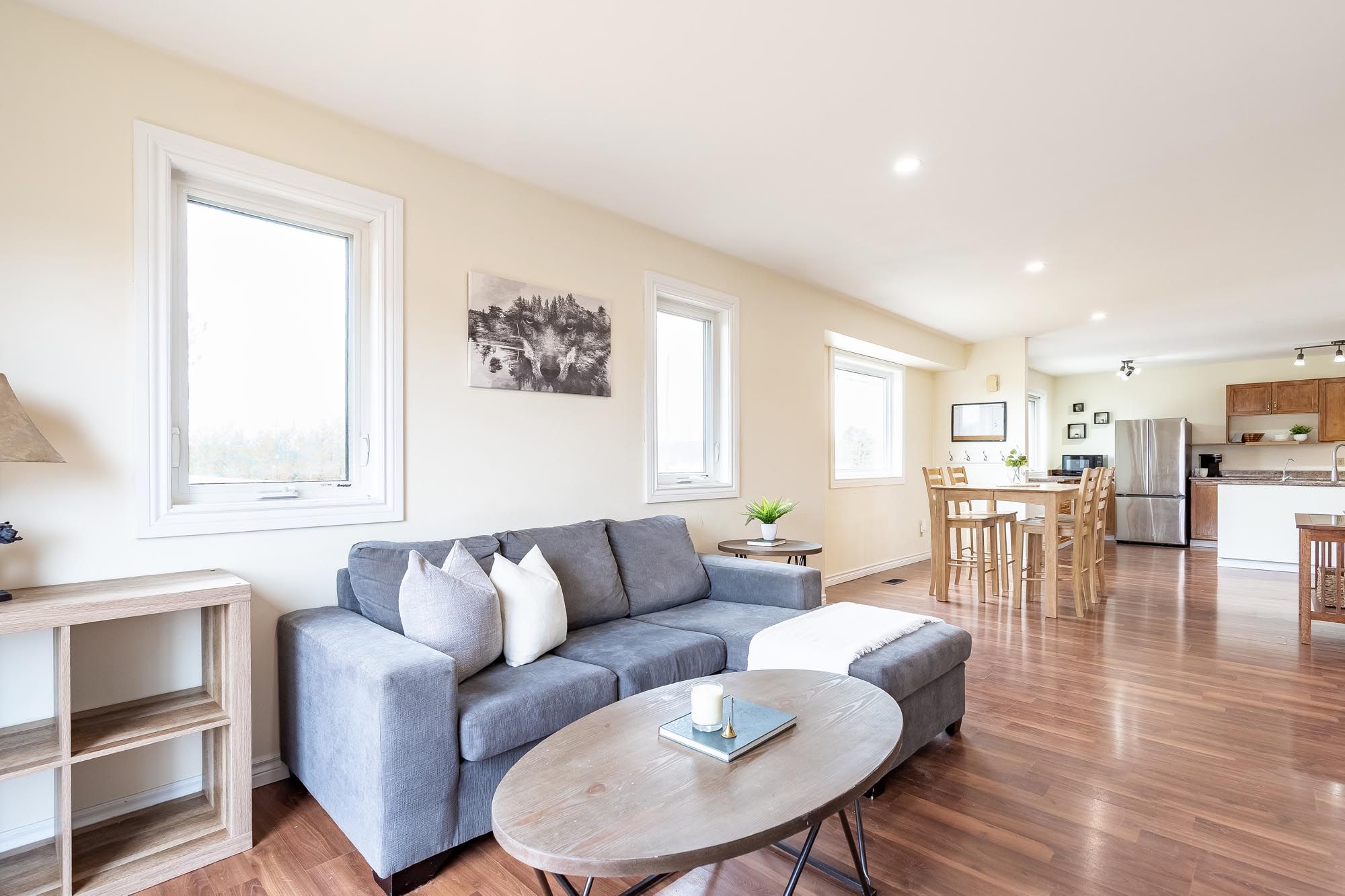 Top 5 reasons you will love this home: 1) rare opportunity to own a three bedroom bungalow on an expansive 3-acre property in the highly sought-after brewster lake neighbourhood, known for its impressive estate-sized lots and custom-built homes 2) enjoy shared ownership of a private waterfront parcel on brewster lake, complete with exclusive access to a residents-only beach just steps from your front door 3) offering an open-concept main level complemented by a cozy lower level family room featuring a sliding glass-door walk out to the sprawling backyard 4) spacious driveway providing ample parking, while an attached garage delivers convenient direct access to the basement 5) experience the tranquillity of rural living without sacrificing convenience, with year-round recreation nearby, including skiing at devil's glen ski club and scenic hiking trails in creemore and eugenia, all just a short drive away. 1,022 above grade sq. Ft. Plus a partially finished lower level.