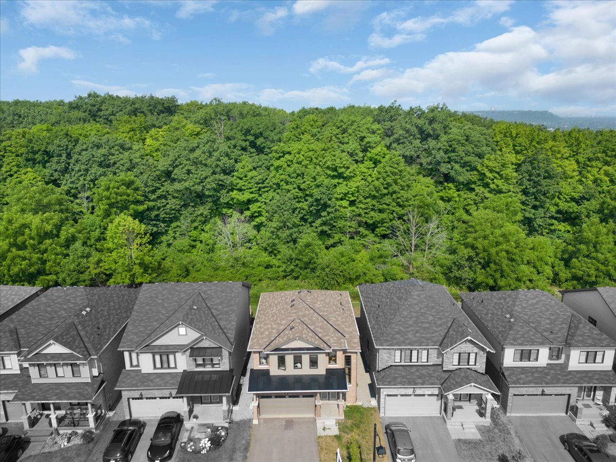 Welcome to 157 cactus crescent, a home that stands apart from the rest! Set atop the stoney creek mountain and backing directly onto breathtaking green space with wooded walking trails and secret waterfalls, this is a rare opportunity to enjoy nature in your own backyard. Built by empire, this 4-bedroom, 3-bathroom beauty offers over 2,000 sq ft of modern, open-concept living space designed for real life and peaceful retreats. From the moment you enter the bright, airy foyer with soaring ceilings, youll feel the difference. The main floor features a sleek, upgraded kitchen with a centre breakfast island, high-end stainless steel appliances, and direct walk-out access to a private rear deck, all perfectly positioned to take in the uninterrupted greenery. The open family room is framed by large picture windows that bring the outdoors in, while a generous dining area creates space to host and gather. A beautiful wood staircase leads to the second floor, where four spacious bedrooms await. The primary suite is a true retreat with a walk-in closet and a spa-like ensuite complete with a glass shower and deep soaker tub, both offering serene views of the treetops beyond. The unfinished basement is full of potential, and the double car garage with inside entry offers added convenience. Set in a quiet, family-friendly neighbourhood just minutes from schools, parks, major highways, and everyday amenities, this home isnt just stylish, its special. Come explore the peace, privacy, and lush surroundings that make this home one of a kind.