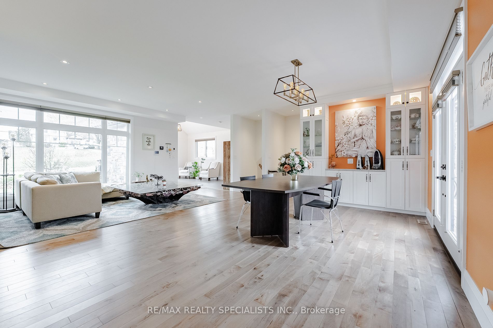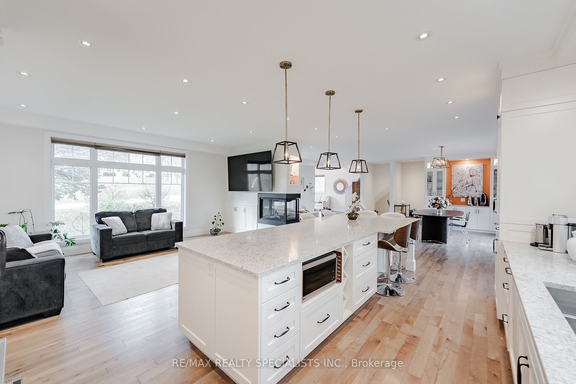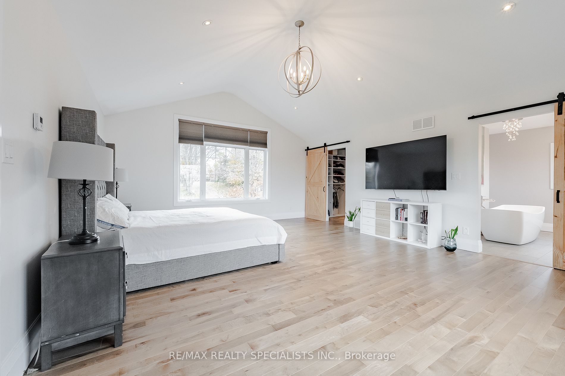 Welcome to 157 confederation street! Nestled in the heart of glen williams, this custom-built 5-year-old masterpiece sits proudly on a 1-acre lot, offering the perfect balance of luxury, comfort, and family living. From the moment you arrive, the muskoka granite exterior, composite decking, and impeccable craftsmanship set the tone for what's inside. Step through the grand foyer with vaulted ceilings and heated floors, and take in the bright, open-concept main level featuring solid maple flooring, a two-way gas fireplace, and expansive windows that flood the home with natural light. The stunning white kitchen is a chef's dream, complete with a massive centre island with seating for six, gas range, and an integrated fridge and dishwasher, just perfect for entertaining or family gatherings. Upstairs, the primary suite impresses with vaulted ceilings, breathtaking views, a spa-inspired 5-piece ensuite, and a walk-in closet with sliding barn doors. A bright home office on the second floor offers the ideal space for remote work or study. The lower level provides a spacious recreation room, 3-piece bath, two walkouts, and plenty of natural light, ideal for extended family or guests. Additional highlights include central vac, a large driveway, and the tranquility of country living with the convenience of the go station less than 5 minutes away for an easy commute to downtown toronto. This is the ultimate family home in one of halton hills' most sought-after communities, where small-town charm meets modern luxury.
