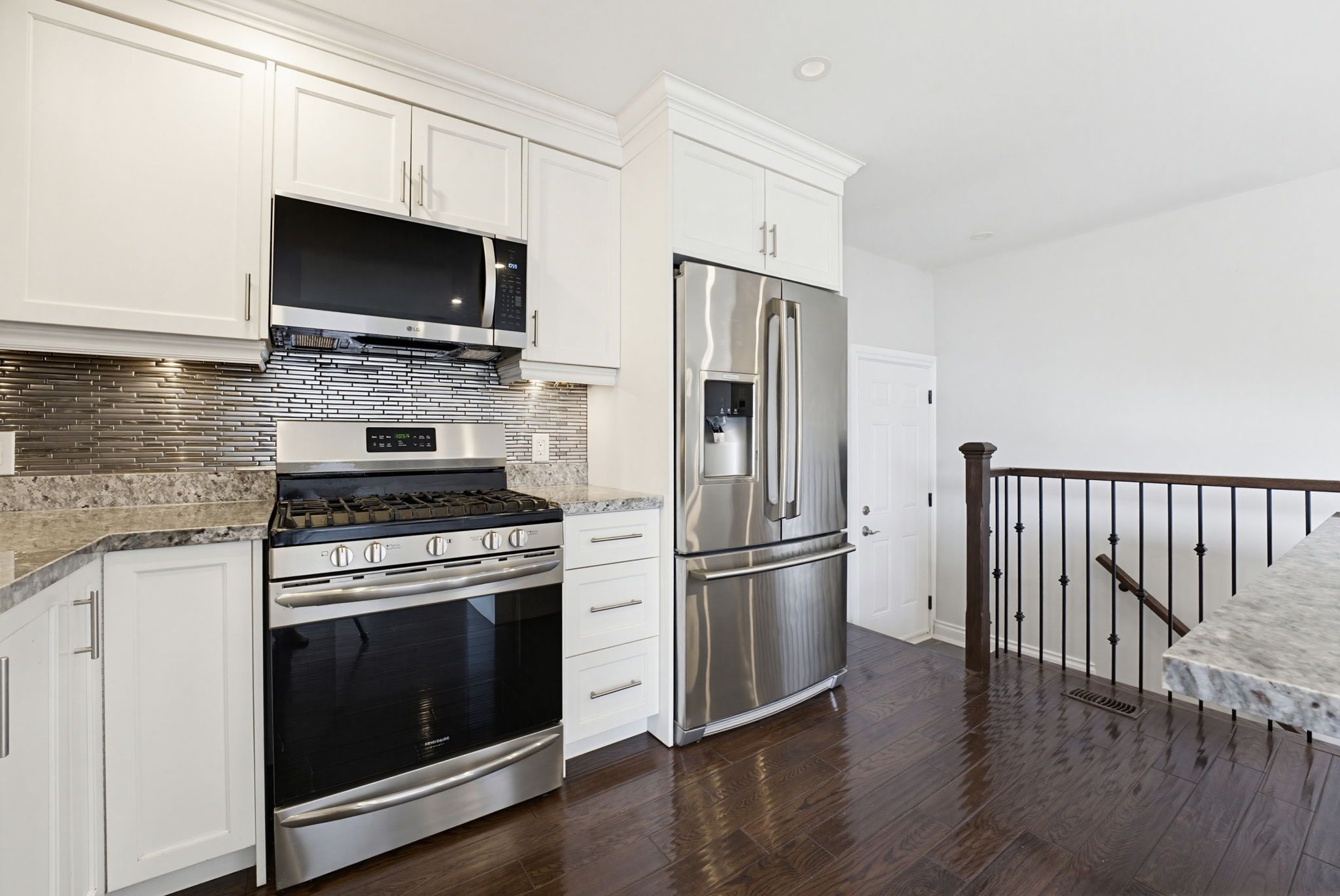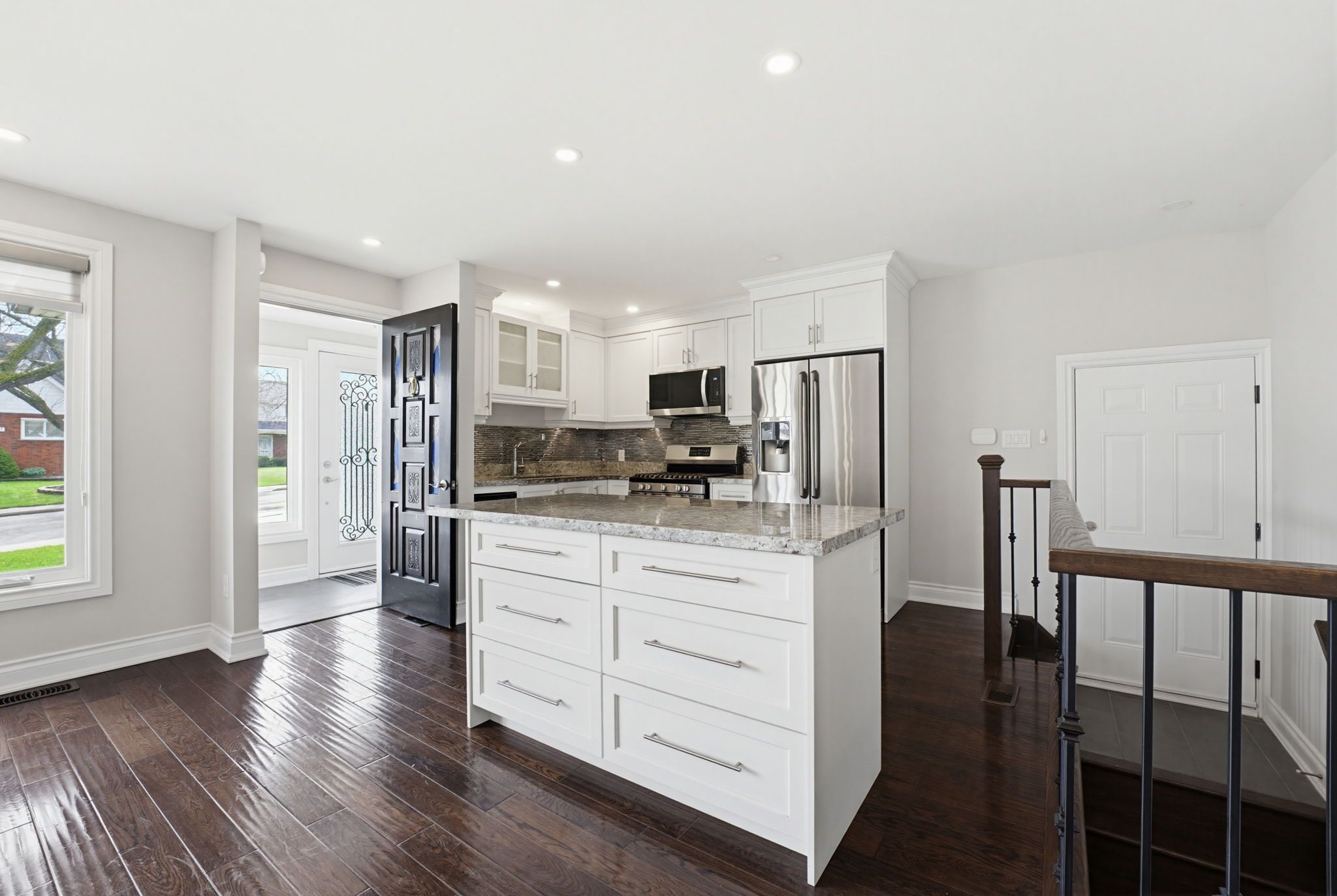 • Granite countertops and ample space in the kitchen.