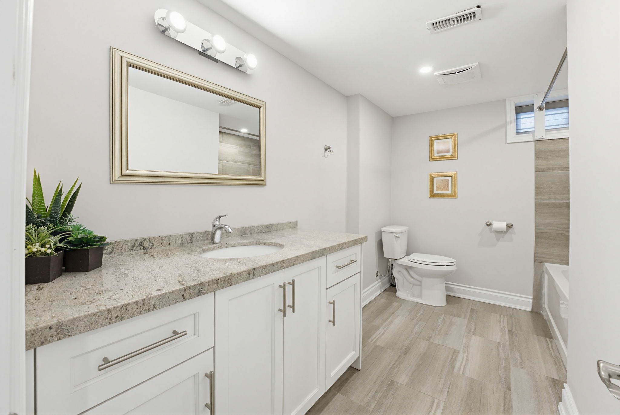 • Large finished rec room with potential for a future kitchen.