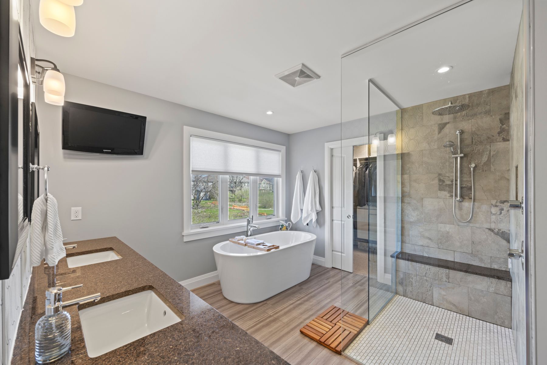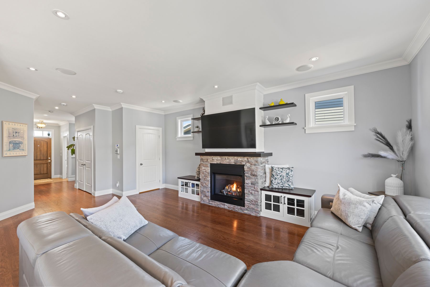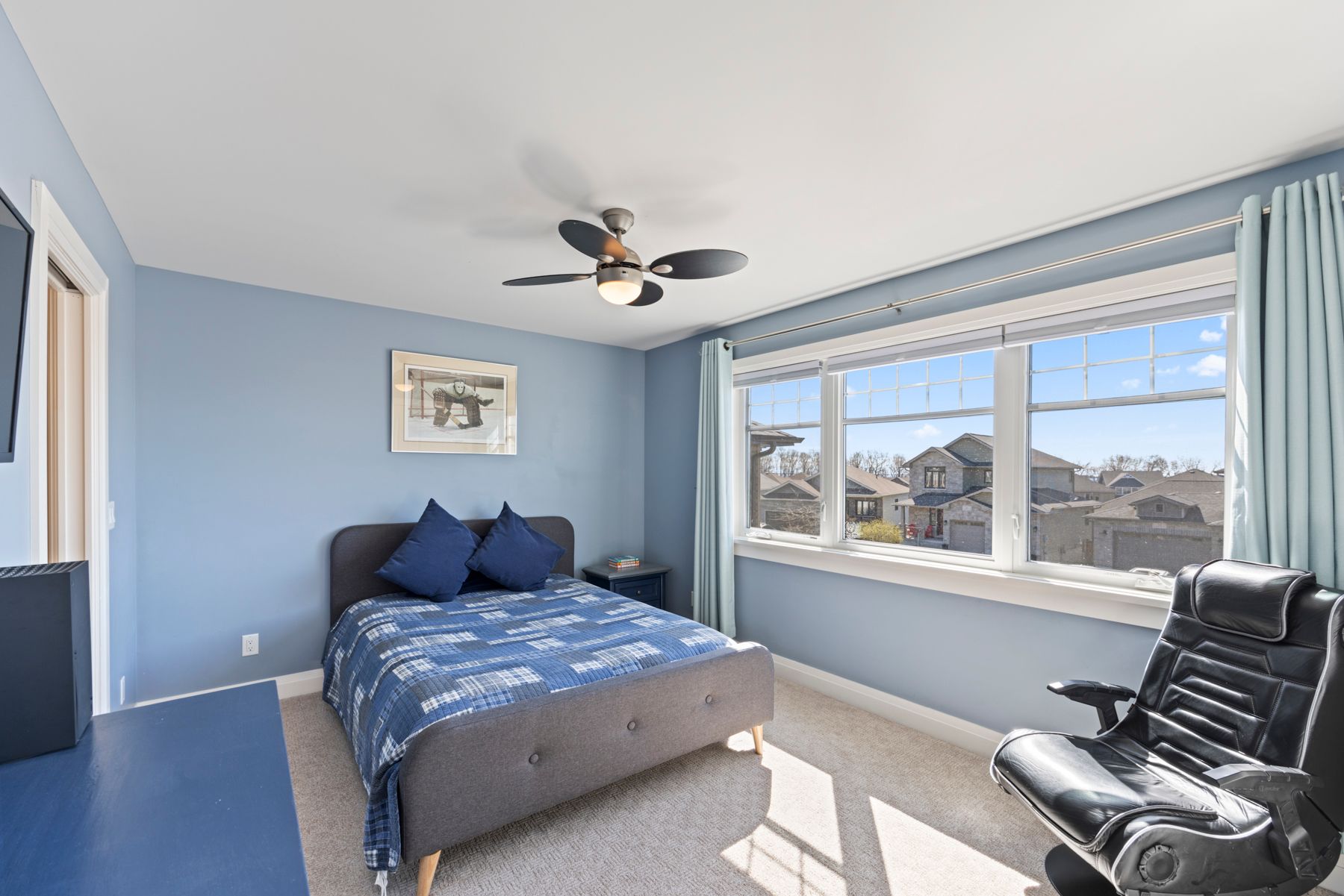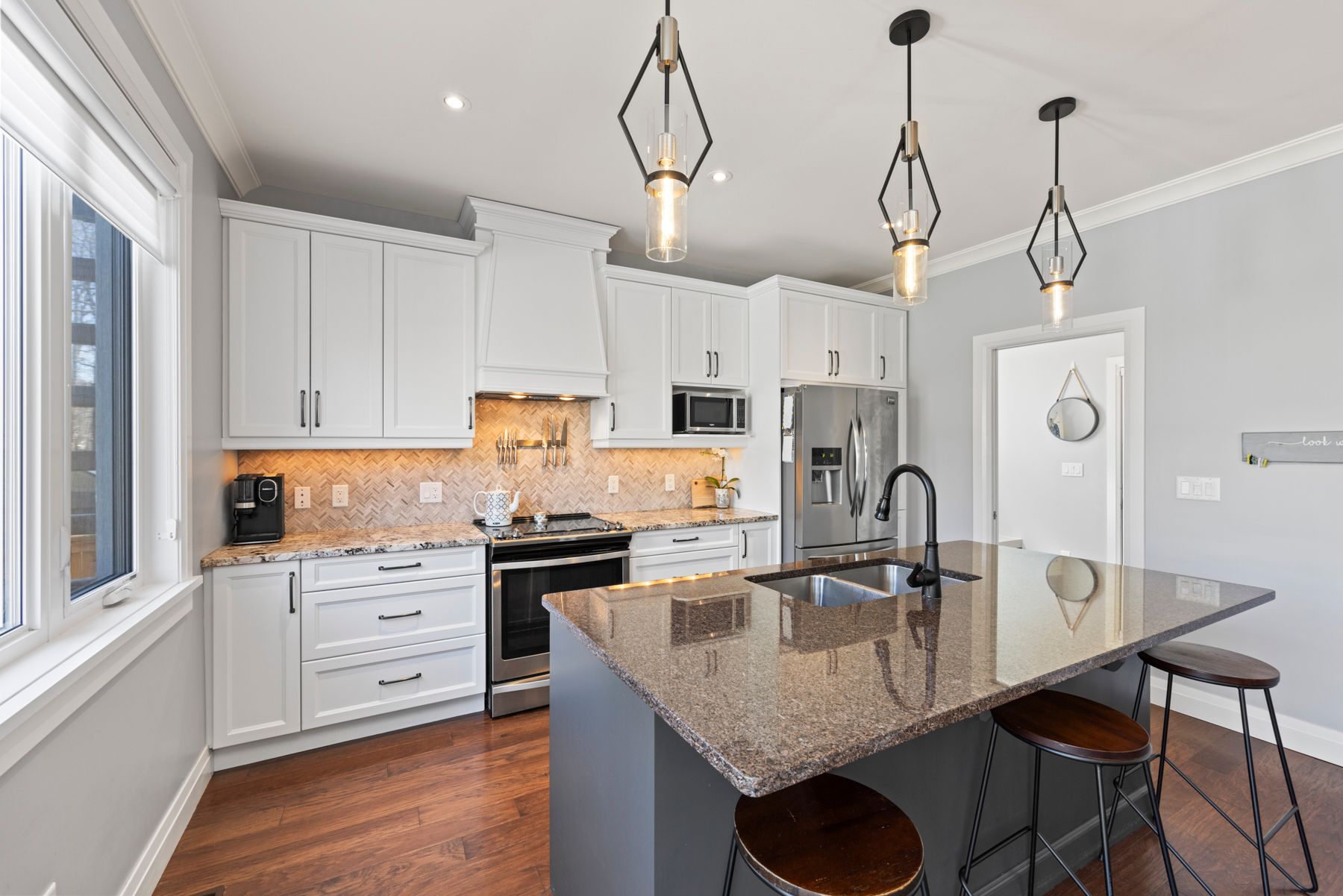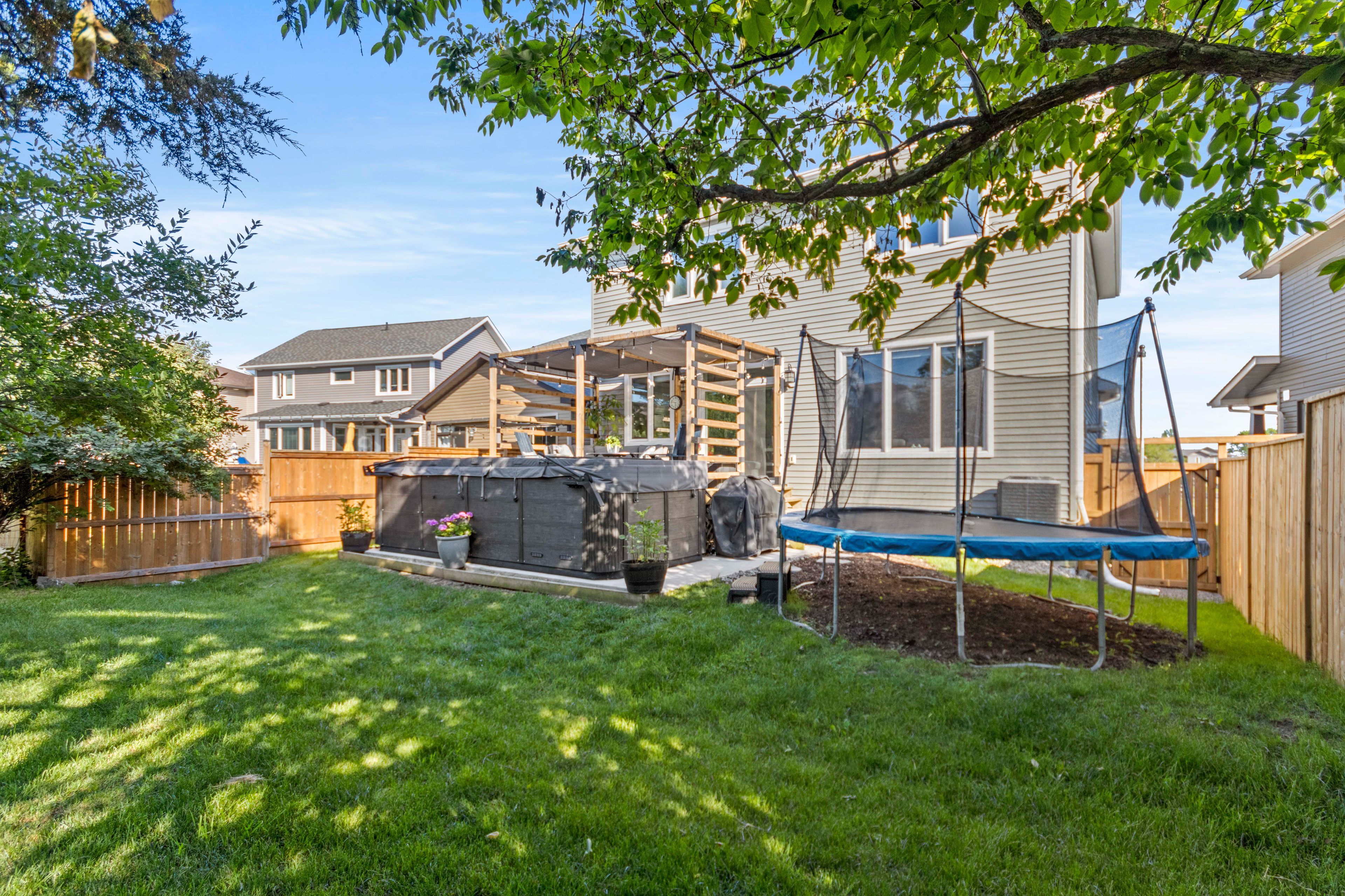 Custom-built 2-storey family home by bellefield, showcasing exceptional craftsmanship and standout curb appeal. This home offers 4bedrooms, 3. 5 baths, and nearly 3,000 sq ft of beautifully finished living space. The unique architectural design features 9-foot ceilings, an expansive entryway, hardwood flooring, and upgraded trim throughout. The gourmet chef's kitchen is equipped with granite countertops, custom cabinetry, and a spacious island, flowing seamlessly into the open-concept main floor that is perfect for entertaining. This inviting space is filled with natural light and features custom-built shelving around the gas fireplace, along with patio doors that lead to a private deck and swim spa overlooking the fully landscaped property. Just off the kitchen, a generous mudroom provides convenient access to the laundry area and attached double garage. Upstairs, the primary suite impresses with elegant double doors, a custom accent wall, and a walk-in closet with exceptional built-in organization. The private ensuite includes double sinks, a walk-in shower, and a luxurious soaker tub. 3 additional generously sized bedrooms, each with large, bright windows, complete the upper level, two of which share a jack-and-jill bathroom. The finished lower level adds even more living space, offering a spacious recreation room, a stylish 3-piece bathroom, and ample storage in the utility room. Ideally located in a highly sought-after neighbourhood, this home is close to schools, recreational amenities, and lake ontario.
