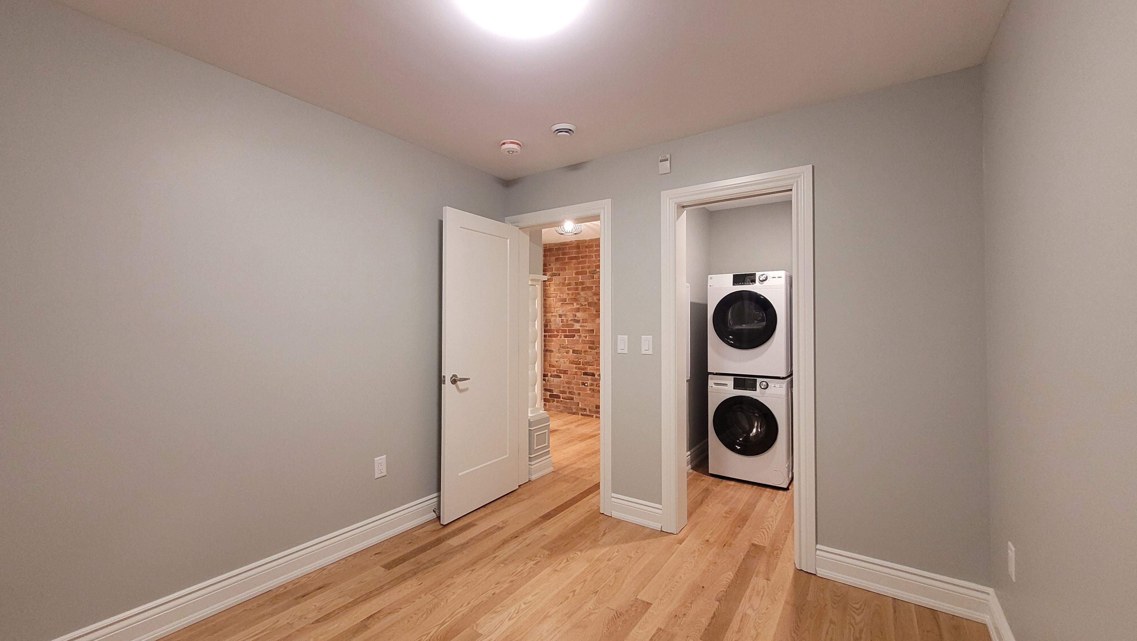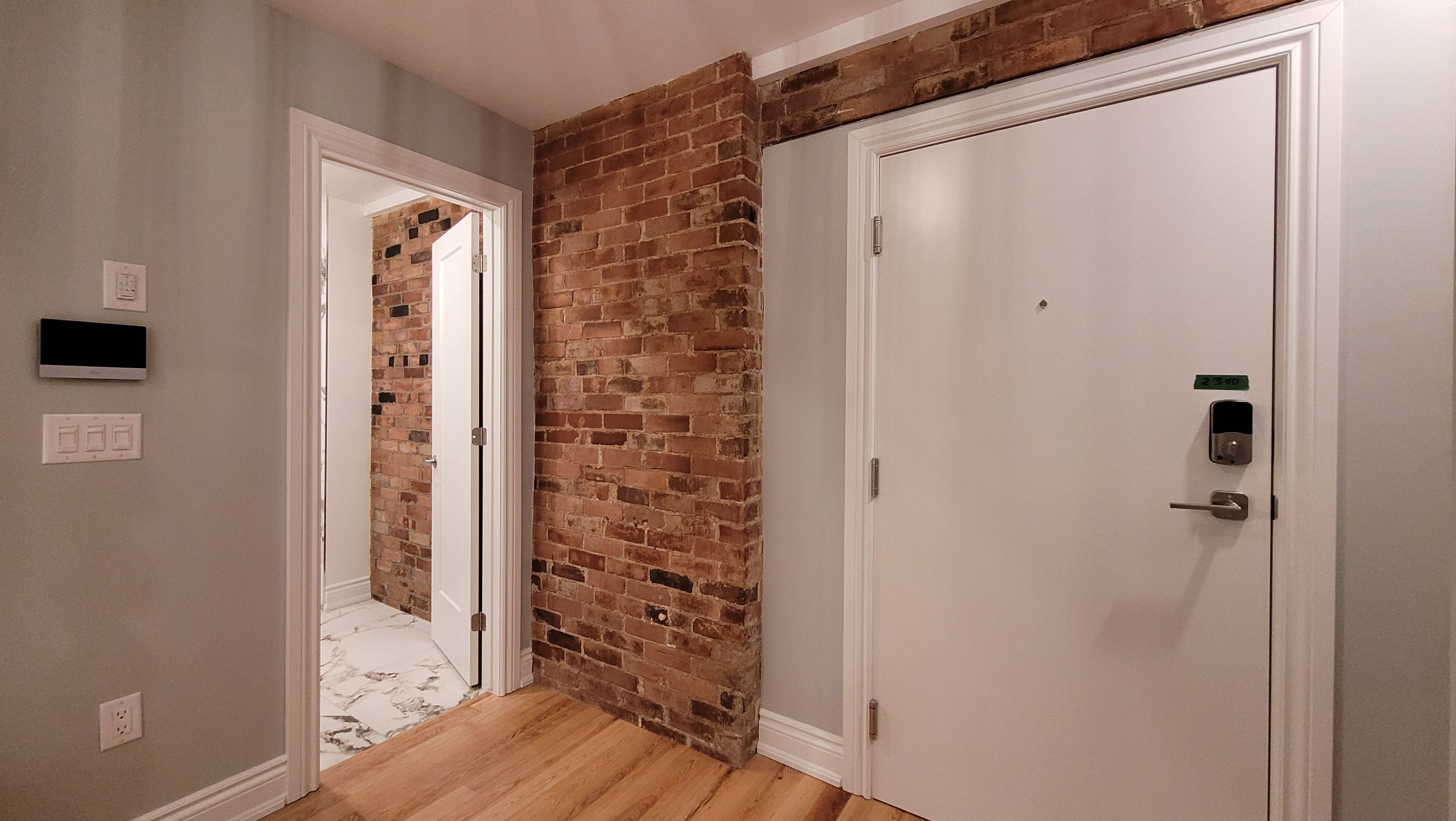 • Historic charm with original red brick accents in living areas.