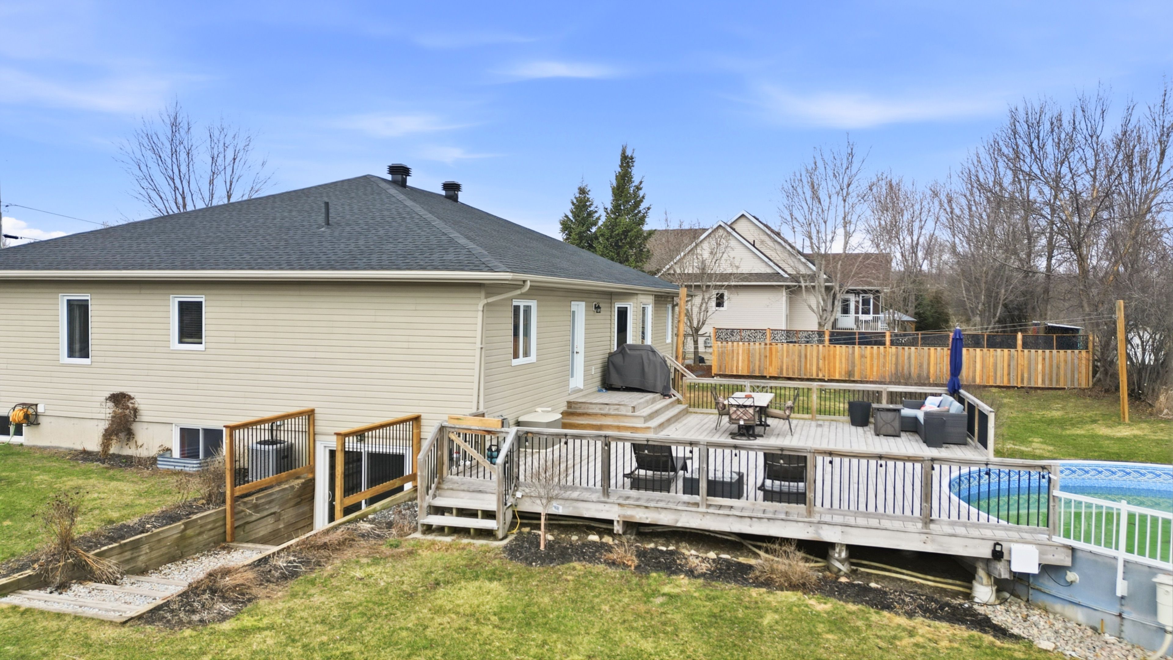 Nestled in one of perth's most sought-after natural gas estate subdivisions, this charming family bungalow offers the perfect balance of comfort and lifestyle. Located just minutes from downtown perth and highway 7, you'll enjoy the tranquility of country living with the convenience of nearby amenities. Set on a generous 1. 5 acre lot, the outdoor space is designed for relaxation and entertaining, featuring an oversized deck, a pool and a welcoming front porch-ideal for unwinding with a cold drink on a warm evening. Picture kids playing and biking through this friendly, family-oriented community while you take in the peaceful surroundings. Inside, the home boasts a seamless, functional layout with three bedrooms, including a private primary suite tucked away in its own wing complete with an ensuite. The fully finished walkout lower level is an entertainer's dream, featuring a bar, pool table, and shuffleboard-perfect for movie nights or hosting the big game. With the added bonus of a dedicated office, spare room, or gym space, this home truly has it all. Come see it for yourself and experience everything it has to offer.