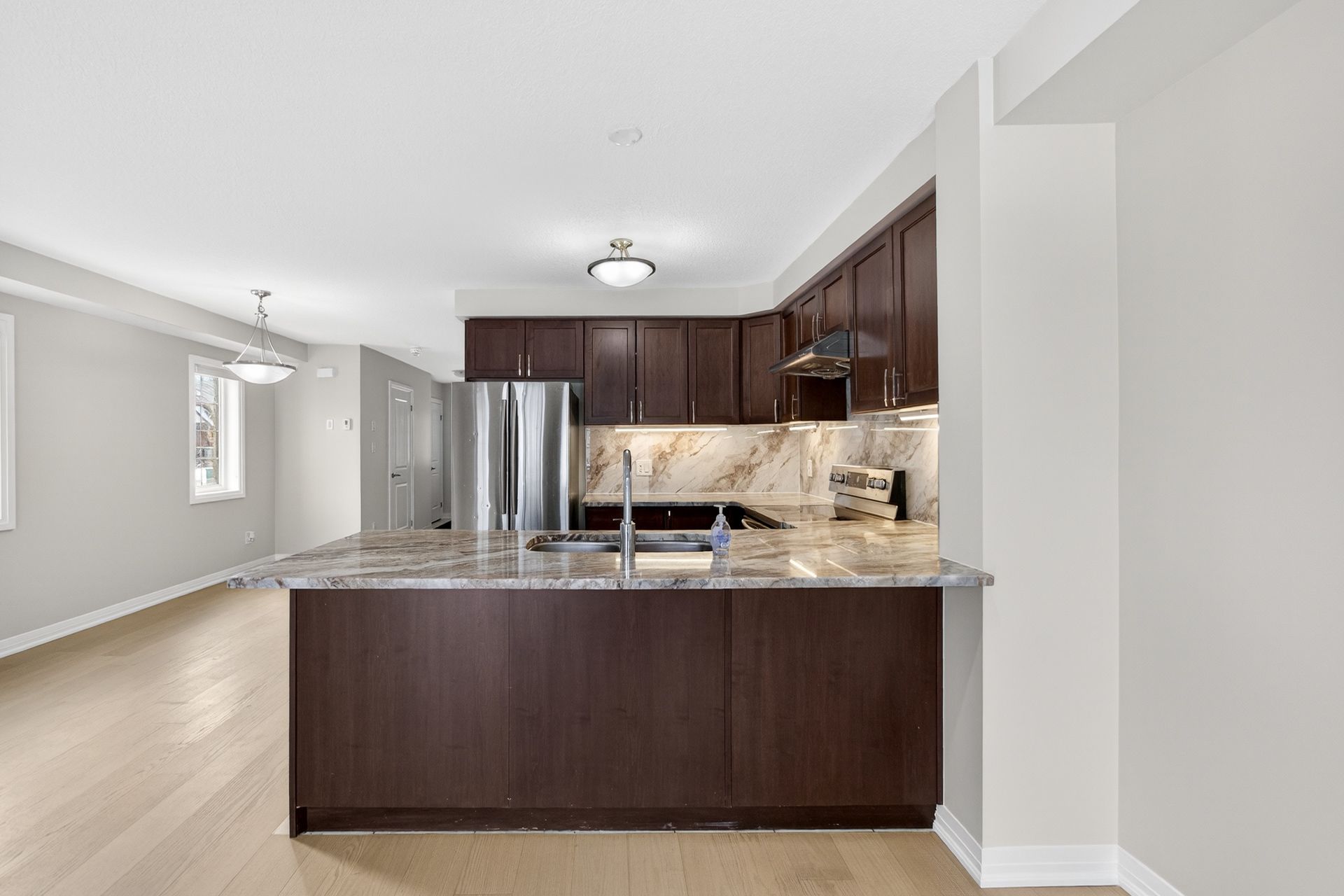 • Open-concept main floor with brand-new hardwood flooring and spacious kitchen.
