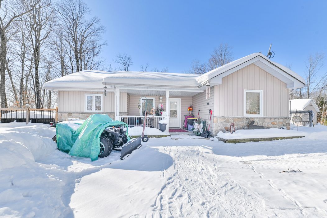 6. 5 acre private setting! Lovely country bungalow hidden in the trees on a nice park-like setting where you'll enjoy the peace & quiet. Cozy two bedroom home, features inviting front porch leading to open concept living area. Spacious living room with cathedral ceilings. Bright dining area with walkout to large deck facing south, plus separate sunroom area with 2nd walkout to deck. Good size kitchen with ample cupboards, updated counters & backsplash. Great space for entertaining. 2 good sized bedrooms, large main 4 pc bath, with access to utility room. Plus main level stackable washer/dryer included. This home is updated with efficient boiler, radiant in-floor heating throughout, hot water on demand. Plus added bonus of generator panel, never be without hydro. This stunning property is manicured with lots of gardens, two newer garden sheds for extra storage. Paved driveway with ample parking. Attention husbands! Treat your wife to this meticulously maintained home & treat yourself to your own man cave! Detached 26x20ft garage, insulated and great for storage or workshop. Room for all your toys. Fantastic location on a paved road only 6 km from the village of marmora, where you can enjoy restaurants and shops, medical centre and all the town amenities has to offer. Close to crowe lake, 30 mins to peterborough, 45 mins to belleville/401. This home is sure to impress and priced to sell! Value packed!