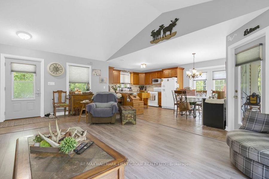 • Open concept living area with cathedral ceilings and great natural light.