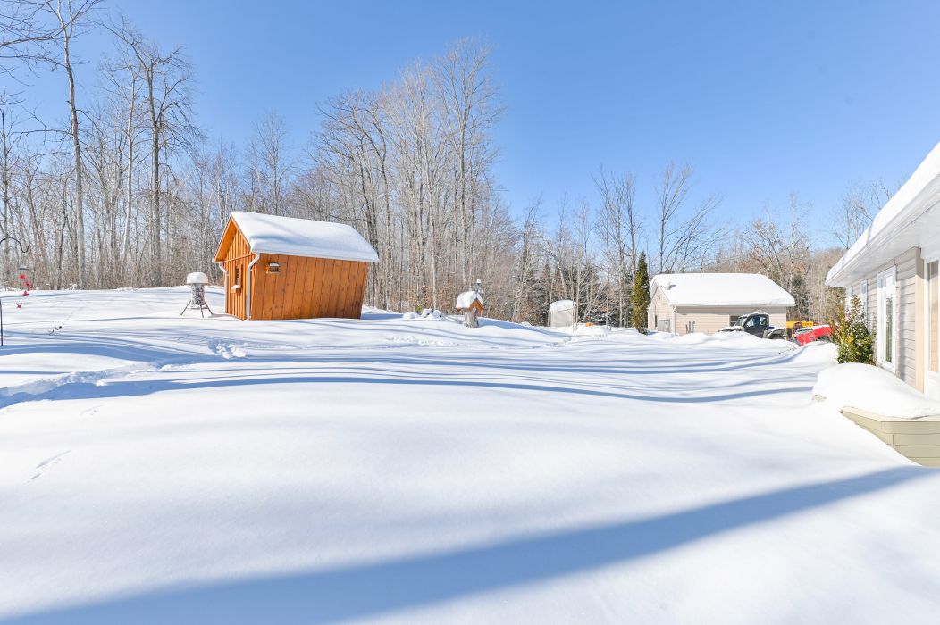 • Detached insulated garage offers ample storage and a workshop space.