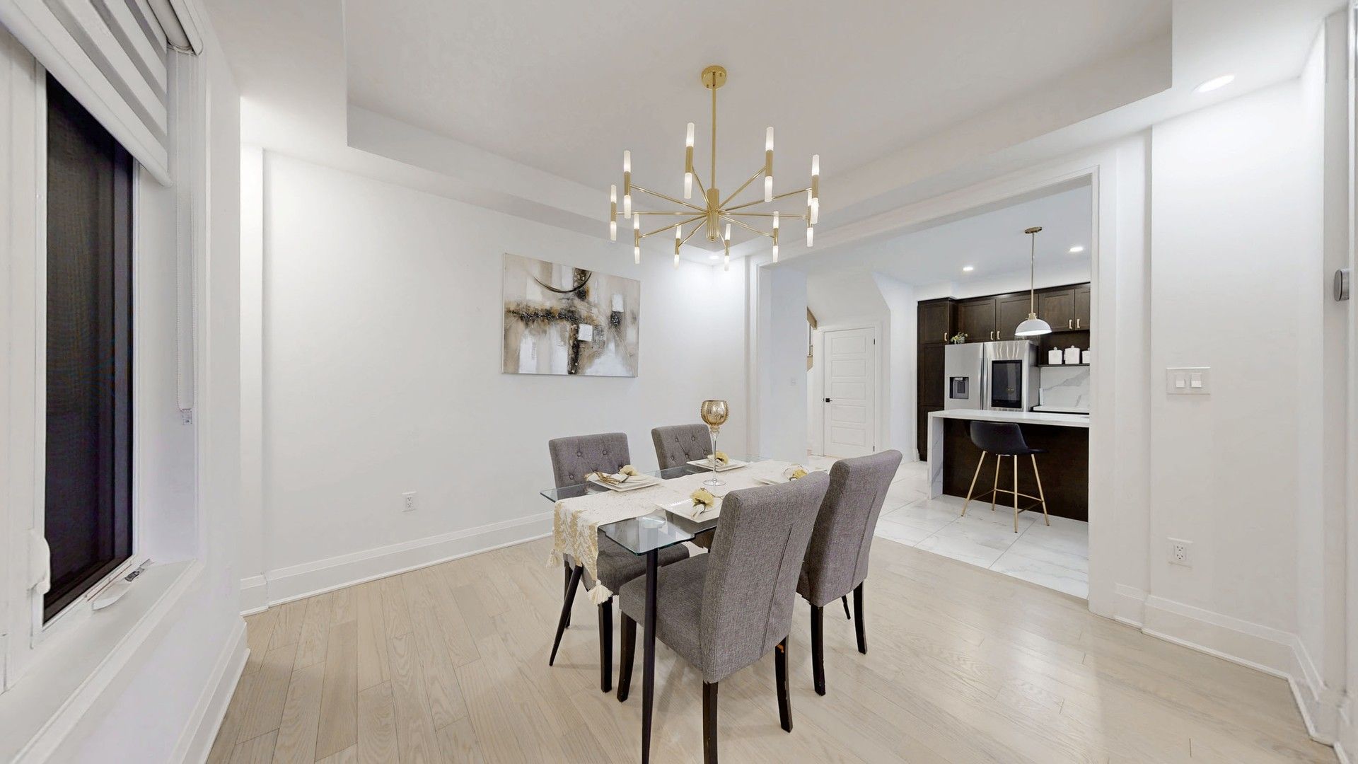Introducing mattamy's valleyview model with a captivating french chateau elevation. Main floor open concept dining, living and kitchen. Modern kitchen with stainless appliances. 9' foot ceiling and the second level boasts three bathrooms, including an expansive family room, ideal for accommodating larger families. Notable upgrades include 9-foot ceilings on both the main floor and second level, elegant 8-foot doors with black hardware, quartz countertops with a waterfall feature and backsplash, premium light fixtures, a distinctive accent wall, hardwood flooring throughout, calcutta tiles, wrought iron spindles on the stairs, enlarged windows onthe second level, a luxurious soaker tub, and numerous other upgrades. Nestled in pickering mulberry, a well-conceived master-planned community. Basement rented spearplay.