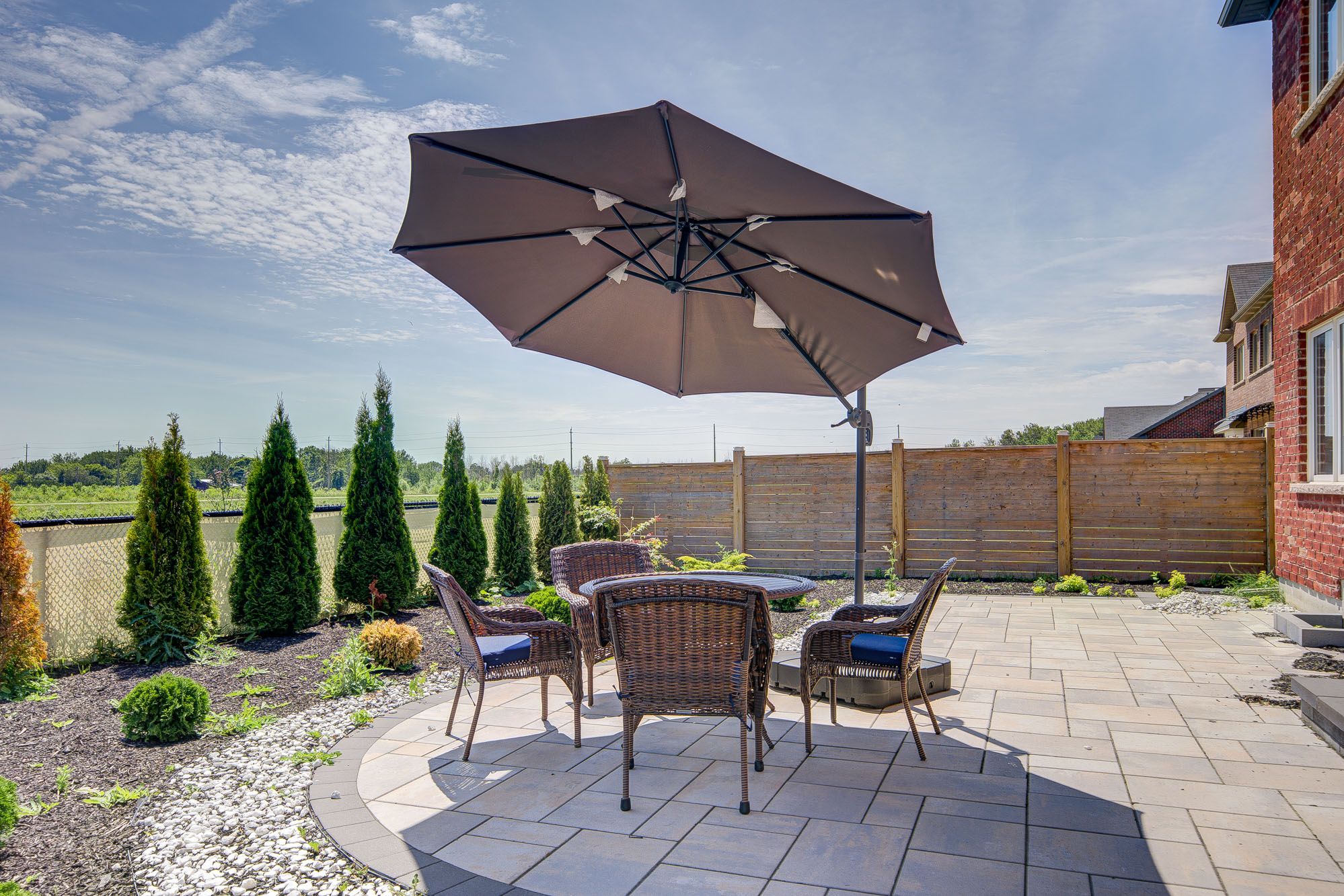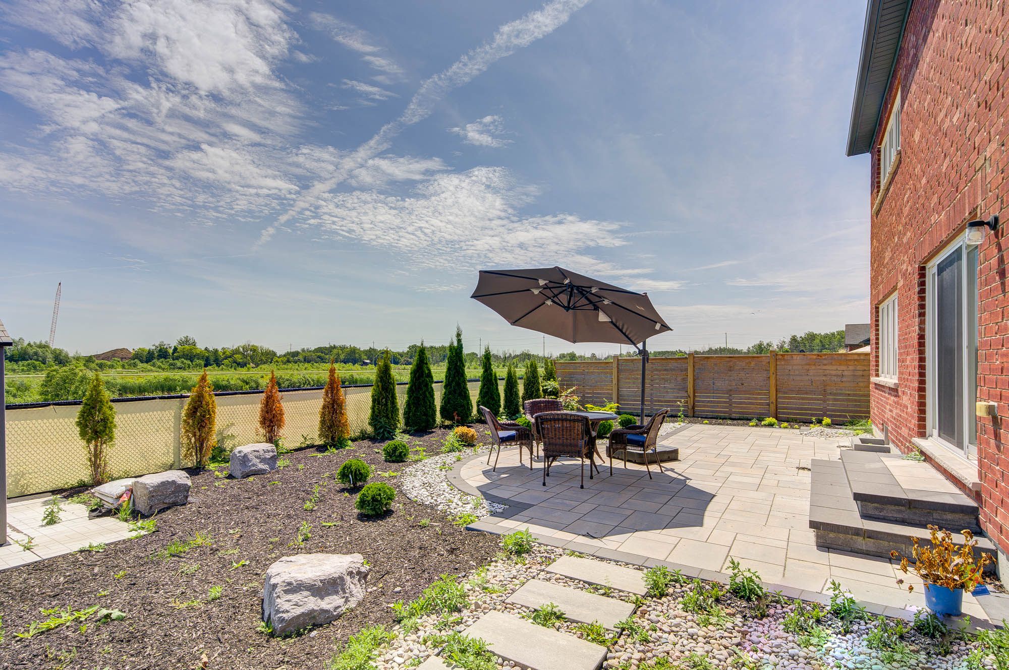 • Private backyard backing onto a tranquil ravine and pond for serene views.