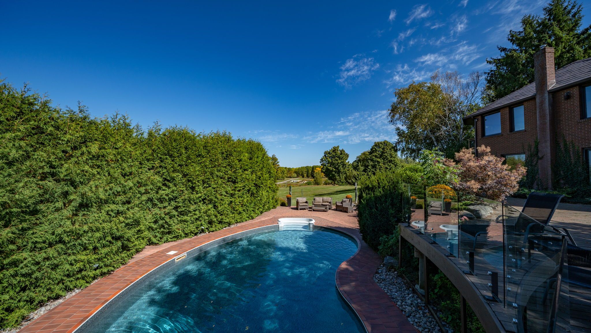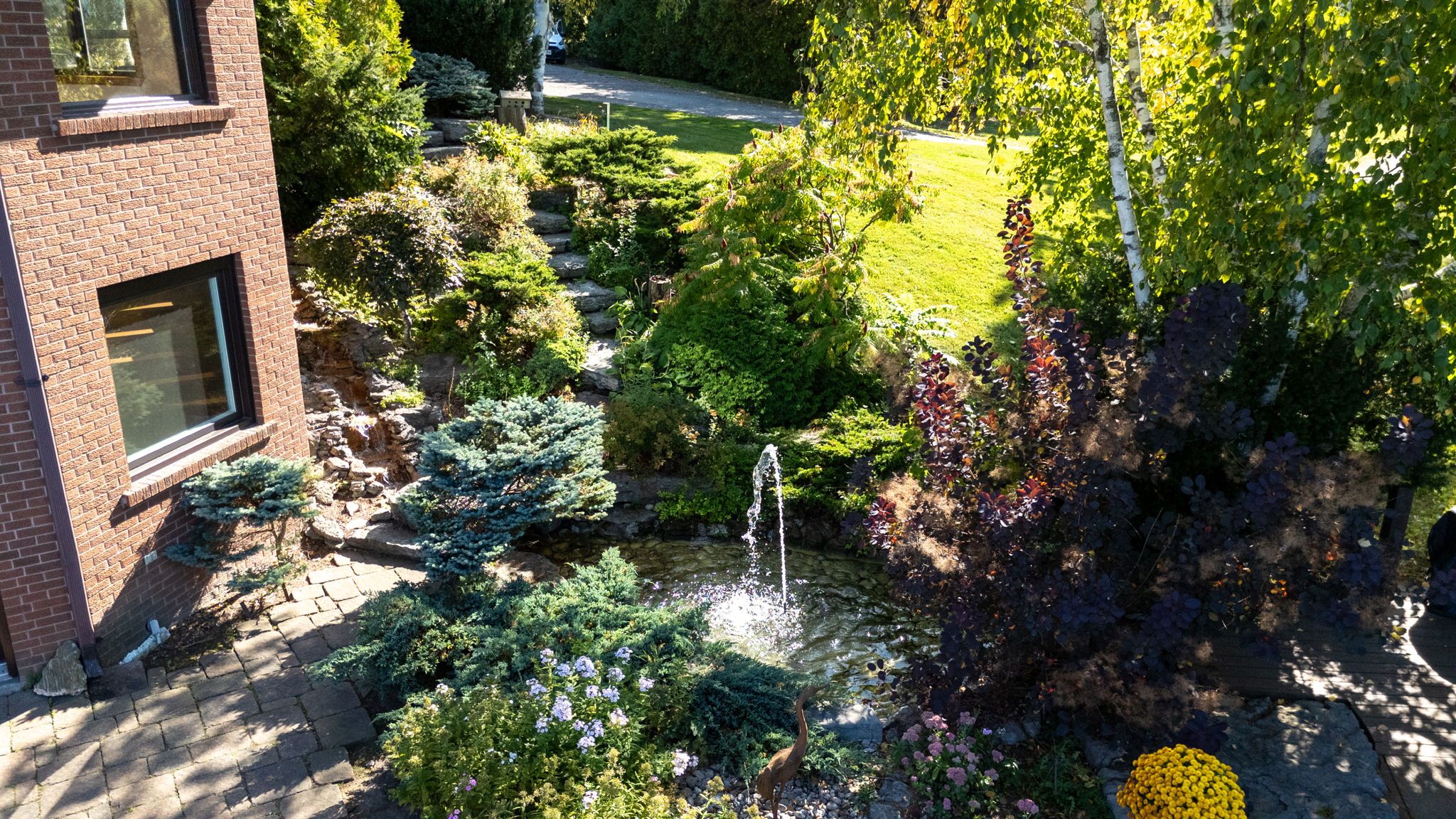 • Beautifully landscaped gardens featuring tiered waterfalls and an in-ground pool.