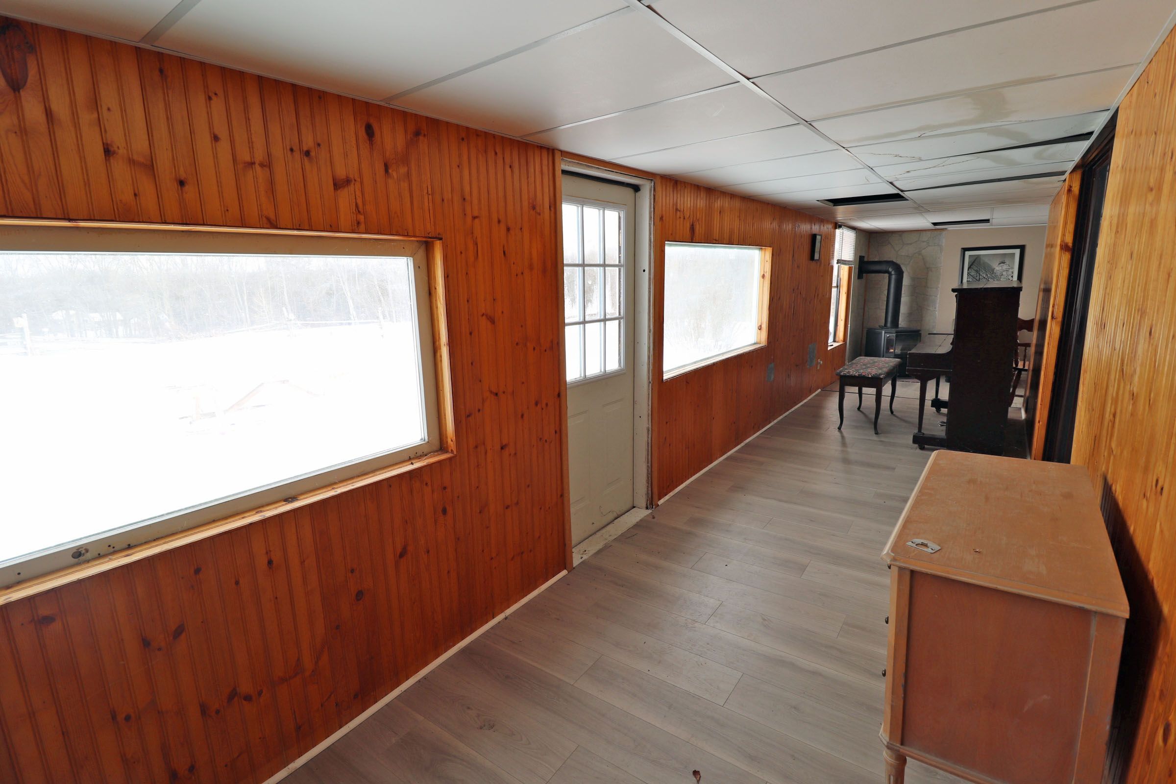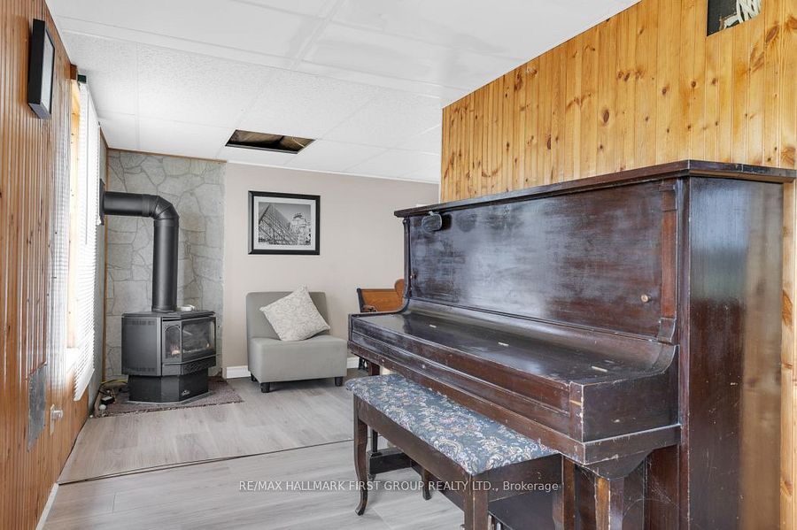 • Cozy living space with walkout to enclosed sunporch and propane fireplace.