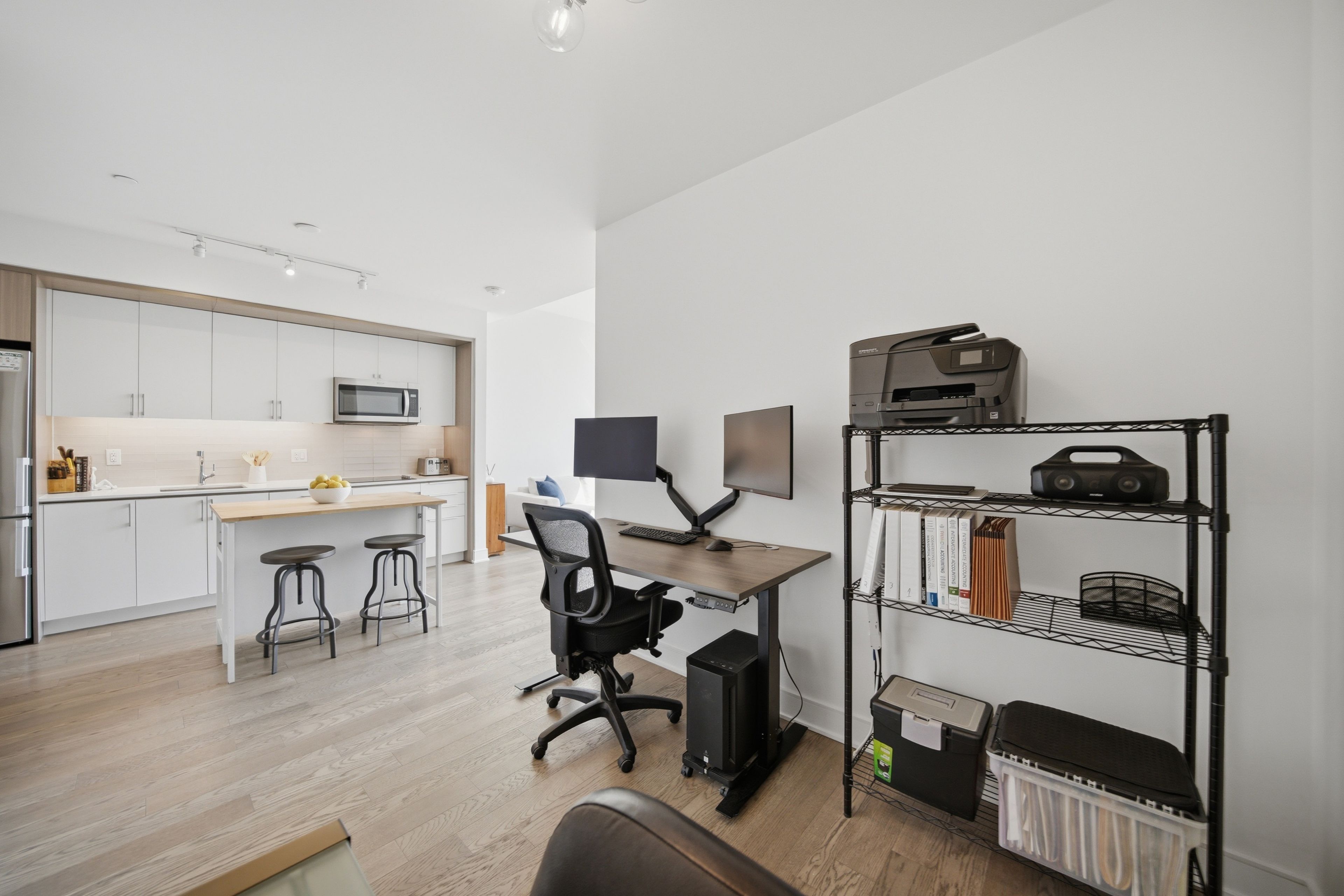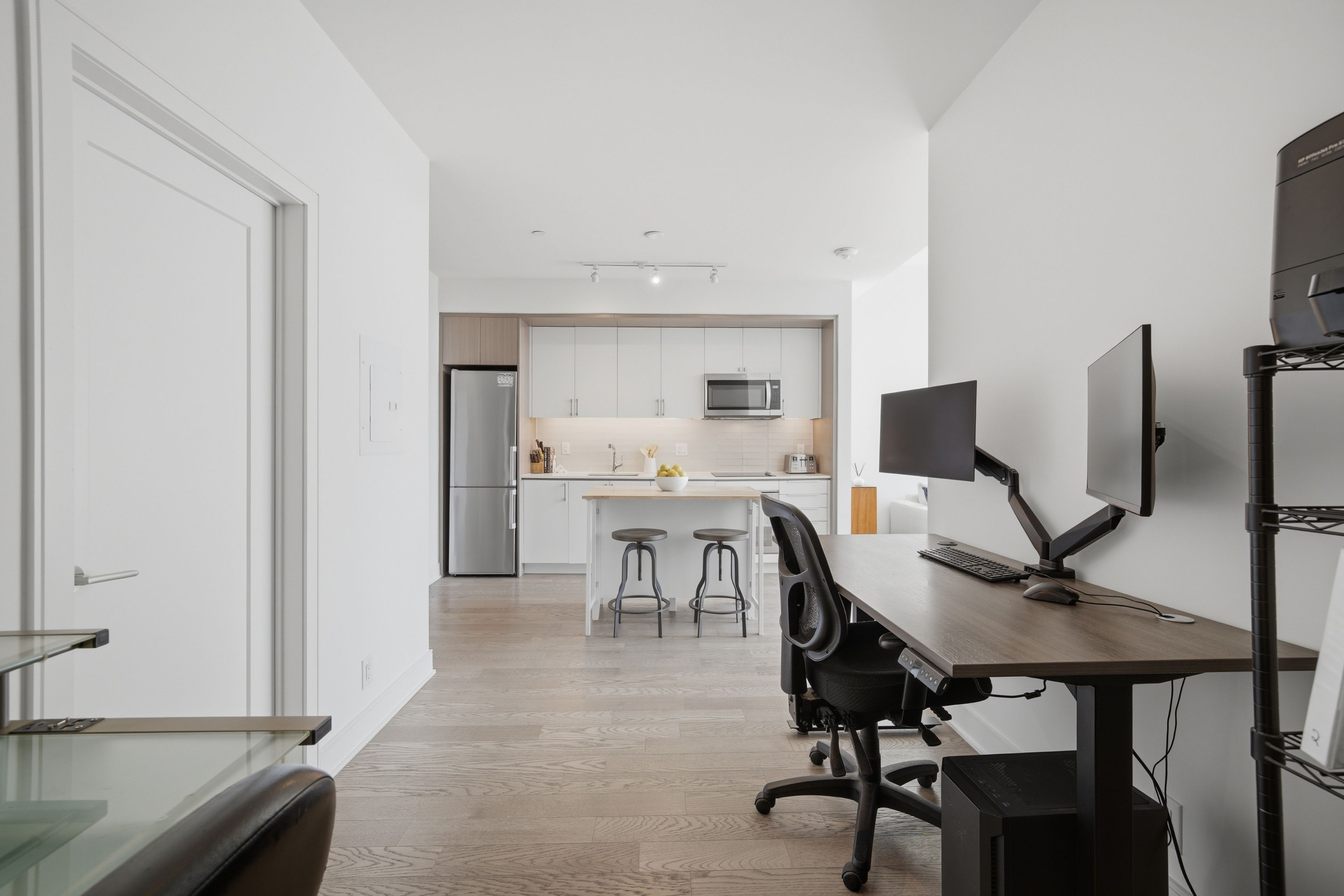 Welcome to penthouse living without the million-dollar price tag! Perched on the top floor of the craftsman, this bright south-facing suite offers a rare opportunity to enjoy the privacy, natural light, and elevated feel of penthouse-level living at a far more accessible price point. Overlooking the quiet courtyard below, the space feels peaceful and tucked away, while soaring 12-foot ceilings in the living room create an openness that's hard to find in this price range. Inside, 5-inch engineered hardwood floors run throughout, complementing a clean, modern interior designed for both comfort and function. The kitchen is equipped with integrated stainless steel whirlpool appliances and offers a practical layout that works just as well for everyday living as it does for entertaining. A separate den adds valuable flexibility for working from home, reading, or creating a dedicated space away from the main living area, and the suite is complemented by a modern 4-piece bath finished with premium kohler fixtures. Positioned on the penthouse level with no neighbours above, this is the kind of home that lives differently from the typical condo, and it offers exceptional day-to-day convenience, located just steps from the elevator and close to the underground parking spot. The craftsman is one of south mississauga's most architecturally distinctive and community-oriented residences, known for its frank lloyd wright-inspired design, beautifully landscaped courtyards, and premium amenities. Located in the heart of clarkson village, you're just a short walk to local cafés, shops, restaurants, and minutes from clarkson go for an easy commute downtown. Nearby highlights include jack darling park, rattray marsh, waterfront trails, and countless neighbourhood amenities that make this one of the city's most desirable places to call home. Suite 440 is a rare chance to experience penthouse living in one of clarkson's most sought-after buildings, for far less than you'd expect.