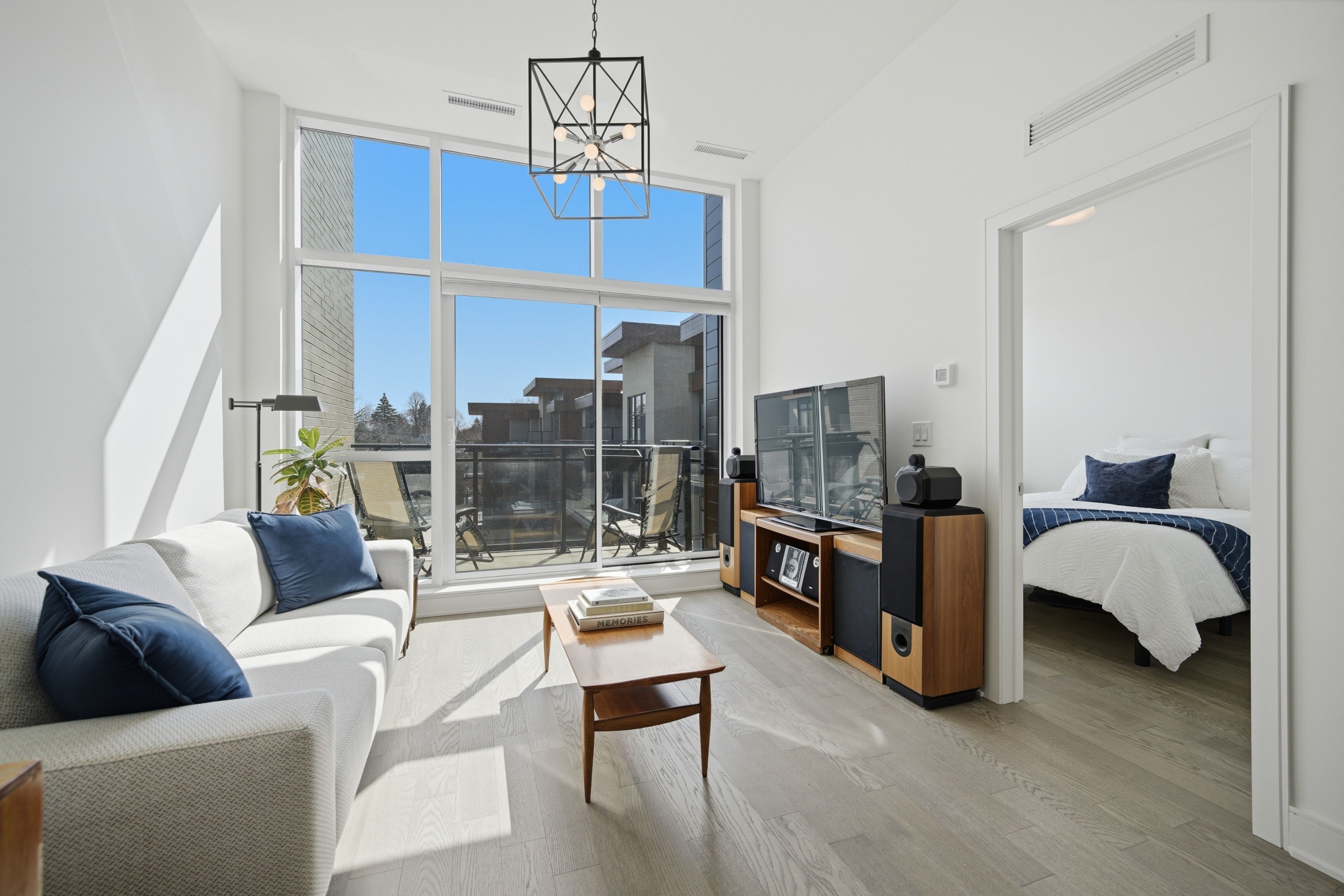 • Bright south-facing penthouse with peaceful courtyard views and privacy.