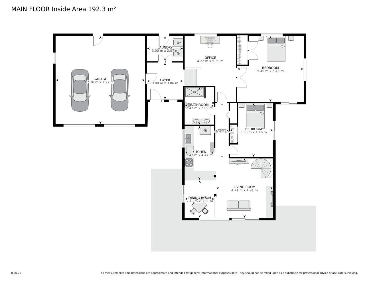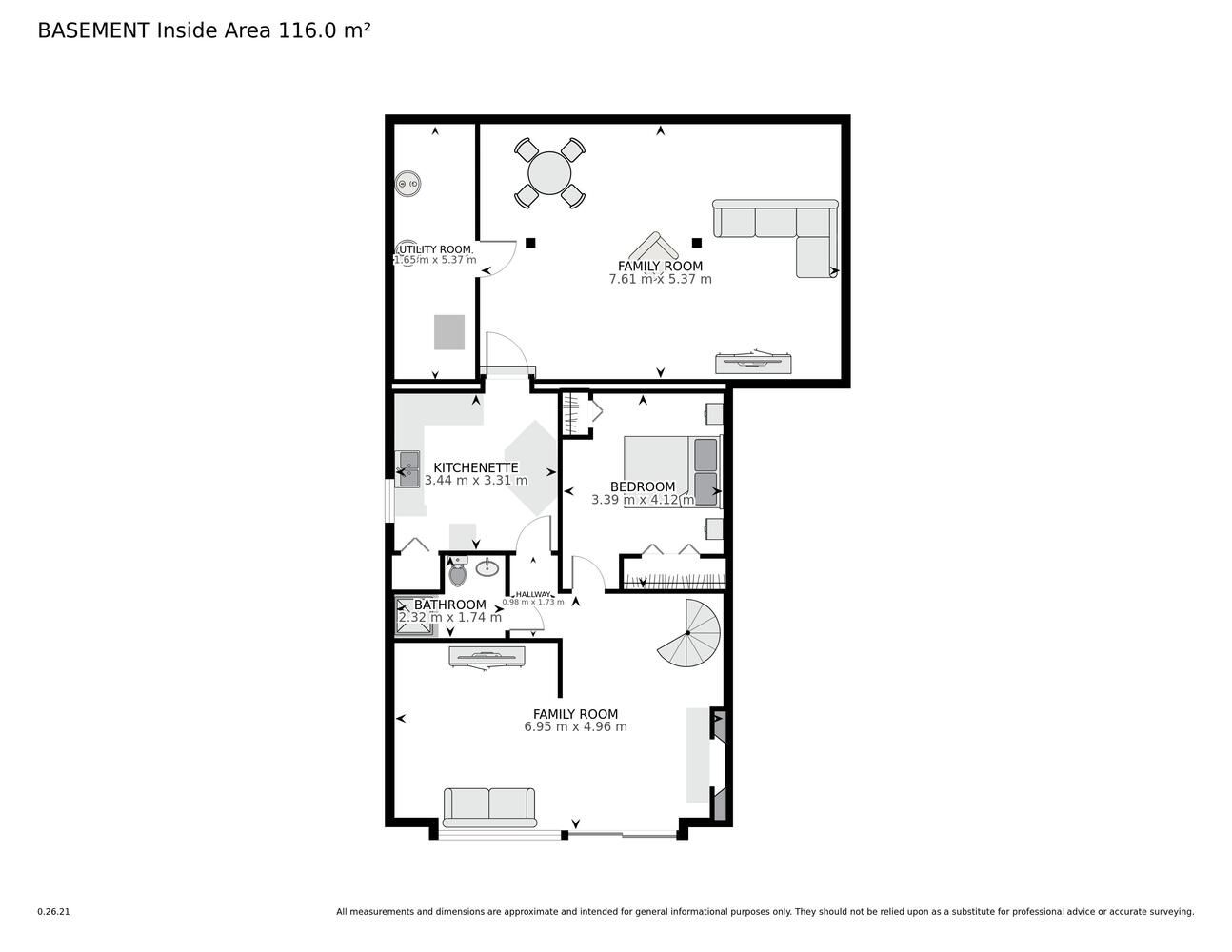 • Spacious 2+1 bedroom layout with a large primary bedroom.
