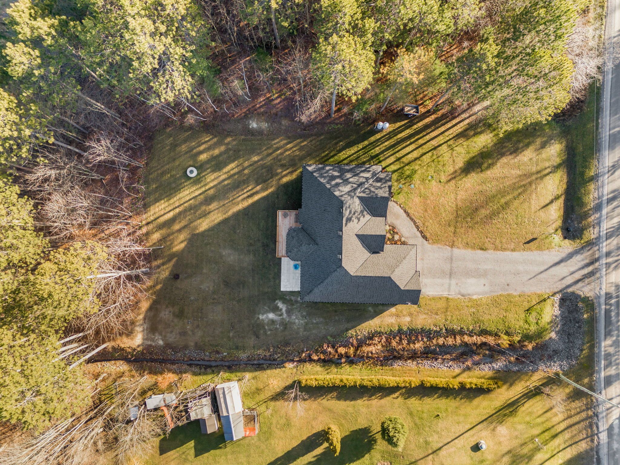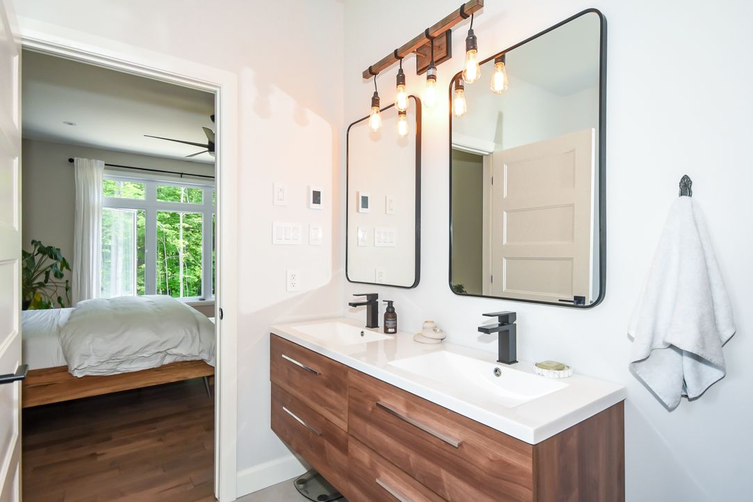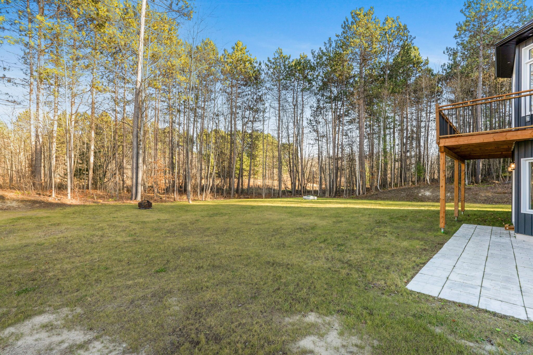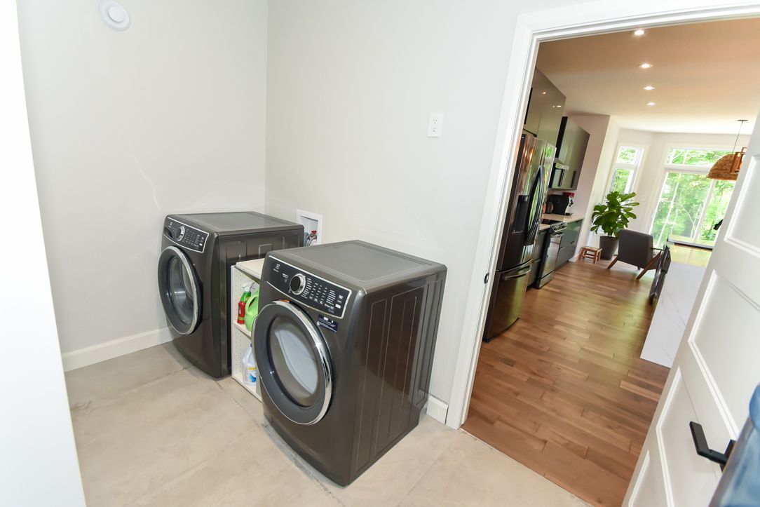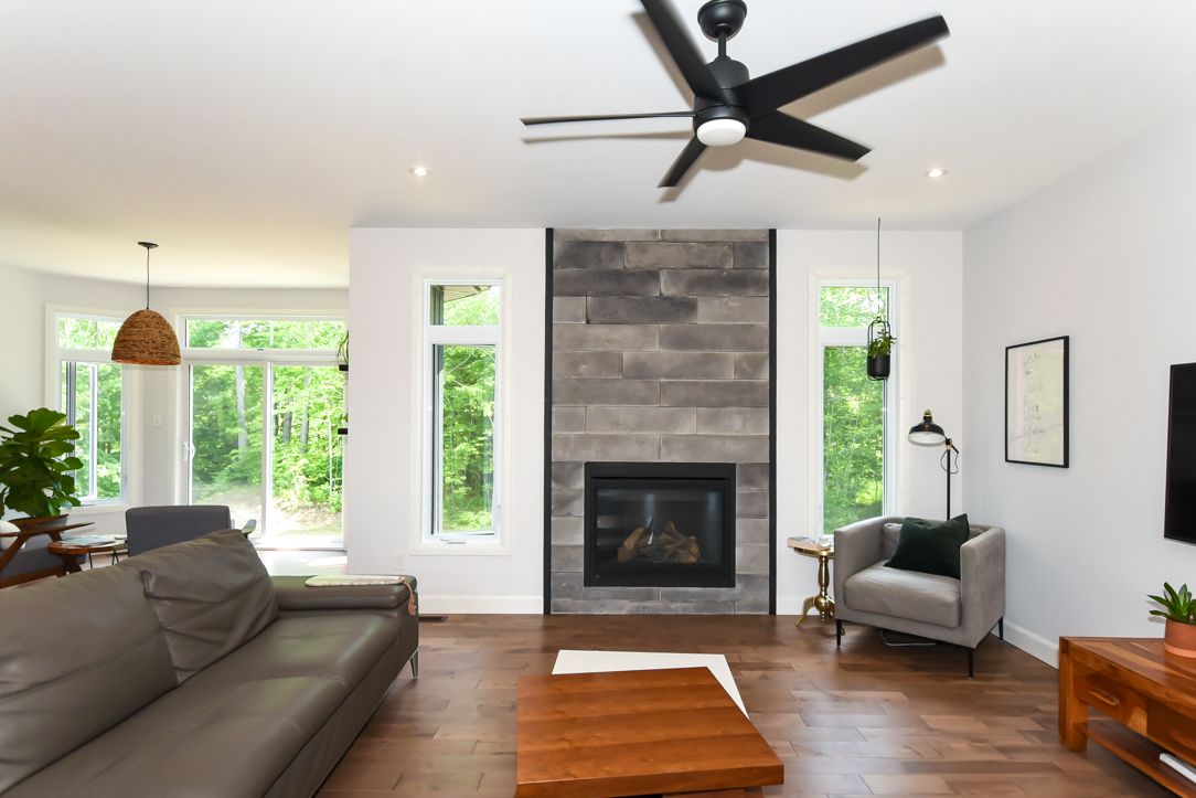 Welcome to your 2023 custom dual-living design home built ideally for in-law suite or rental income! This stunning home is thoughtfully designed for extended family living, featuring two full master bedroom ensuites, each with their own kitchen and living areas one on each level! Step into the inviting foyer adorned with rich maple hardwood floors, leading to a sleek, modern kitchen with custom cabinetry, waterfall quartz countertops, a pantry, and a large island with seating perfect for gathering leading to upper deck. The dining area boasts soaring 14' vaulted ceilings, while the spacious living room features an eye-catching gas fireplace for cozy evenings. The main floor master suite is a private retreat, complete with heated floors, double sinks, a standalone soaker tub, and a walk-in shower. Two additional bedrooms on this level are generously sized and separated by a full family bathroom. Downstairs, the bright walk-out level includes the second master suite with its own bathroom & walk-in closet, a quaint second kitchen, a dining and living area with a second gas fireplace, a den, and ample storage space. Enjoy outdoor living, relaxing and entertaining in the private backyard offering; a shaded patio, firepit area, and mature trees backing onto neighboring property with cobb's lake creek. Additional highlights: high-speed bell fibe internet. Extra insulation for enhanced energy efficiency. Charming small town community with top rated elementary school & park area. A rare and versatile home perfect for multi-generational families or those seeking income potential with in-law capabilities. Don't miss your chance to view this one-of-a-kind property! 24-hour irrevocable on all offers.
