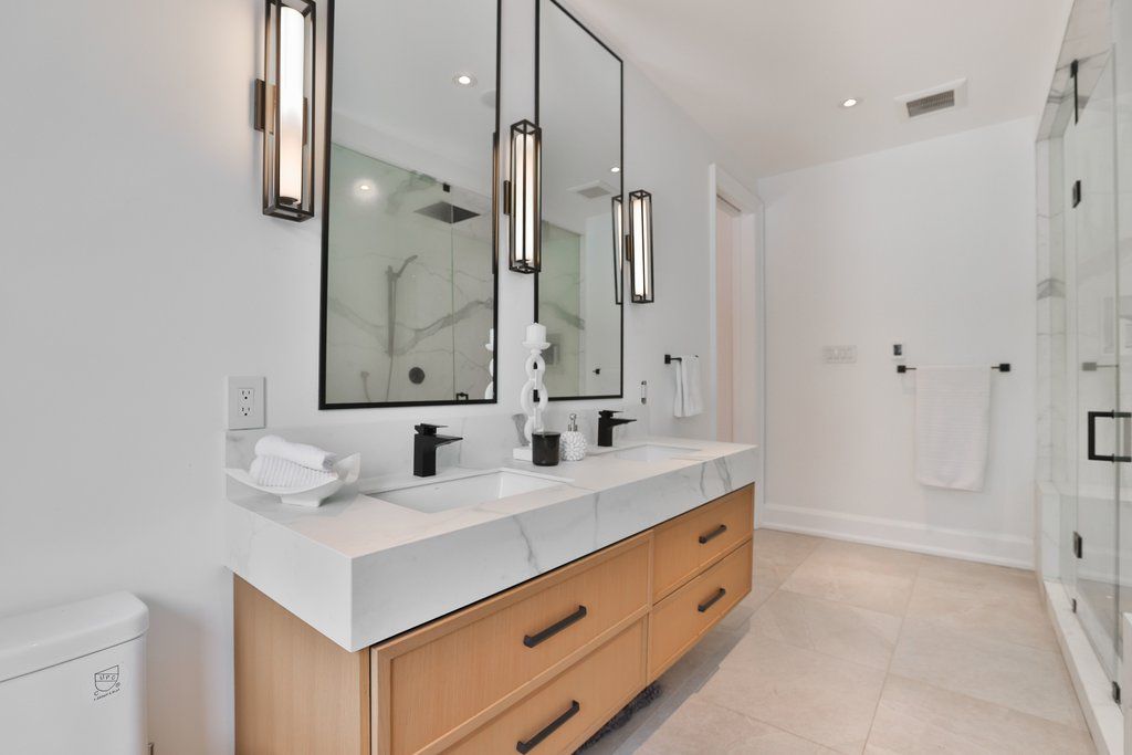 Welcome to 1579 trotwood avenue, a distinguished 2-storey residence nestled in the heart of prestigious mineola. Set on a pvt 66 x 132 ft fully fenced lot and offers approx 5,905 sqft of refined living space and features 6 bdrms & 6 baths. The main lvl showcases soaring 2-storey ceilings in the living & family rooms, creating a dramatic sense of openness & architectural elegance. White oak hdwd flooring flows throughout, while expansive european-style windows flood the interiors w/ natural light. A striking concrete feature wall & sleek electric f/p anchor the family room, delivering a refined yet inviting atmosphere. The designer kitchen is both stylish & functional, appointed w/ quartz countertops, a large centre island, soft-close cabinetry, jennair s/s appls & a convenient servery connecting to the dining area. Oversized windows & dual patio doors overlook the spacious bkyd & b/i deck, offering endless potential to create your dream outdoor retreat. A versatile main floor bdrm w/ a 3-pc ensuite provides ideal space for guests, in-laws, or a private home office. Upstairs, the luxurious primary suite serves as a serene retreat featuring a w/i closet & a finished spa-inspired ensuite. 3 addnl generously sized bdrm each offer their own pvt ensuites, ensuring comfort & privacy for every family member. Convenient upper-level laundry adds everyday ease. The fully finished lower lvl expands your living space w/ a large rec area, additional bdrm w/ ensuite, home gym, stylish bar w/ blomberg appls, dedicated playroom or flex space & abundant storage. A walk-up entrance enhances functionality & future potential. Located close to mentor college, mineola public school, cawthra park secondary school, parks, golf, lakefront trails, trillium hospital & qew access, this exceptional mineola home delivers refined living in a truly family-friendly neighbourhood. A rare opportunity not to be missed.