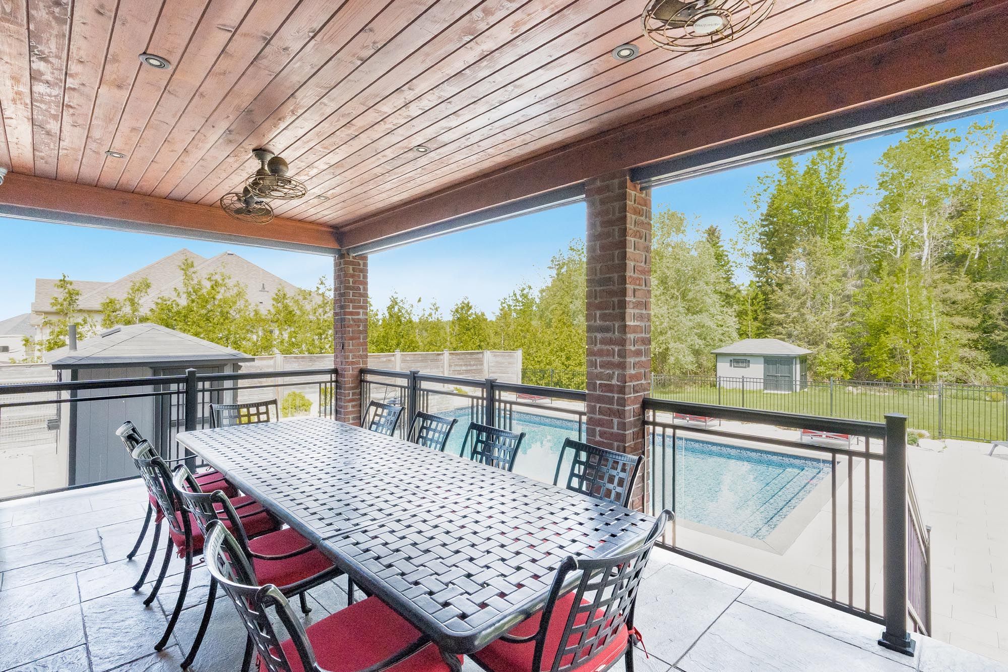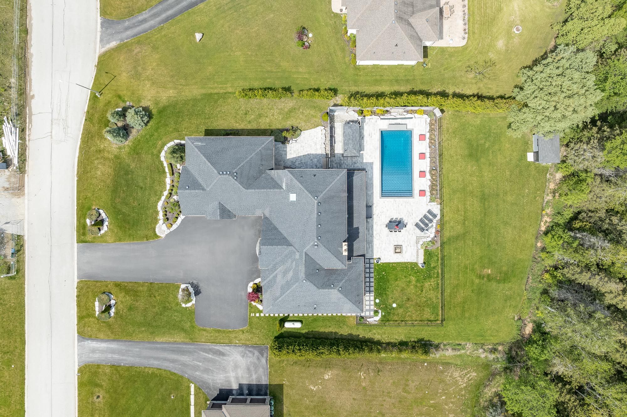 Top 5 reasons you will love this home: 1) executive, custom-built bungaloft in an exclusive estate neighbourhood, perfectly positioned and backing onto greenspace for ultimate privacy 2) exquisite attention to detail and design with coffered ceilings, wainscoting throughout, and high-end finishes at every corner including a sonos speaker system running throughout the home including the exterior as well 3) extensive landscaping featuring a sparkling inground saltwater pool with a new liner, a convenient outdoor bathroom, a covered concrete porch, an inground sprinkler system, an e collar dog fence, and an abundance of tranquility for outdoor relaxation or entertaining 4) opulent primary suite boasting two oversized closets and a spa-like ensuite, thoughtfully designed for indulgent relaxation 5) loft showcases a media room, while the impressive seven-car garage features a lift, offering endless possibilities for storage, entertainment, or a dream workspace. 4,578 sq. Ft. Plus an unfinished basement.