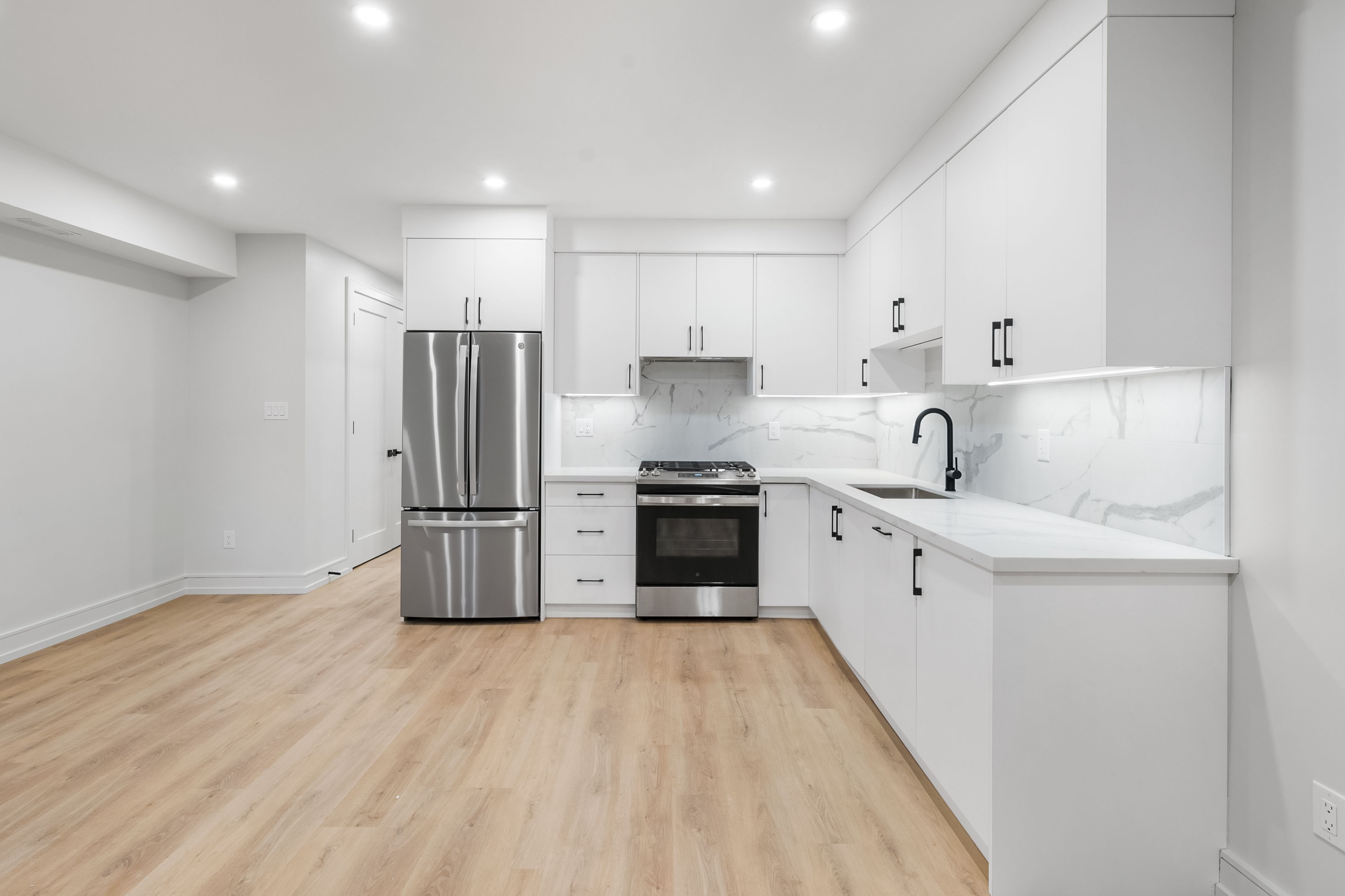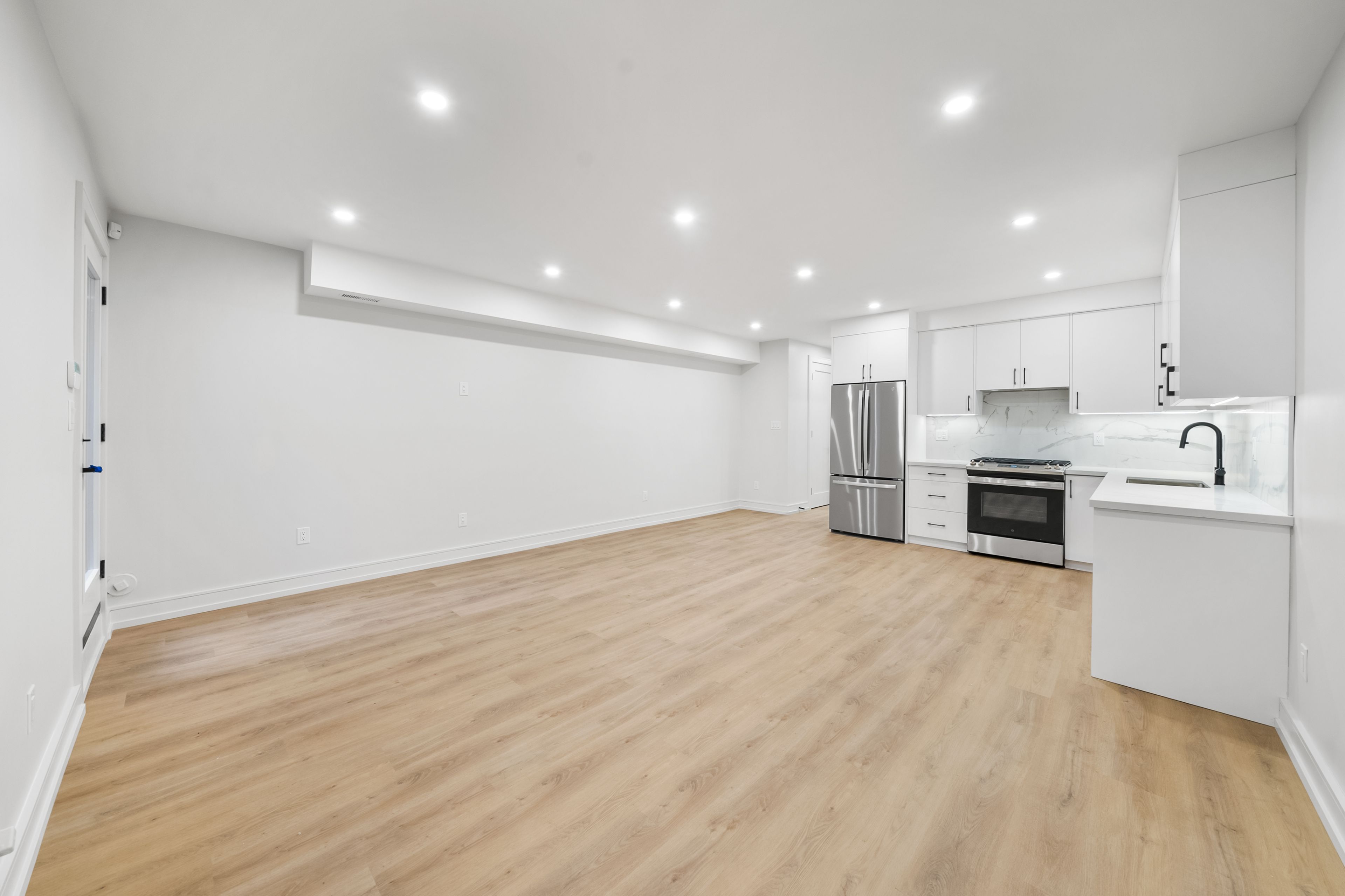 • Open-concept layout with modern kitchen and full-sized appliances.