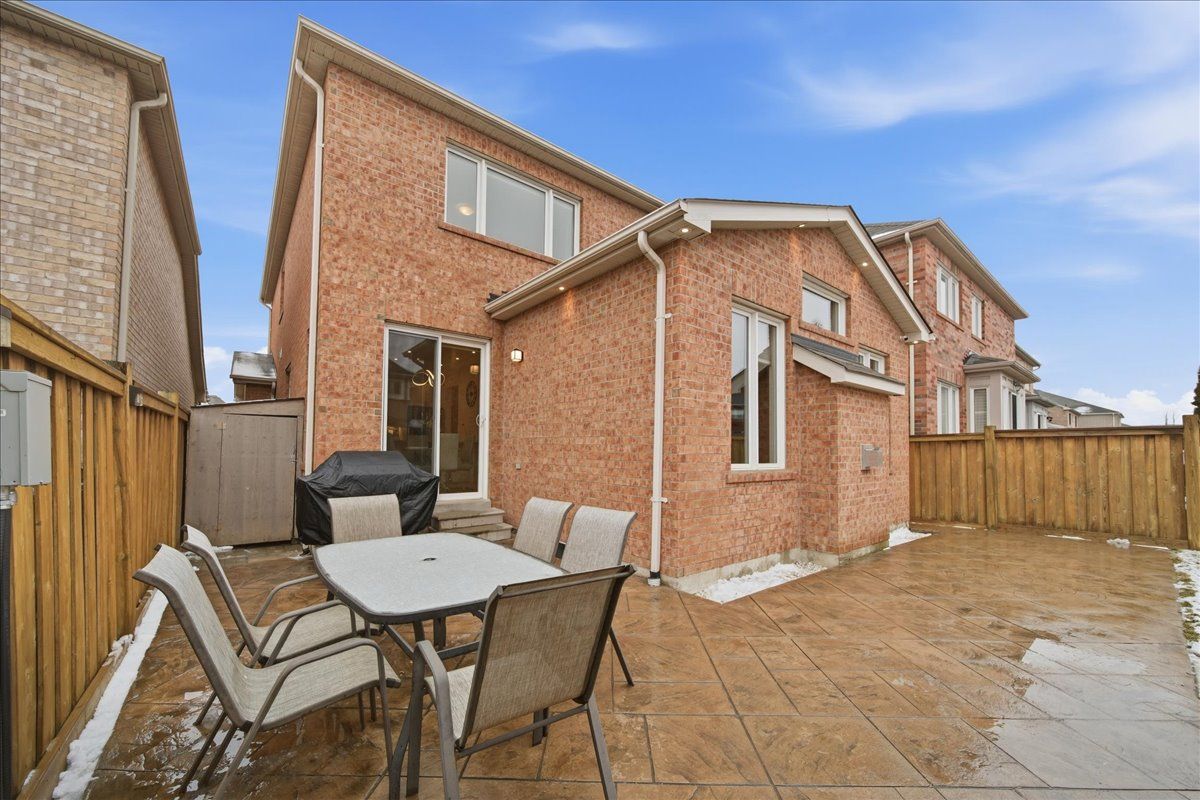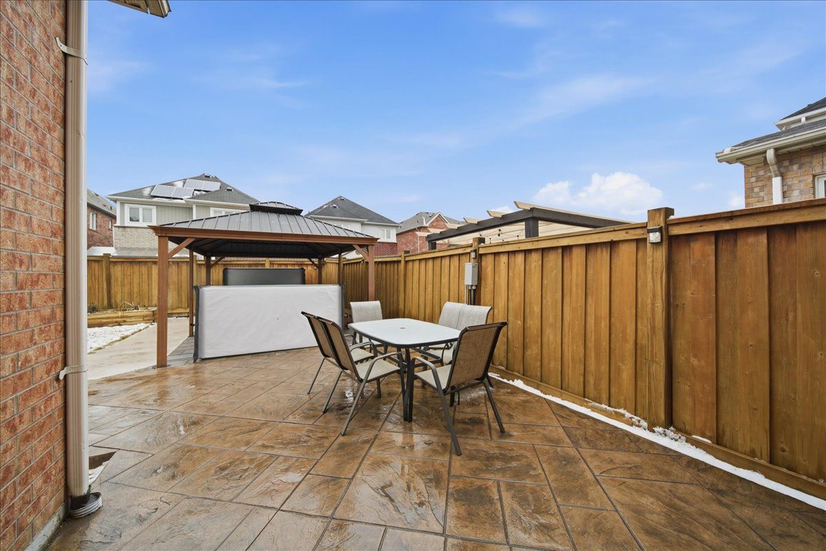 • Private backyard with stamped concrete and interlock driveway for outdoor enjoyment.