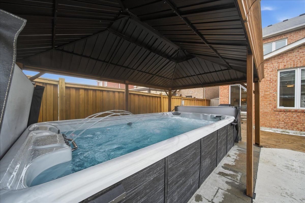 ** open house sat 2-4pm ** stunning upgraded detached home with swim spa in the heart of bradford! Welcome to this beautifully maintained 2-storey detached home located in one of bradford's most desirable family-friendly neighbourhoods. This exceptional property offers the perfect blend of comfort, style, and year-round entertainment, featuring a rare 5-ft deep semi-inground swim spa, professionally installed with landscaping in 2022 - ideal for relaxing, exercising, or entertaining in every season. This turnkey home showcases over $200,000 in upgrades and improvements, including refinished hardwood flooring (2024), pot lights throughout (2022), fresh paint in most areas (2024-2025), and updated kitchen (2025) with premium appliances, the bright and functional layout offers spacious principal rooms and modern finishes throughout. The fully finished basement adds excellent versatility, featuring a newly added kitchenette (2025), making it perfect for extended family, in-law suite potential. Step outside to your private backyard retreat with stamped concrete, interlock driveway (2022), refinished and waterproofed fencing (2025), and the highlight of the home - a luxurious artesian ep15 swim spa, approximately 5 feet deep, with seating for 5 and space for up to 10 adults, hot-tub jets, bellagio-style fountain feature, and colour-changing underwater lighting. Additional features include: epoxy garage floor (2023), insulated high-efficiency garage door (2022), baseboard heater and exhaust ventilation in garage, lockable cast-iron side entrance gate, smart light switches (app-controlled, included) newer washer & dryer (approx. 2021). Located within walking distance to schools, parks, shopping, and transit, this move-in-ready home offers incredible value, thoughtful upgrades, and a backyard oasis you won't find anywhere else.