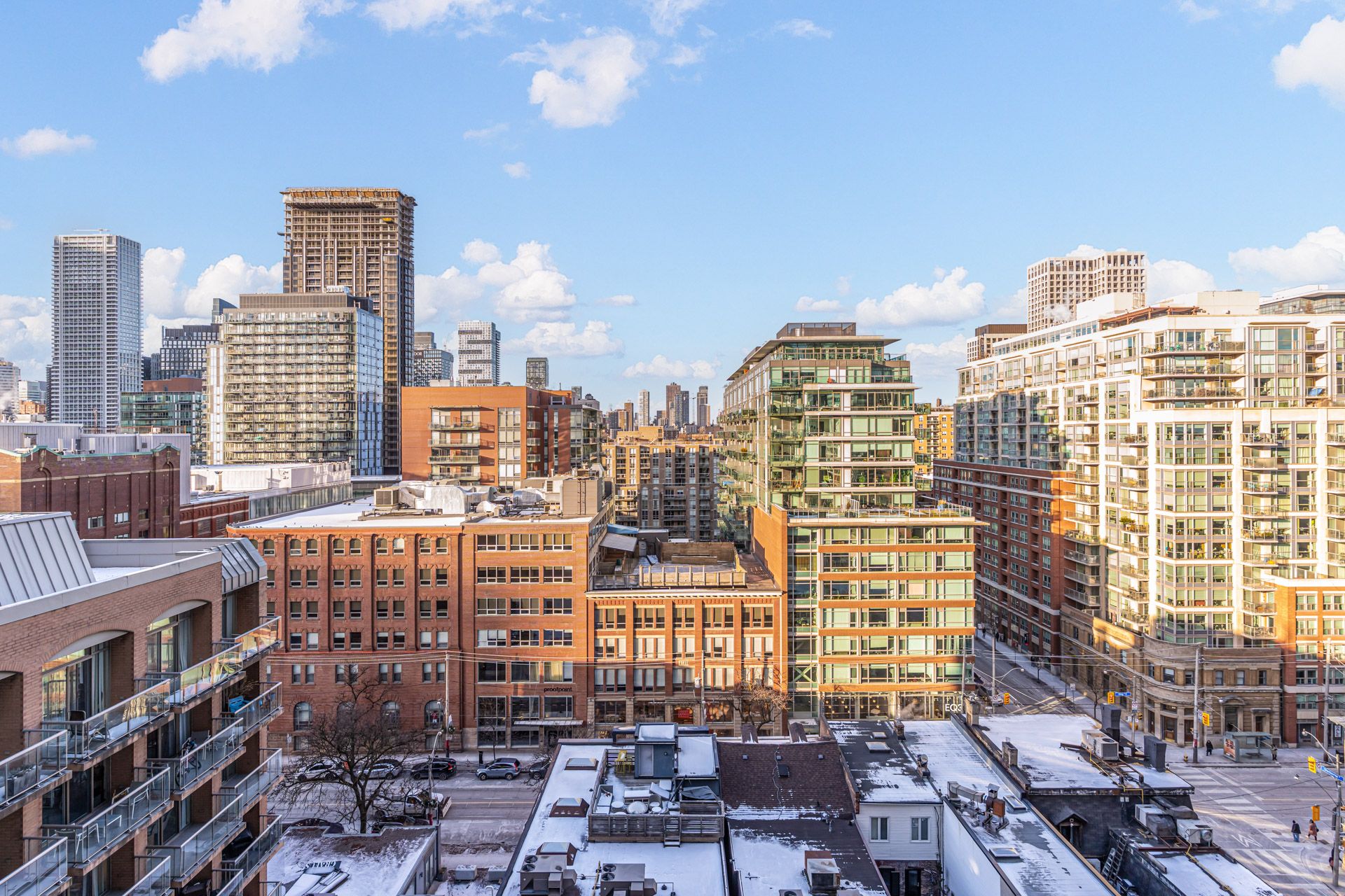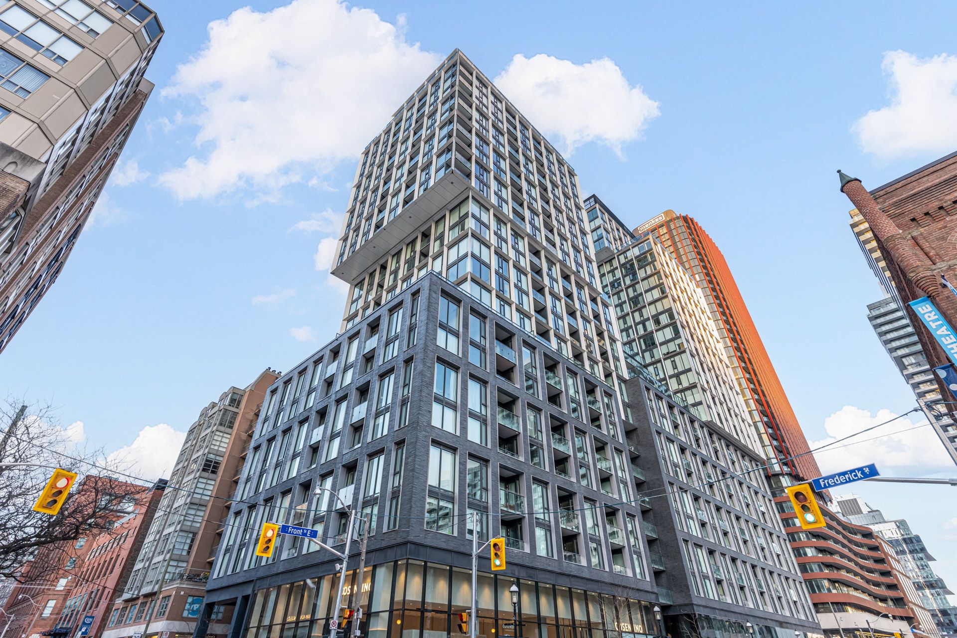 Welcome to st. Lawrence condos - modern, stylish living in the heart of downtown. This upgraded suite shines with a sleek kitchen featuring a centre island, floor-to-ceiling windows, and two walkouts to an extra-large balcony from both the living room and bedroom, offering stunning unobstructed north/west views. Large primary suite with custom closets . Includes a locker and access to excellent building amenities. 24-hour security, rooftop outdoor pool, gym, party room, and guest suites. Steps to st. Lawrence market, the distillery district, waterfront, financial district,george brown, ttc, union station/up express, top dining, shopping, and more.