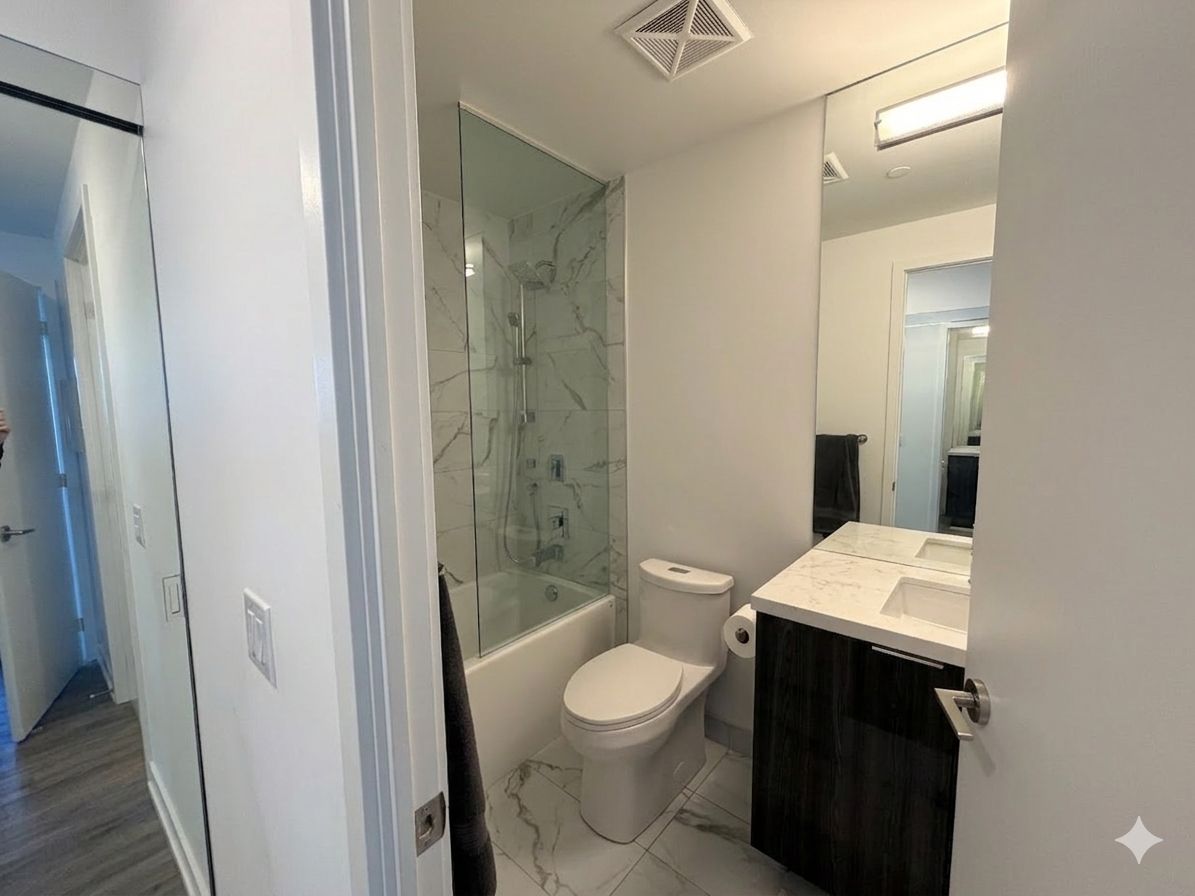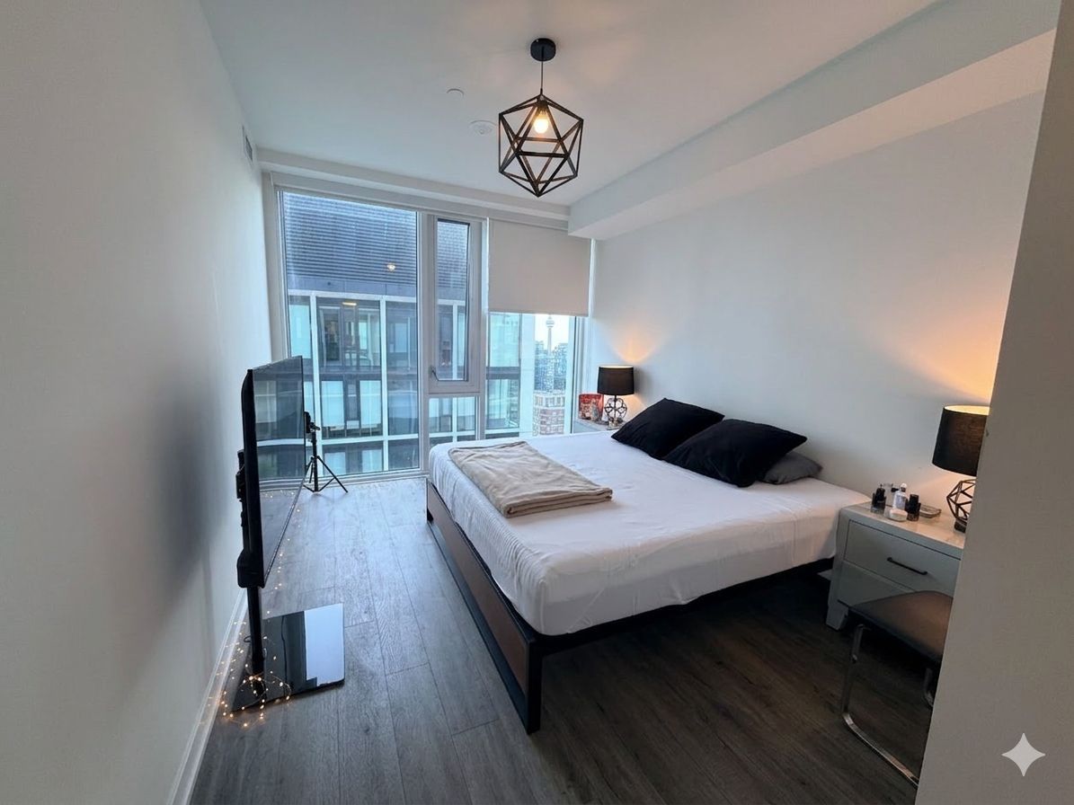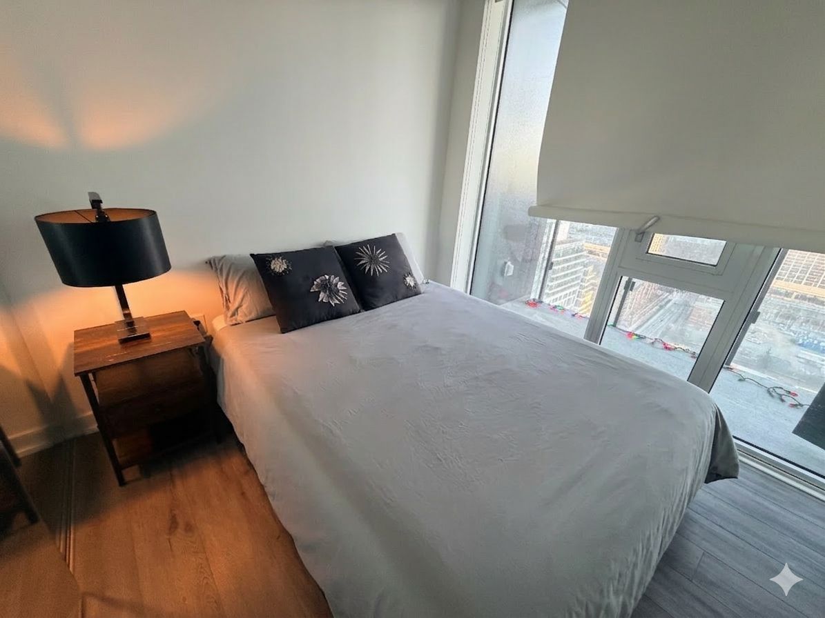 Exceptional fully furnished corner unit with two spacious bedrooms and a functional layout, offering breathtaking unobstructed city skyline views. The wrap-around exposure fills the suite with abundant natural light throughout. Bright open-concept living and dining area perfect for relaxing or entertaining. Internet included; tenant to pay electricity. Prime downtown location just steps to union station, st. Lawrence market, the financial district, george brown college, u of t, and an incredible selection of shops, restaurants, cafés, and nightlife. A rare opportunity to lease a premium corner suite in one of downtown toronto's most sought-after neighbourhoods.