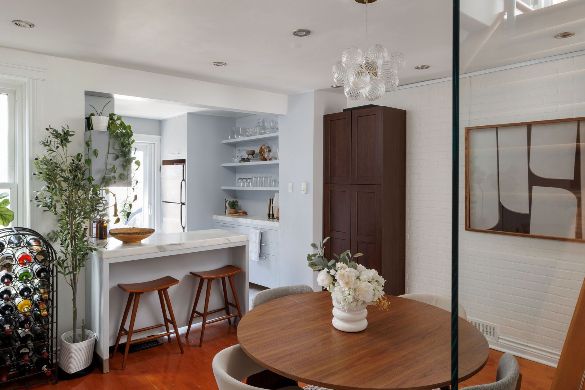 Welcome to 158 galt avenue - a charming leslieville townhome tucked away on a quiet, tree-lined dead-end street in one of toronto's most vibrant east end communities, known for its true neighbourhood feel. This warm and inviting home showcases beautiful hardwood floors and a striking modern glass-partitioned staircase. A character-rich exposed brick wall and gallery-style photo rack add personality and charm, creating a perfect blend of classic and contemporary design. The thoughtfully updated kitchen features marble countertops, a stylish backsplash, under mount sink, and brand new appliances including a new oven, convection microwave, and dishwasher. Walkout to your private, fully fenced backyard oasis, complete with enhanced landscaping including additional decking, patio stones, and raised garden beds - ideal for entertaining or relaxing outdoors. Upstairs and down, the home offers functional living space, including a finished basement rec room perfect for a media lounge, home office, or play area. Curb appeal shines with beautifully landscaped front gardens featuring periwinkle, tulips, and hostas, while major mechanical updates - including a new roof, new furnace, and owned hot water heater - provide peace of mind. Enjoy the best of leslieville living just steps from queen street east's shops, cafes, restaurants, gyms, and nightlife. With streetcar access only 100 metres away and the subway within a 12-minute walk, commuting is effortless. Plus, a fantastic selection of local pubs right at the end of the street adds to the unbeatable lifestyle this home offers. A rare opportunity to own a thoughtfully updated home in a tight-knit, highly sought-after community - this is city living at its finest.