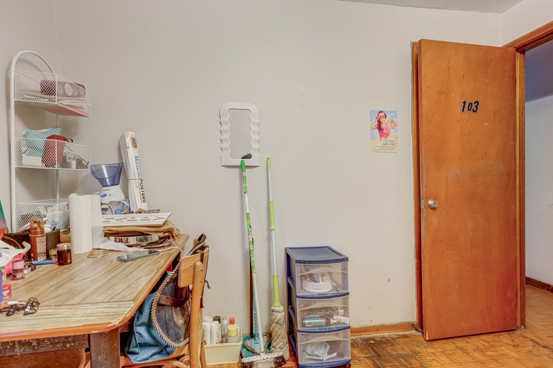 • Partially furnished room with desk and chair, ready for your bed.