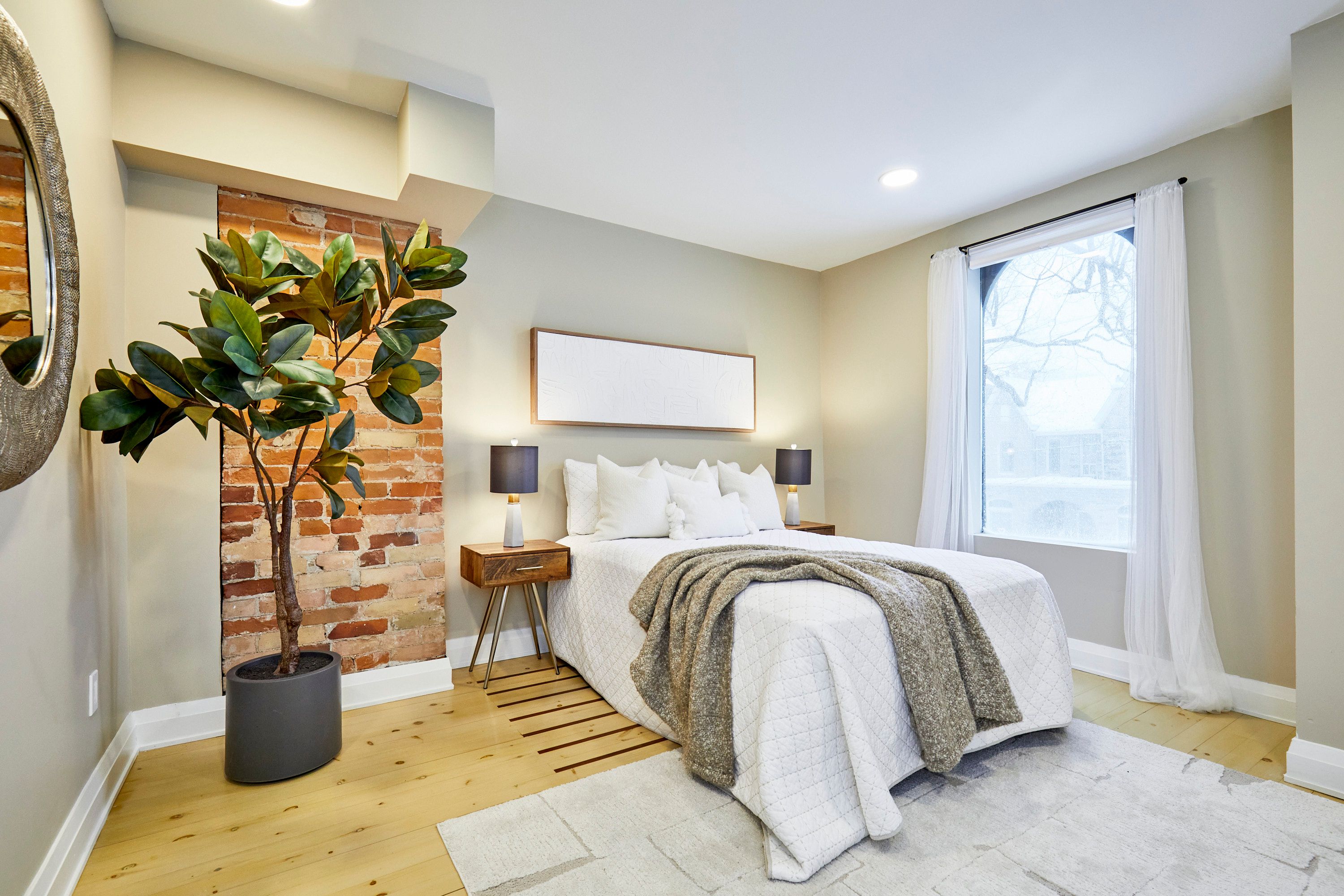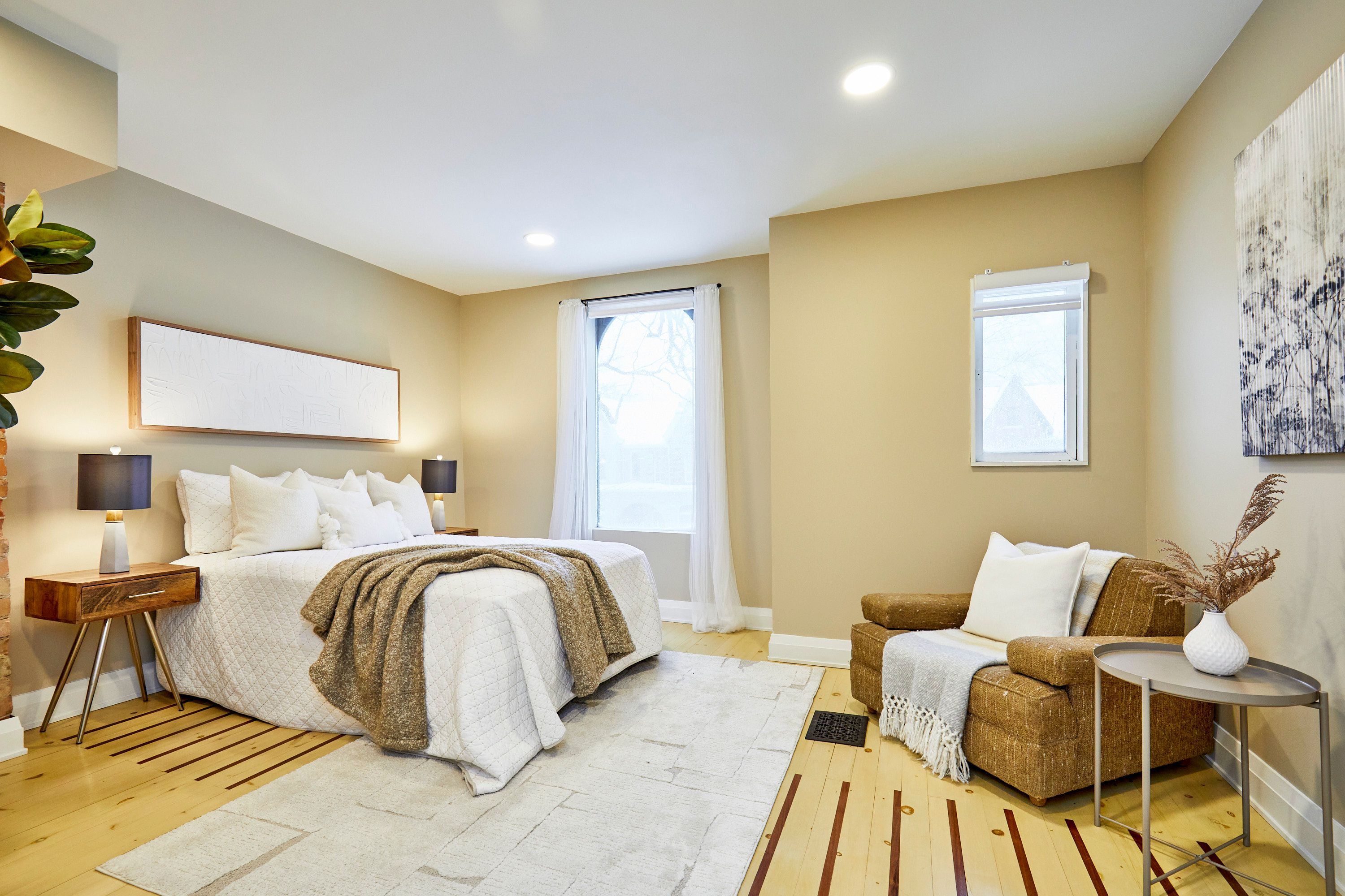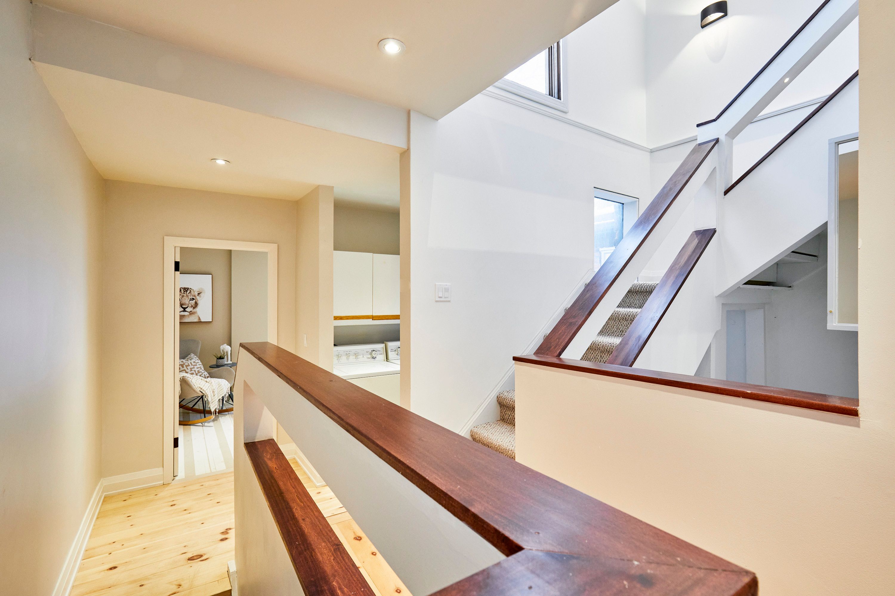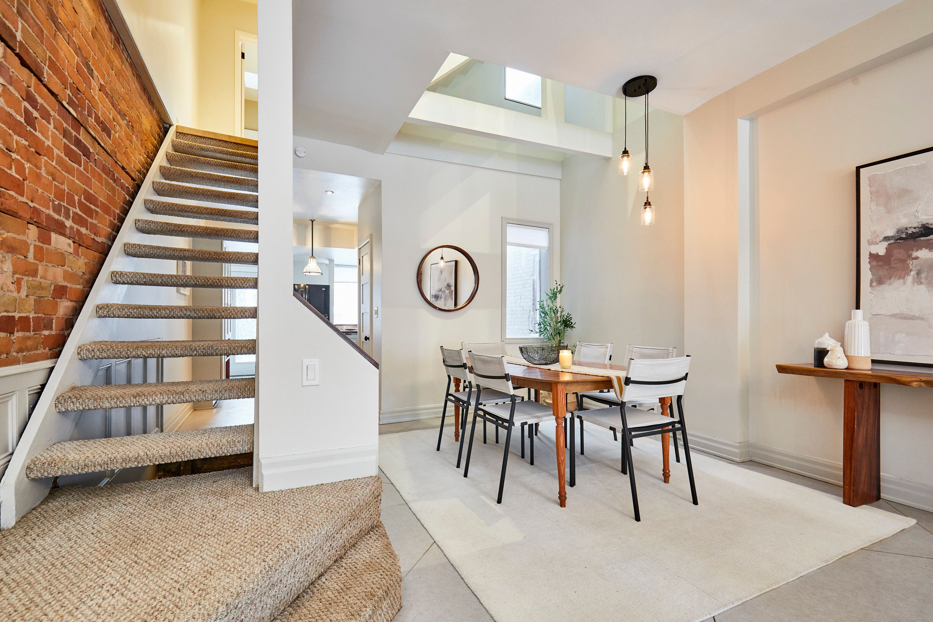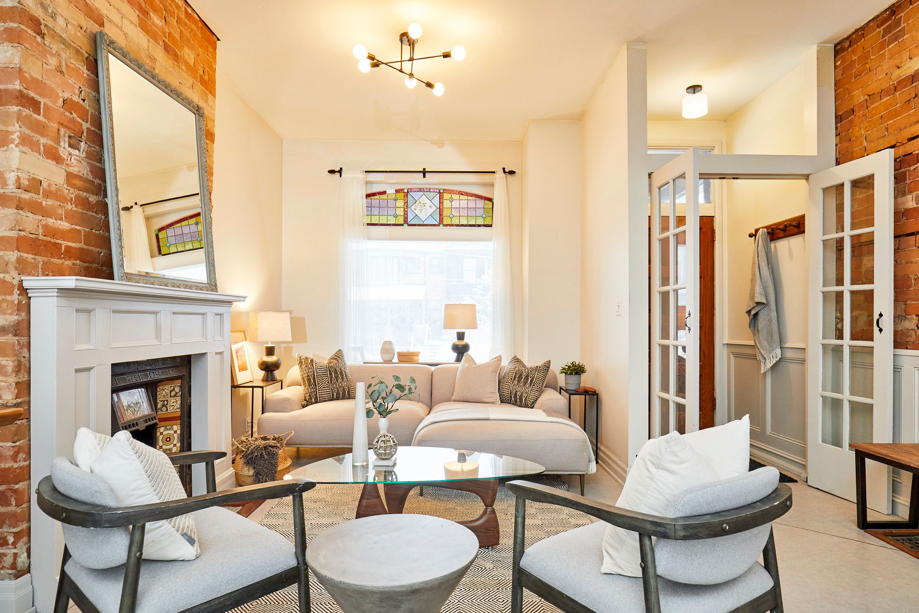 A leslieville gem! This charming red brick 3 storey is perfect for anyone seeking a home with vintage charm and architectural character, in one of toronto's most vibrant neighbourhoods. Spend your summers on the front porch, overlooking the yard and quiet street. Step inside the foyer that leads into an open concept living space with an airy, triple-height dining room spanning to the top floor, creating a stunning sense of volume and light. Beautifully complimented by a living room with exposed brick, stained glass, and anchored by a vintage fireplace. At the back of the home you will find a powder room and a modern kitchen with a walkout to deck and backyard, with a path to an oversized detached garage for parking off the lane. On the second floor, two well-appointed bedrooms with hardwood flooring, and convenient second-floor laundry. The skylit third floor hosts the primary bedroom suite with a 3-piece ensuite and walk out to a private rooftop deck. Step outside, and you're in the heart of one of toronto's most beloved neighbourhoods. Just down the street, pilot coffee roasters and a host of trendy eateries await, along with local breweries and live entertainment at venues like the toronto operetta theatre and the opera house. Nearby parks like jimmie simpson and greenwood park offer a slice of green for outdoor activities and the annual leslieville farmer's market. With easy access to public transit, downtown and the sandy shores of cherry beach are only a short commute away. Morse street junior public, queen alexandra, and riverdale ci school district. A must see with its unforgettable blend of charm and architectural drama!
