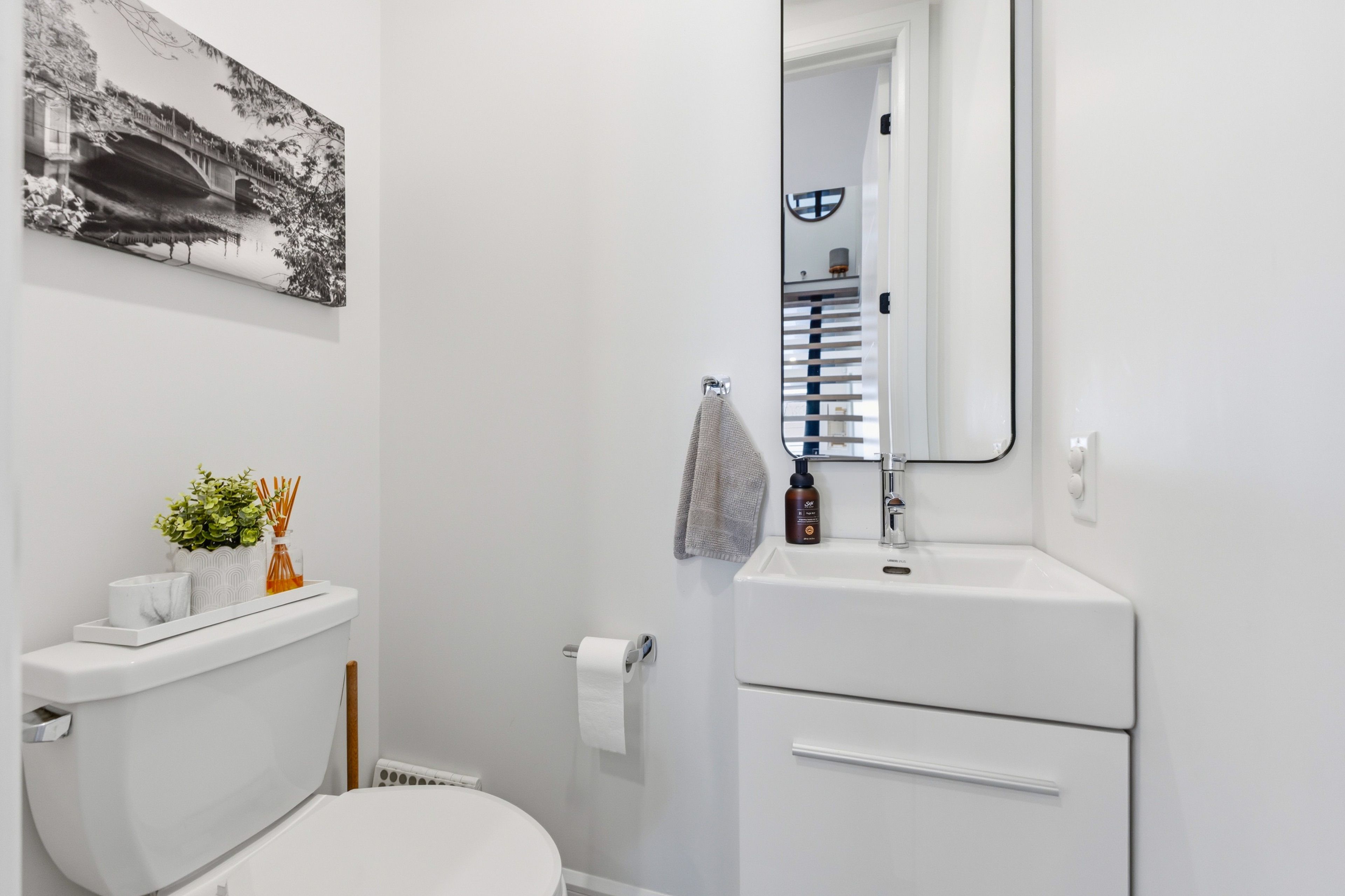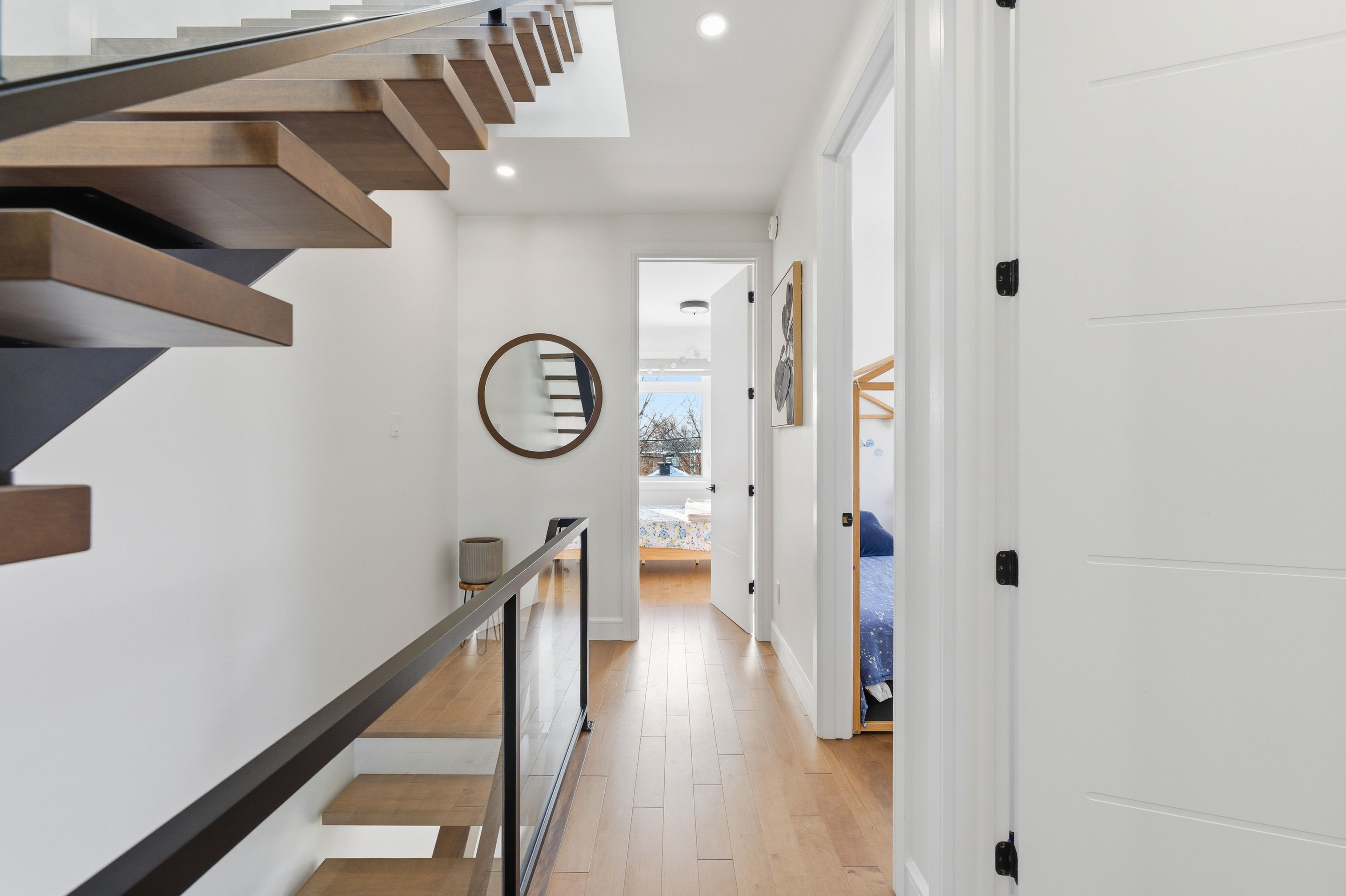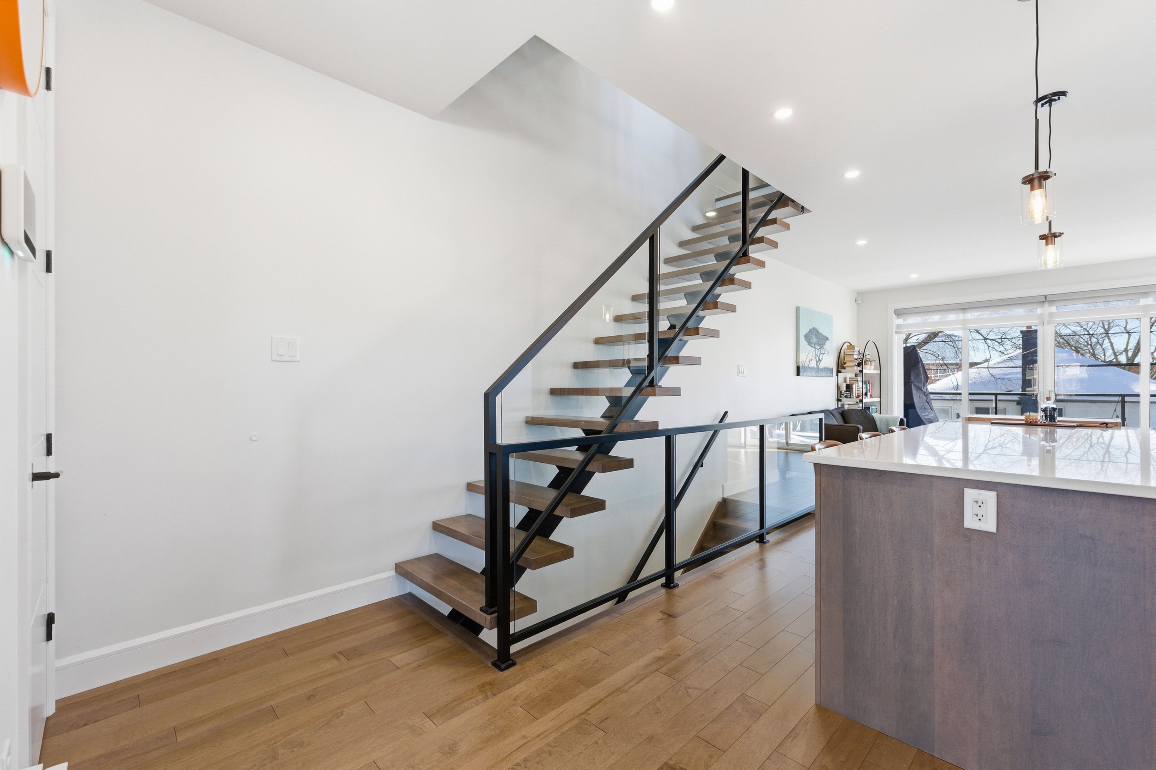 Designed for those who value space, comfort, and smart living, this stunning 4bd, 4bth semi-detached home, built in 2020, seamlessly blends contemporary design with elevated luxury. Thoughtfully crafted with architectural detail throughout, the home showcases 9-foot ceilings, hardwood floors, expansive windows w/ custom blinds, & a striking floating mono-stringer staircase with sleek metal and glass railings, flooding the space with natural light. The open-concept main living level is ideal for both entertaining and everyday living, featuring a bright dining area, a chef-inspired kitchen with custom cabinetry, quartz countertops, an oversized island, high-end stainless steel appliances, and a gas range. A generous family room, anchored by a gas fireplace, opens onto a composite deck, creating a seamless indoor-outdoor experience. The upper level hosts a luxurious primary suite complete with a walk-in closet and a spa-like ensuite featuring a double vanity and walk-in shower, along with two additional bright bedrooms, a stylish family bath, and a convenient laundry room. The ground/lower level offers exceptional versatility with above-grade access to a heated garage, heated lower floor , a bedroom, office/family room with heated floors, and a 3-piece bathroom-ideal for guests, or a potential in-law suite. This level also provides direct access to landscaped, fenced backyard. Completing the home is a rooftop composite deck with sweeping city views, adding a rare layer of luxury. Ideally located just moments from downtown ottawa, gatineau, the rideau river, and beechwood avenue allowing accessibility to metro, cafes, public library, top french school and activities within 5-10 mins walking. This residence delivers refined urban living without compromise.