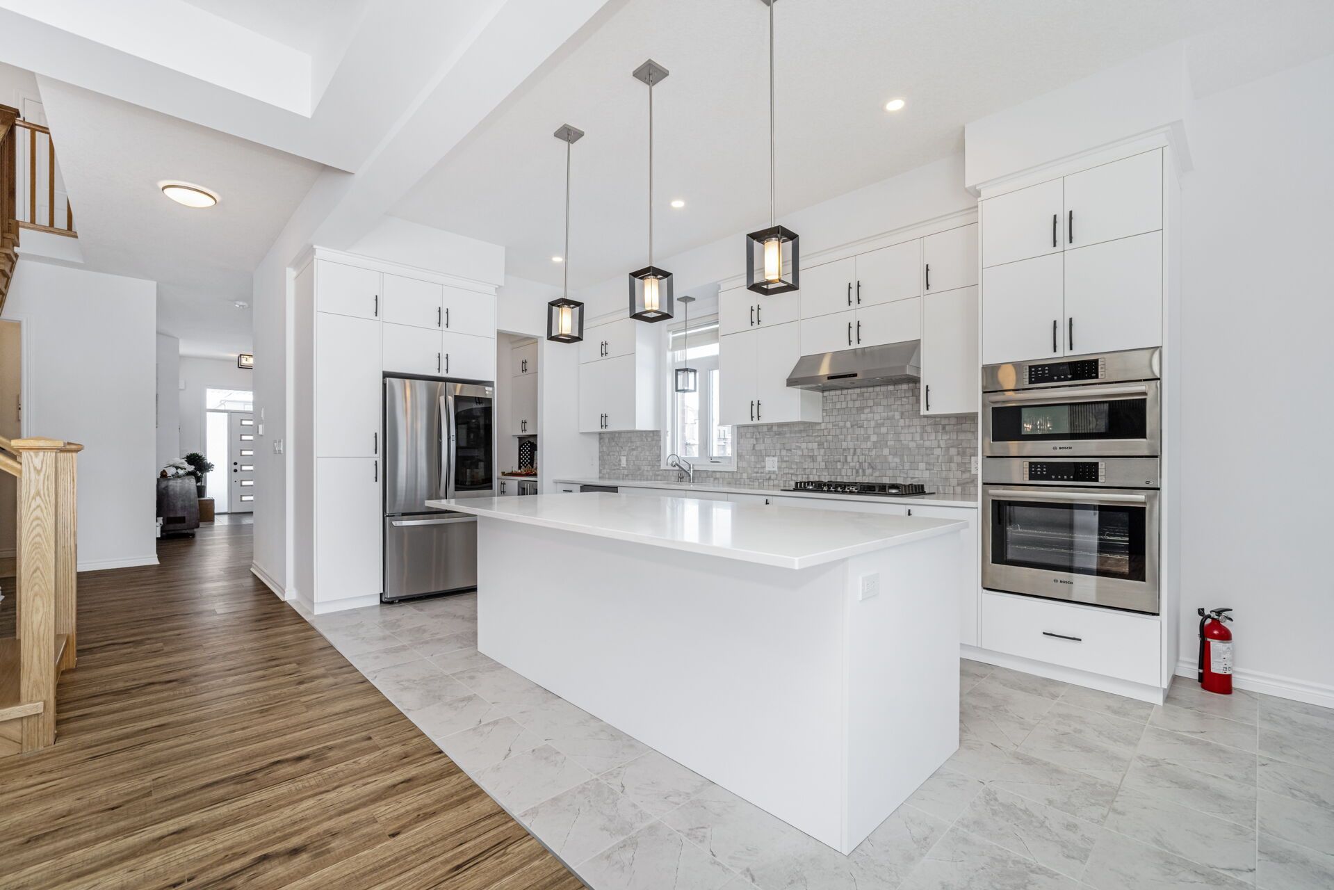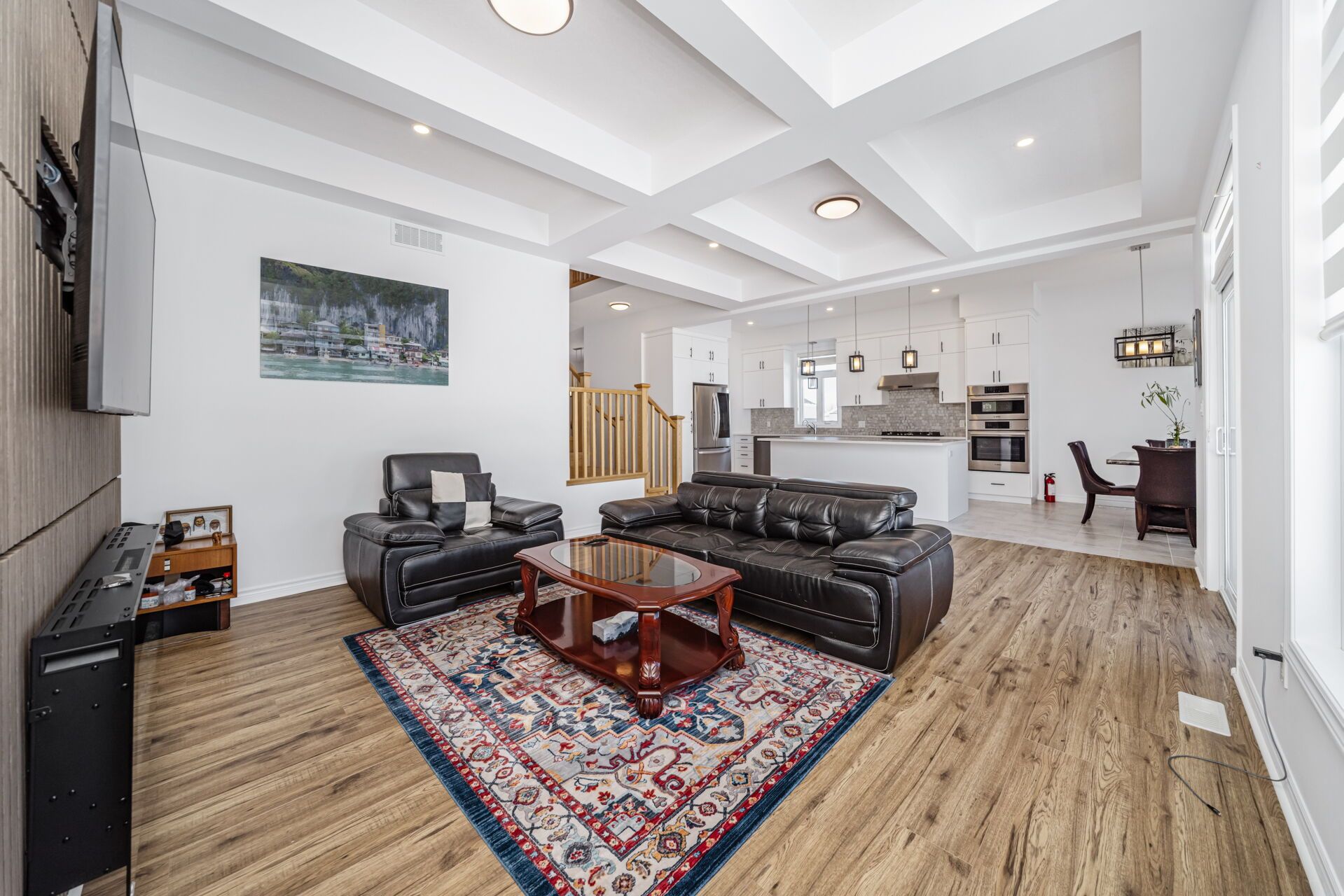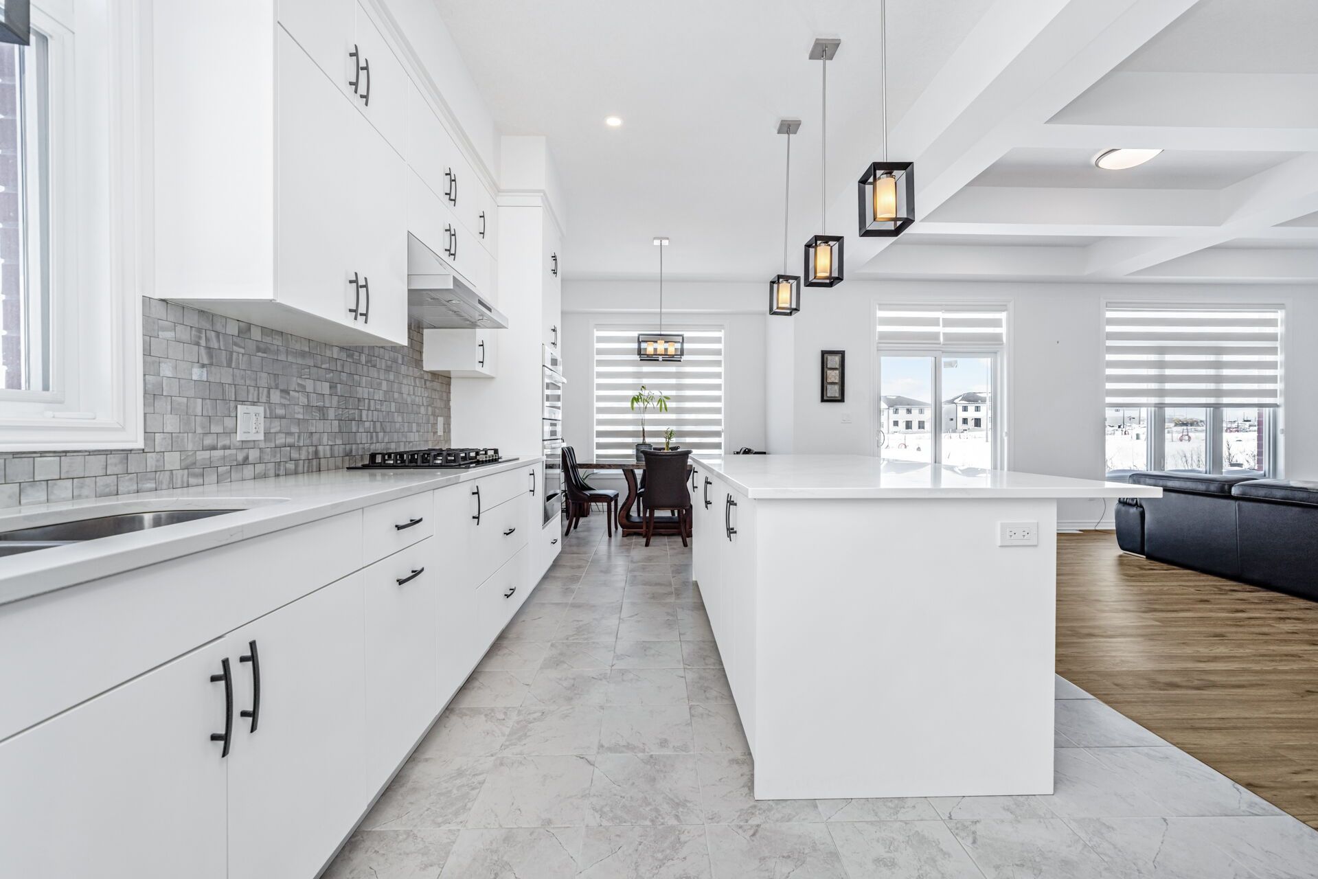 An extraordinary expression of modern luxury set on a premium, sun-drenched corner lot in one of paris' most prestigious communities. With 40 ft frontage and upgraded brick exterior, this 2-year-new architectural masterpiece offers enhanced privacy, exceptional curb appeal, and natural light from every direction. Boasting approx. 3,400 sq ft finished above grade, this residence is designed for elevated living. Soaring 10-ft ceilings on the main level create an impressive sense of scale, complemented by expansive principal rooms, upgraded laminate flooring, pot lights, elegant california-style window coverings, and a refined designer lighting package throughout. The chef's kitchen is a true centerpiece - featuring extended premium cabinetry, quartz countertops, a striking designer backsplash, oversized island, walk-in pantry, bar fridge, and a full suite of high-end built-in stainless steel appliances including gas cooktop, built-in oven, microwave, hood range, and double-door refrigerator. Designed to impress and built for entertaining, it flows seamlessly into the sophisticated living and family spaces. A private main floor office adds executive-level functionality. An upgraded hardwood oak staircase leads to the second level with 9-ft ceilings, offering 5 generously sized bedrooms and 4 full bathrooms - a rare and highly desirable layout. The primary suite serves as a private sanctuary with a spacious walk-in closet and spa-inspired ensuite featuring natural stone countertops and a deep soaker tub with elegant tile surround. Premium features include 200-amp electrical service, ev charger rough-in, decora switches, 8-ft garage door, gas line to cooktop, builder-finished side entrance, oversized basement windows, and 3-piece bath rough-in - offering incredible future potential. Situated in one of paris' most desirable communities, just minutes from charming downtown shops, scenic trails, plaza and schools.