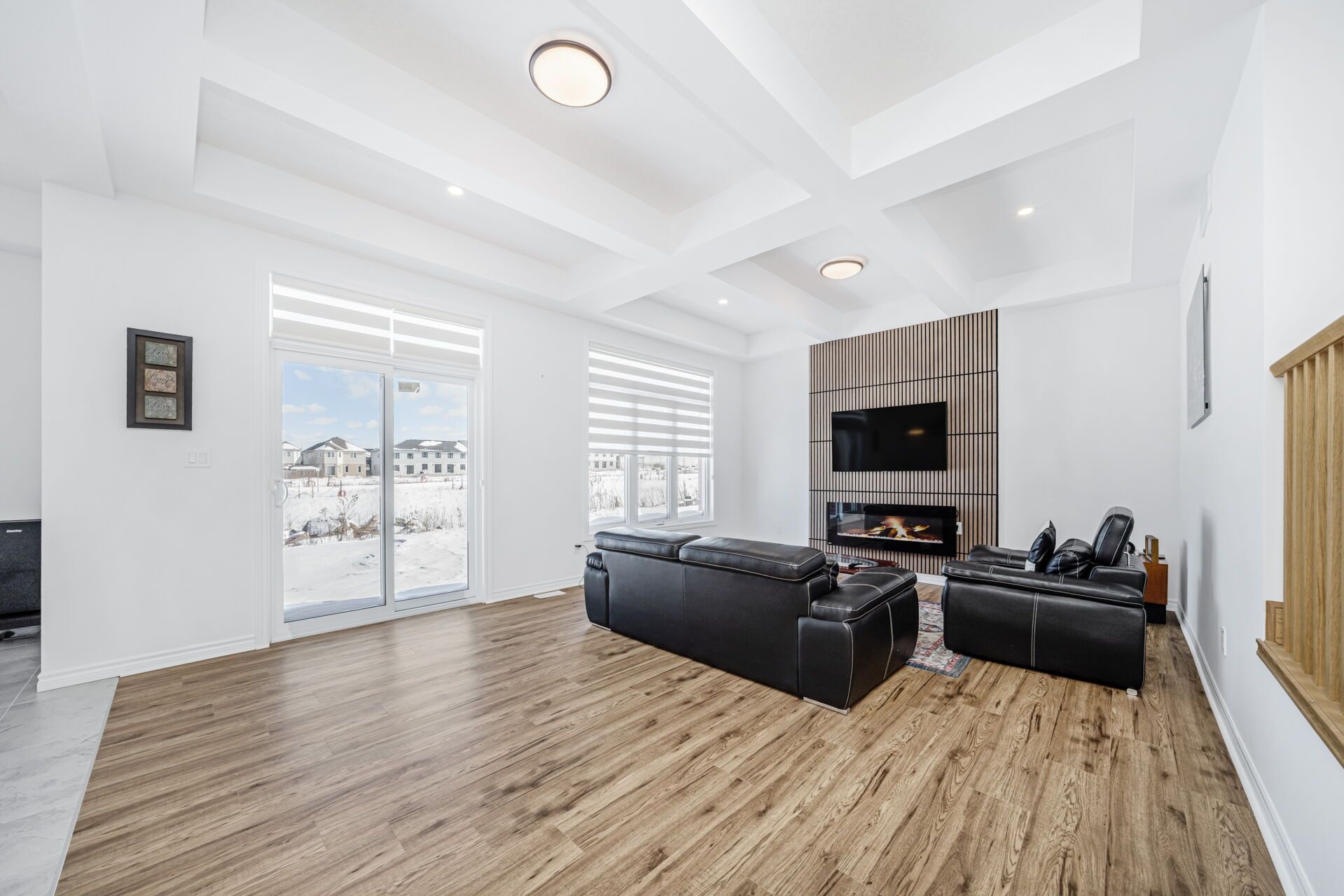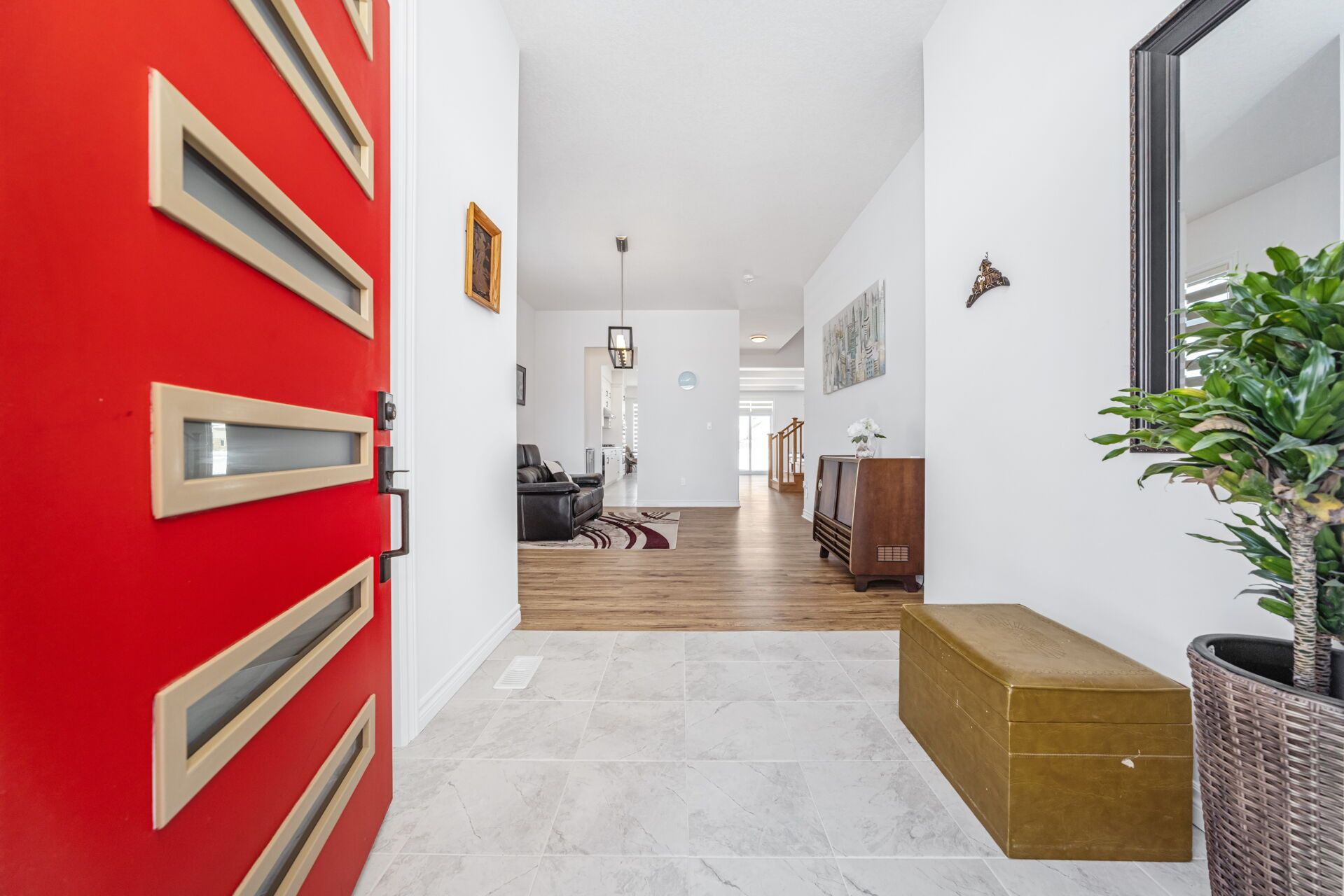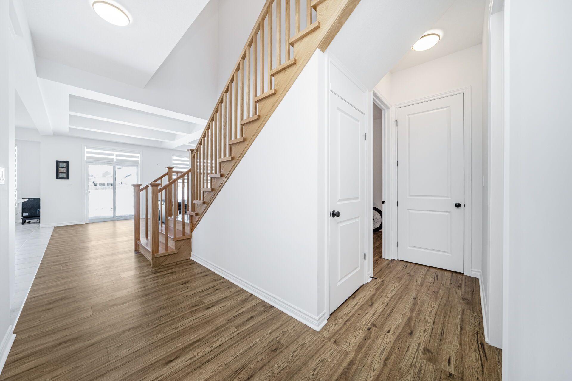 An extraordinary expression of modern luxury set on a premium, sun-drenched corner lot in one of paris' most prestigious communities. With 40 ft frontage and upgraded brick exterior, this 2-year-new architectural masterpiece offers enhanced privacy, exceptional curb appeal, and natural light from every direction. Boasting approx. 3,400 sq ft finished above grade, this residence is designed for elevated living. Soaring 10-ft ceilings on the main level create an impressive sense of scale, complemented by expansive principal rooms, upgraded laminate flooring, pot lights, elegant california-style window coverings, and a refined designer lighting package throughout. The chef's kitchen is a true centerpiece - featuring extended premium cabinetry, quartz countertops, a striking designer backsplash, oversized island, walk-in pantry, bar fridge, and a full suite of high-end built-in stainless steel appliances including gas cooktop, built-in oven, microwave, hood range, and double-door refrigerator. Designed to impress and built for entertaining, it flows seamlessly into the sophisticated living and family spaces. A private main floor office adds executive-level functionality. An upgraded hardwood oak staircase leads to the second level with 9-ft ceilings, offering 5 generously sized bedrooms and 4 full bathrooms - a rare and highly desirable layout. The primary suite serves as a private sanctuary with a spacious walk-in closet and spa-inspired ensuite featuring natural stone countertops and a deep soaker tub with elegant tile surround. Premium features include 200-amp electrical service, ev charger rough-in, decora switches, 8-ft garage door, gas line to cooktop, builder-finished side entrance, oversized basement windows, and 3-piece bath rough-in - offering incredible future potential. Situated in one of paris' most desirable communities, just minutes from charming downtown shops, scenic trails, plaza and schools.