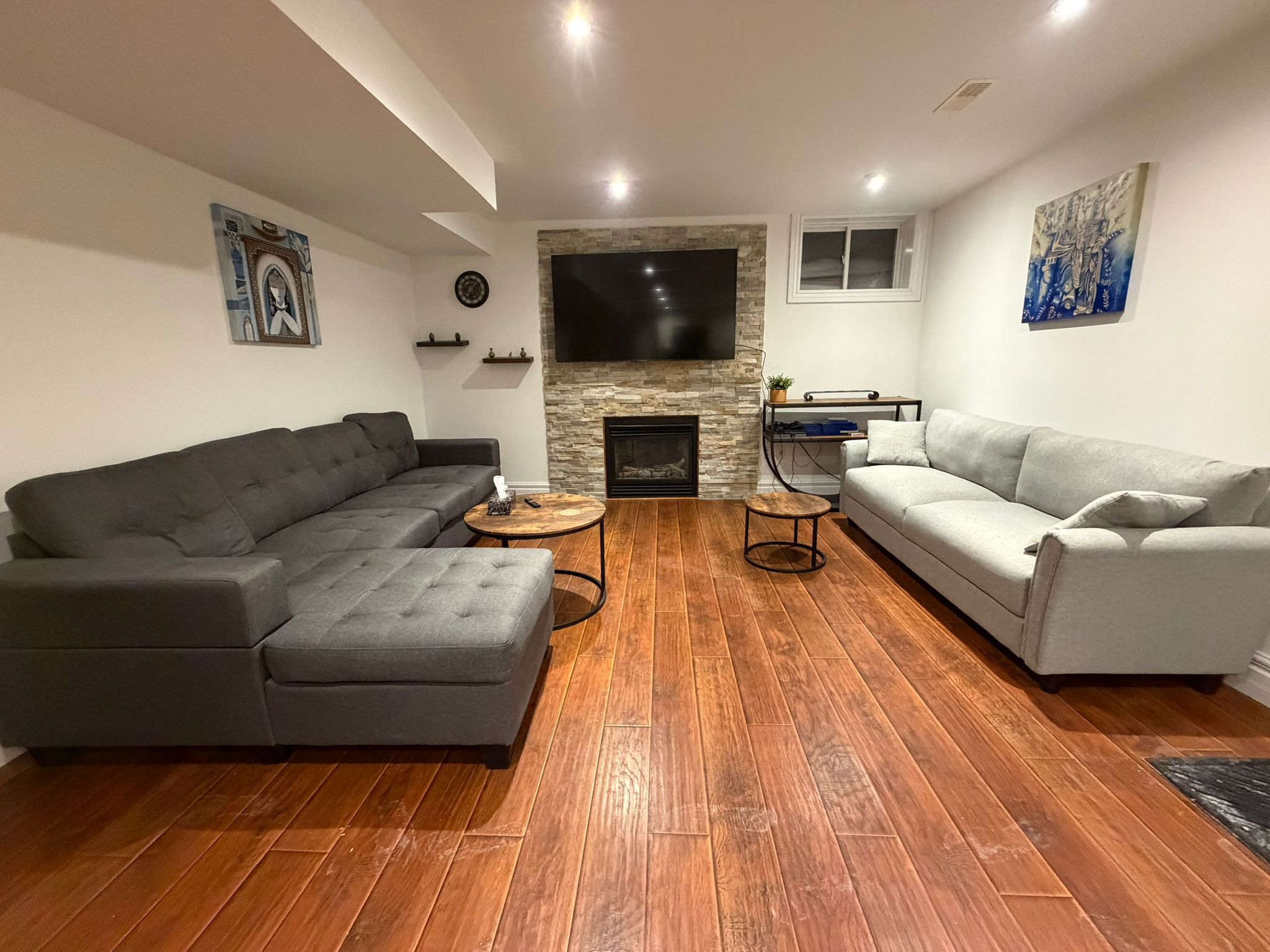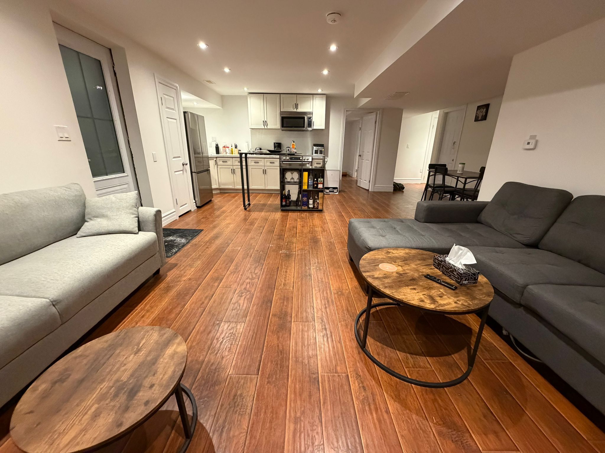 One-year-old, beautiful and spacious legal 2-bedroom apartment located in the quiet and desirable ardagh community, 1 garage and 1 parking space in driveway. Close to high rated schools. Conveniently close to all amenities and highway 400. This bright suite features a private separate entrance, separate laundry, gas fireplace, walk-in closet, brand-new kitchen, water softener. Can be rented with 1 garage plus 1 parking space in driveway for $2100/month.