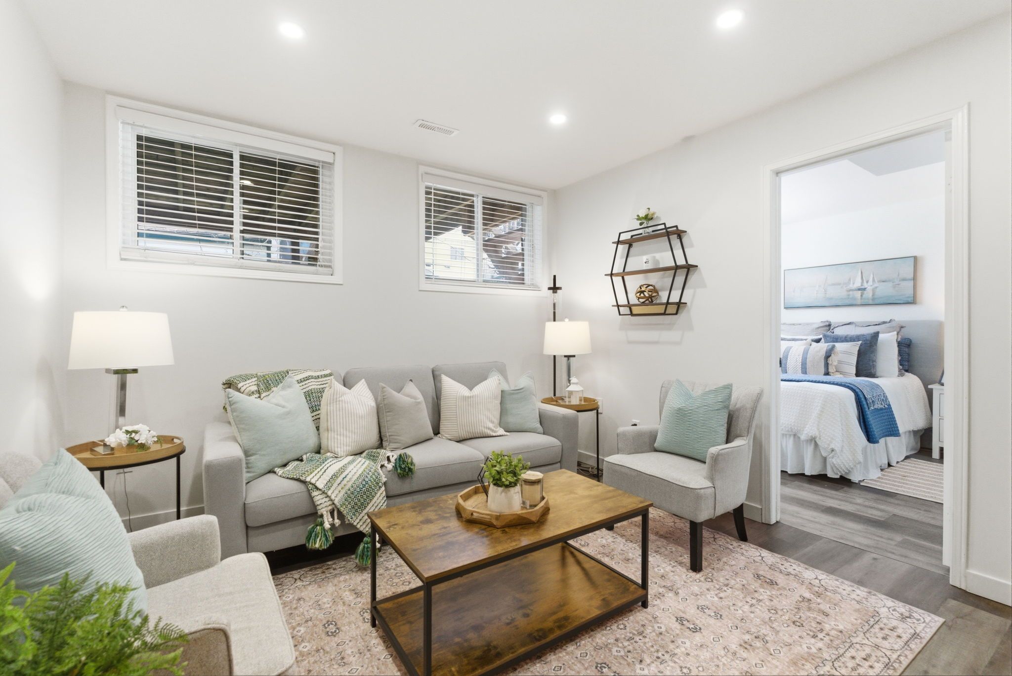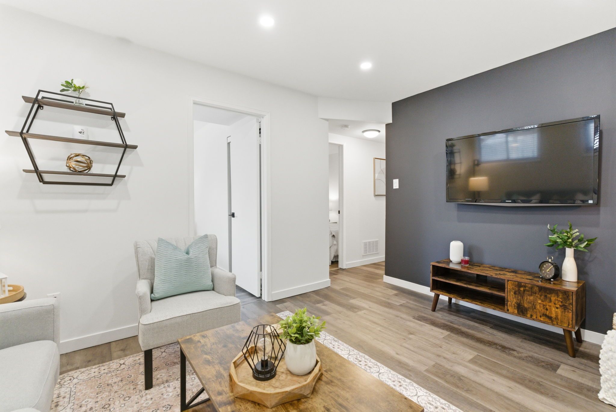 • Spacious living room with walkout to a large deck and fenced backyard.